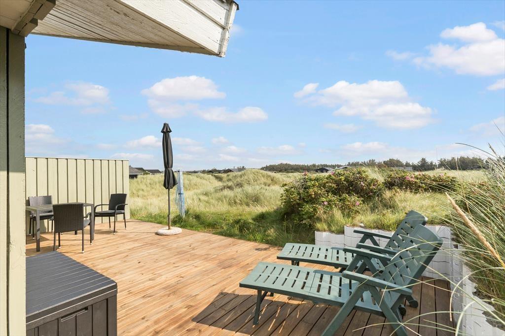 Sommerhuset ligger på en dejlig, ugeneret grund, hvor du kan nyde privatlivet og den smukke natur. Her vågner du op til lærkesang, hybenduft og lyden af vind i marehalmen. Du har flere skønne kroge udenfor, hvor du kan slå dig ned med morgenkaffen, en bog eller bare en god portion stilhed. De solrige terrasser indbyder til afslapning hele dagen og aftenen med. Den store naturgrund med langt til naboerne giver en særlig oplevelse, og børnene har rig mulighed for at lege og udforske omgivelserne. I baggrunden høres kun naturens egne lyde – ingen trafik, ingen forstyrrelser, kun feriestemning i sin reneste form. Her kan I nyde lange aftener med grill, solnedgange over klitterne og en gåtur på stranden ganske tæt på.