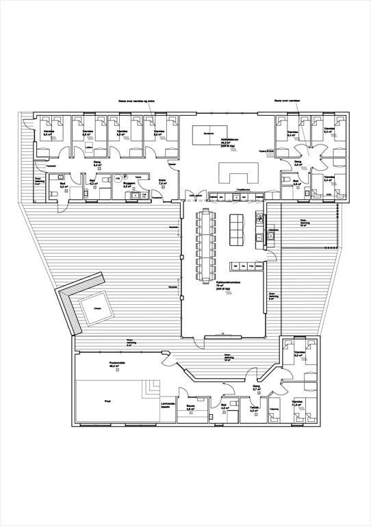 Når du træder indenfor i det moderne og rummelige sommerhus, bliver du mødt af et fantastisk lysindfald og en indretning, der oser af kvalitet og komfort. Her er alt gennemtænkt – fra det store opholdsrum, hvor køkkenet er i åben forbindelse med stuen, til den lækre materialevalg, som skaber en varm og imødekommende stemning. Opholdsrummet samler jer om madlavning, måltider og afslapning, mens solen strømmer ind ad de store vinduespartier og forbinder jer med naturen udenfor. I selve hovedhuset er der hele syv soveværelser og tre badeværelser, samt 2 hemse, hvilket gør det oplagt til flere familier eller en stor vennegruppe, der ønsker at holde ferie sammen uden at gå på kompromis med komfort og privatliv. Dertil kommer et aktivitetsrum, som vil være samlingspunkt for både store og små, når konkurrencerne i bordfodbold eller brætspil går i gang.