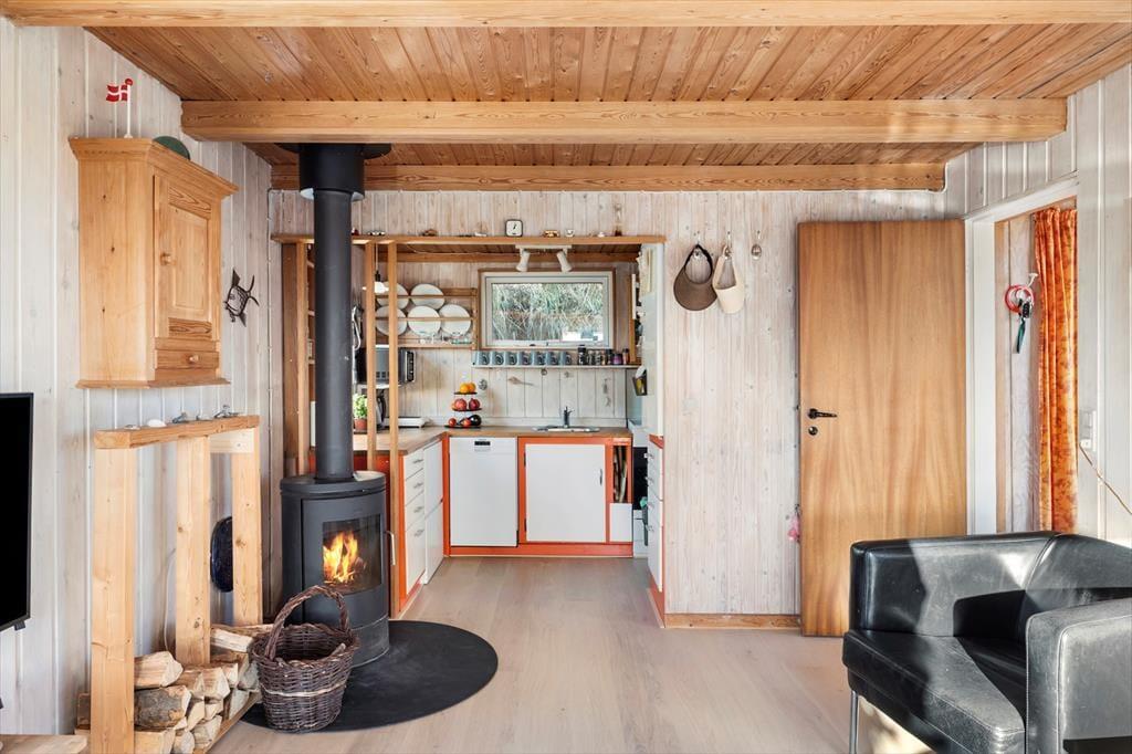 Sommerhuset byder på en varm og indbydende atmosfære, hvor du straks føler dig hjemme. Det åbne opholdsrum binder stue og køkken sammen, så du kan lave mad, mens familien spiller kort eller hygger sig i sofaen. I stuen og køkkenet bliver der lagt nye gulve som giver et moderne udtryk, og den knitrende brændeovn sætter stemningen på kølige aftener, når vinden rusker udenfor. Badeværelset er renoveret i 2025 og fremstår indbydende, mens to gode soveværelser giver plads til afslappende nætter efter en dag fyldt med oplevelser. Alt i alt et sommerhus, hvor komfort og hygge går hånd i hånd.