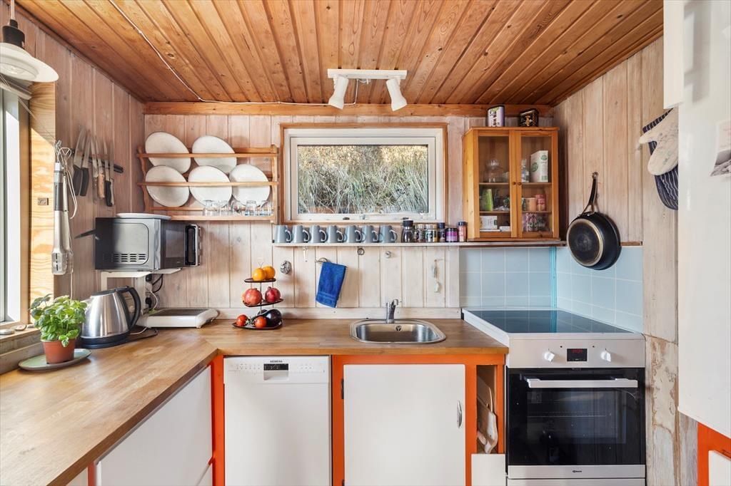 Udendørs indbyder sommerhuset til ægte ferieliv. Den dejlige naturgrund omkranser huset og skaber en fredelig ramme, hvor du kan høre fuglene kvidre og nyde roen. Her er hele to terrasser, så du altid kan finde en krog med sol eller læ – perfekt til morgenkaffen, en god bog eller grillmiddagen, når solen går ned bag klitterne. Den korte gåafstand til stranden gør det let at tage et spontant smut ned til Vesterhavet, hvor du kan mærke sandet mellem tæerne og bade i de friske bølger. Det er sommerhusliv, når det er bedst – ubesværet og tæt på naturens små glæder.