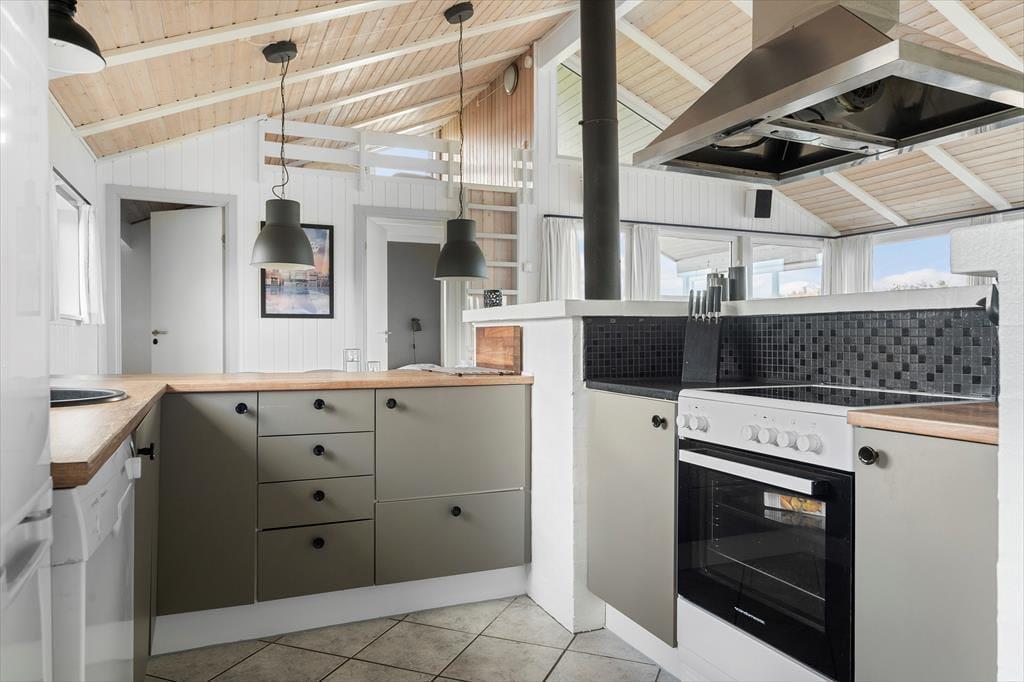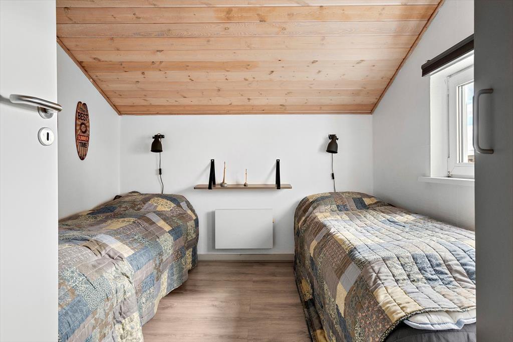 Indenfor mødes du af et yderst velholdt sommerhus med en gennemtænkt indretning, hvor loft til kip og store vinduespartier skaber en skøn atmosfære og et fantastisk lysindfald. Husets hjerte er opholdsrummet, hvor køkkenet ligger i åben forbindelse med stuen, så du kan kokkerere, mens samtalen går livligt ved spisebordet eller foran den knitrende brændeovn. Fra stuen er der kig til den indbydende poolafdeling, hvor spa og sauna giver ekstra luksus og afslapning til ferien. Her kan du tage en dukkert, få varmen i saunaen eller slappe af i boblerne, når dagen går på hæld. Sommerhuset byder desuden på tre gode værelser, to badeværelser samt en hyggelig hems med ekstra plads til afslapning eller leg.