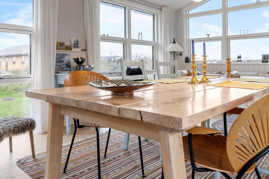 Når du træder ind i sommerhuset på Ane Mariesvej 20, mærker du straks den afslappede atmosfære. Husets hjerte er det rummelige køkken, hvor der er god plads til at tilberede måltider sammen. Her kan du tilberede morgenmaden, mens duften af frisk kaffe breder sig, og snakken går hen over køkkenbordet. Den hyggelige tv-stue med gaspejs indbyder til afslappede aftener, hvor du kan synke ned i sofaen og nyde flammernes bløde skær. Udestuen med brændeovn er et helt særligt samlingspunkt – her kan du sidde året rundt og mærke varmen brede sig, mens du kigger ud på haven. Huset rummer desuden gode soveværelser, hvor du finder elevationssenge i to af dem – perfekt til en rolig nattesøvn efter en lang dag ved havet.