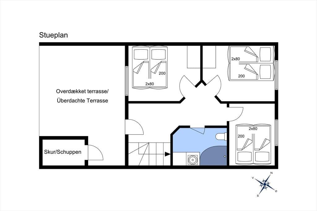 Feriehuset byder dig velkommen med et dejligt, åbent opholdsmiljø, hvor køkken og stue er samlet i ét. Her kan du mærke roen sænke sig, så snart du træder indenfor. Det flotte lysindfald fra de store vinduespartier giver rummet en lethed, og du kan hurtigt forestille dig, hvordan morgensolen rammer spisebordet, mens kaffen damper i koppen. Det åbne køkken gør det nemt at være fælles om madlavningen, uanset om der skal kokkereres en enkel frokost eller en hyggelig middag efter en dag ved havet. De tre soveværelser ligger praktisk placeret i huset, og dertil kommer en stor hems, hvor du kan mærke sommerhusstemningen i fuldt flor. Heroppe kan børnene lave deres helt eget frirum – eller de voksne kan trække sig tilbage til en stille stund. Badeværelset er rummeligt og velholdt, og alt i alt får du en indretning, der inviterer til afslapning og nærvær.