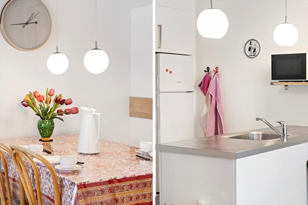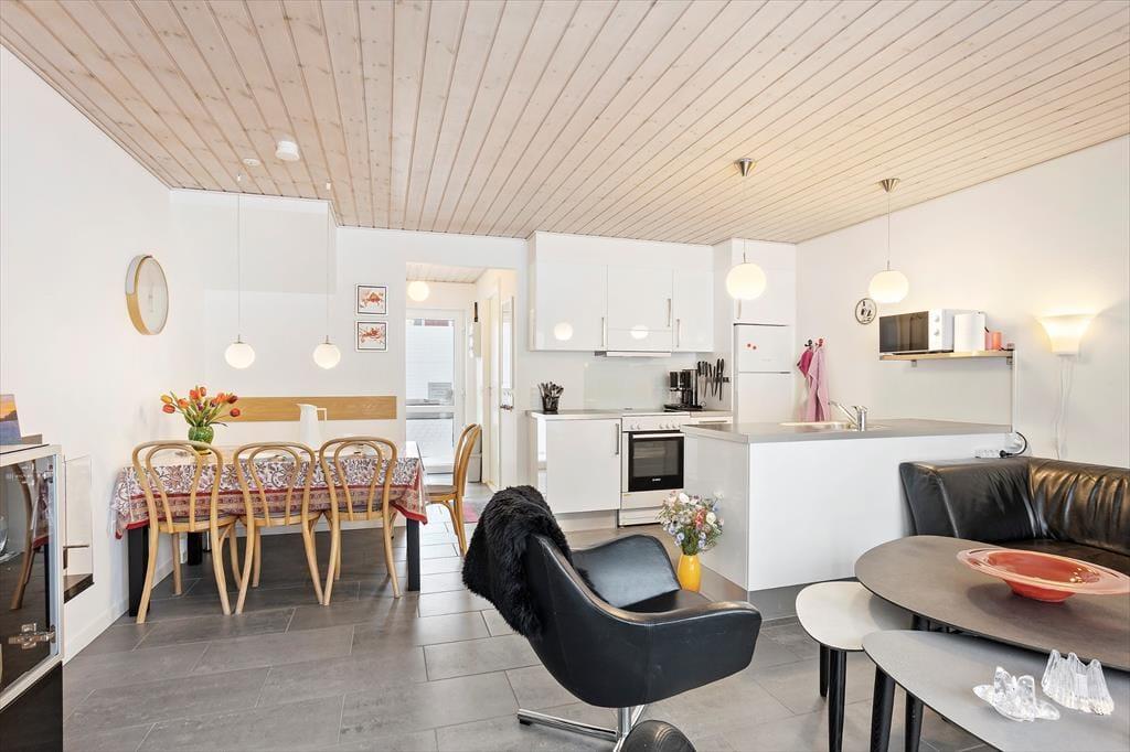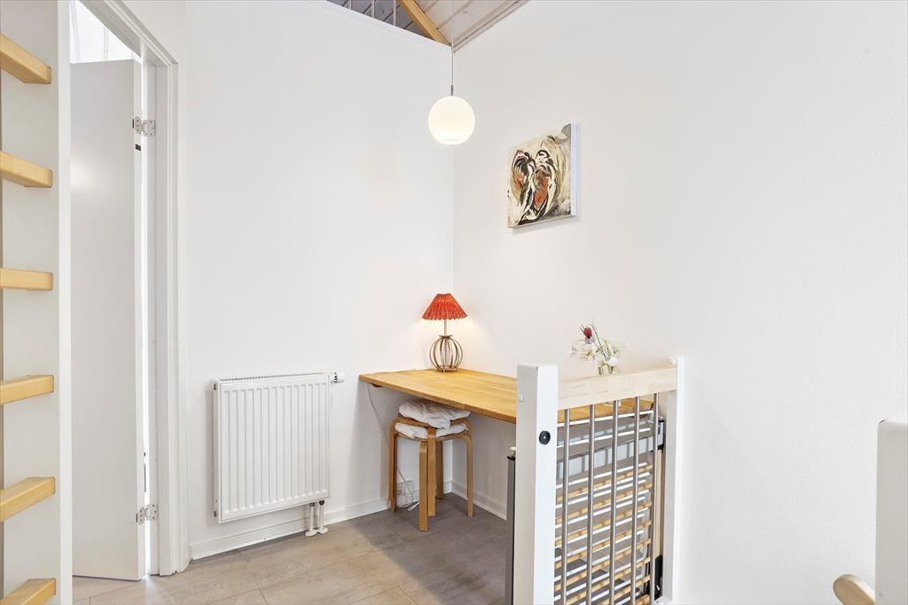 Indenfor bydes du velkommen af en indbydende atmosfære, og gulvvarmen i hele stueetagen skaber komfort – også på de køligere dage. Opholdsrummet er lyst og åbent, og her smelter køkken og stue naturligt sammen, så samværet er i centrum. Det veludstyrede køkken gør det nemt at tilberede lækre feriemåltider, hvad enten menuen står på friskfanget fisk eller hurtige favoritter til hele familien. I stuen kan du læne dig tilbage i sofaen og nyde biopejsen, mens flammernes rolige spil skaber ekstra feriestemning. Fra 1. salen er der adgang til en hems, som fungerer som et hyggeligt ekstra opholdssted – perfekt til børn, der vil lege, eller til en stille stund med en bog. Praktiske detaljer som vaskemaskine og tørretumbler gør det nemt at pakke let og føle sig hjemme under hele opholdet.