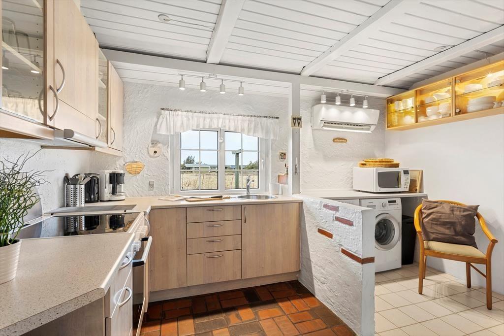 Sommerhus i Løkken Strand og By, Nordjylland, med plads til 5 voksne. Der er en hyggelig indretning med bl.a. brændeovn, og du finder desuden vaskemaskine og opvaskemaskine i boligen.