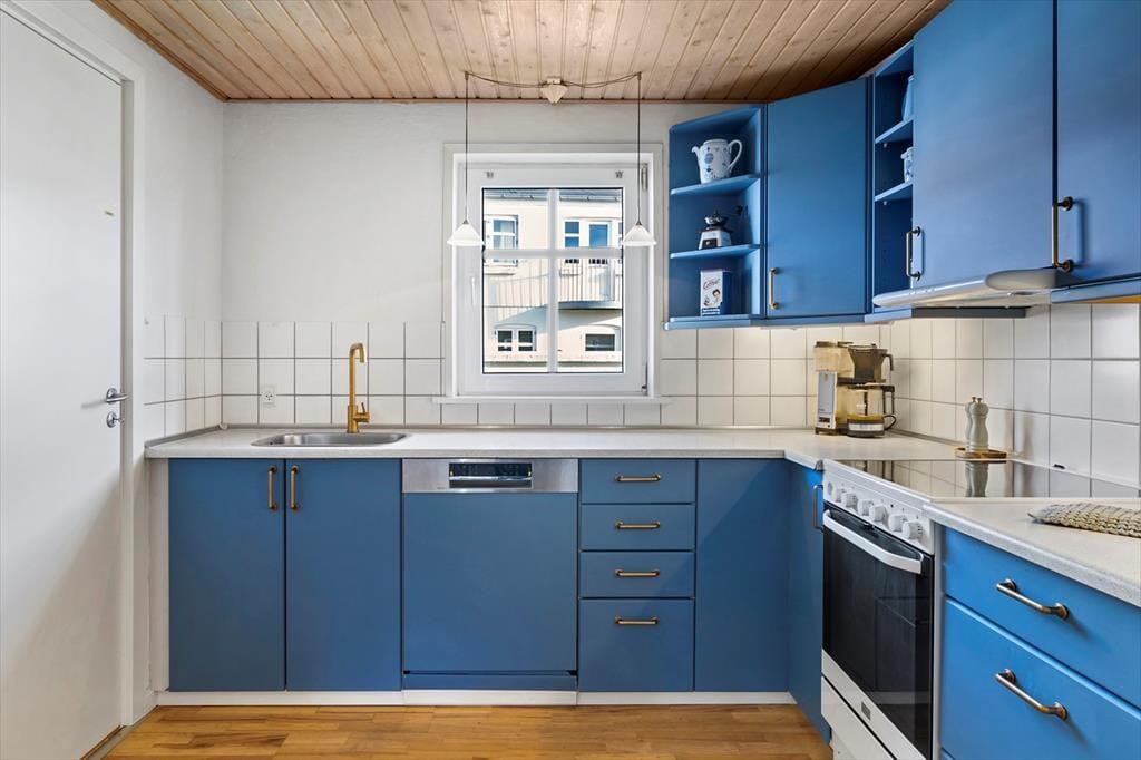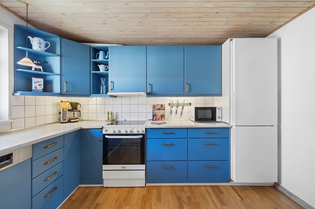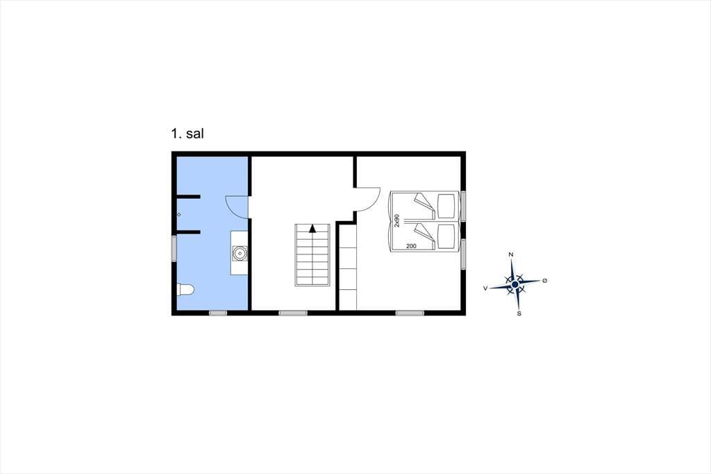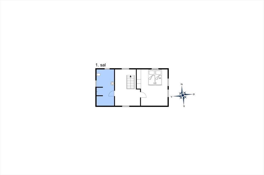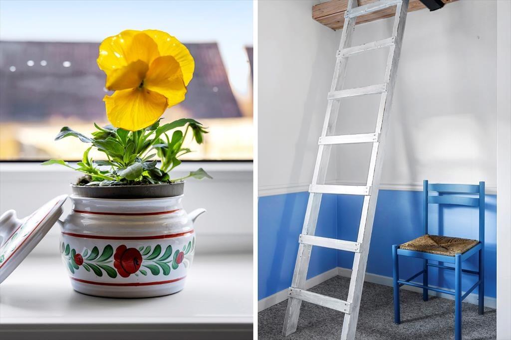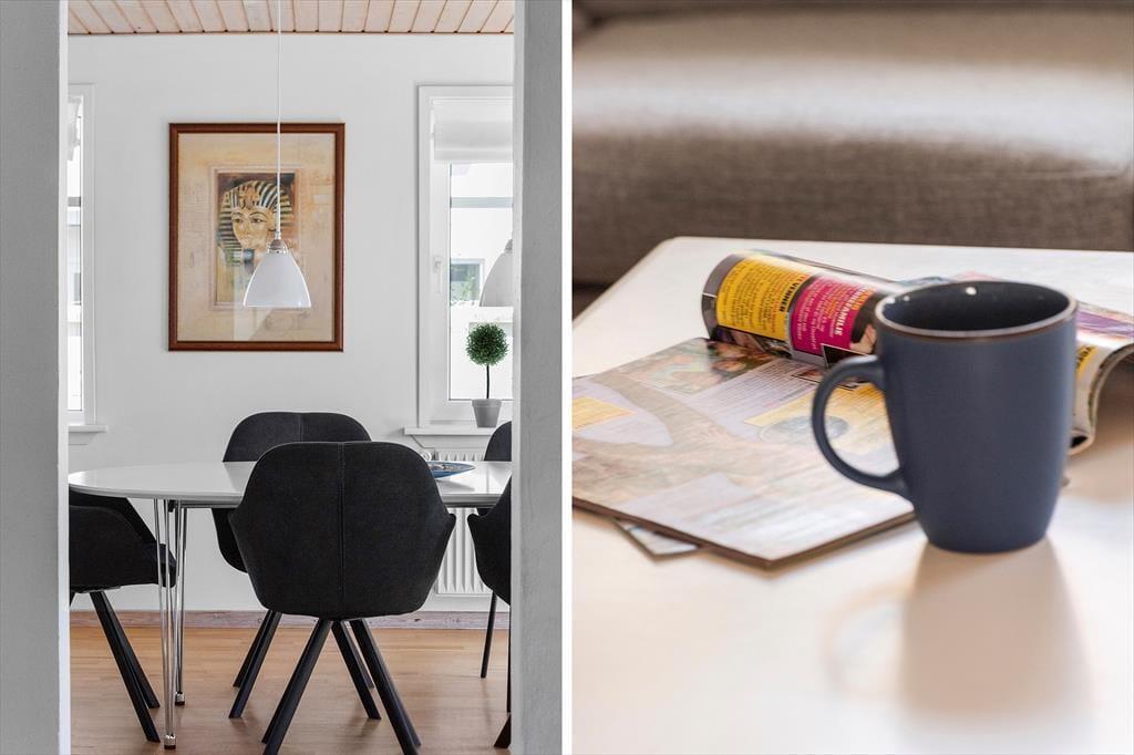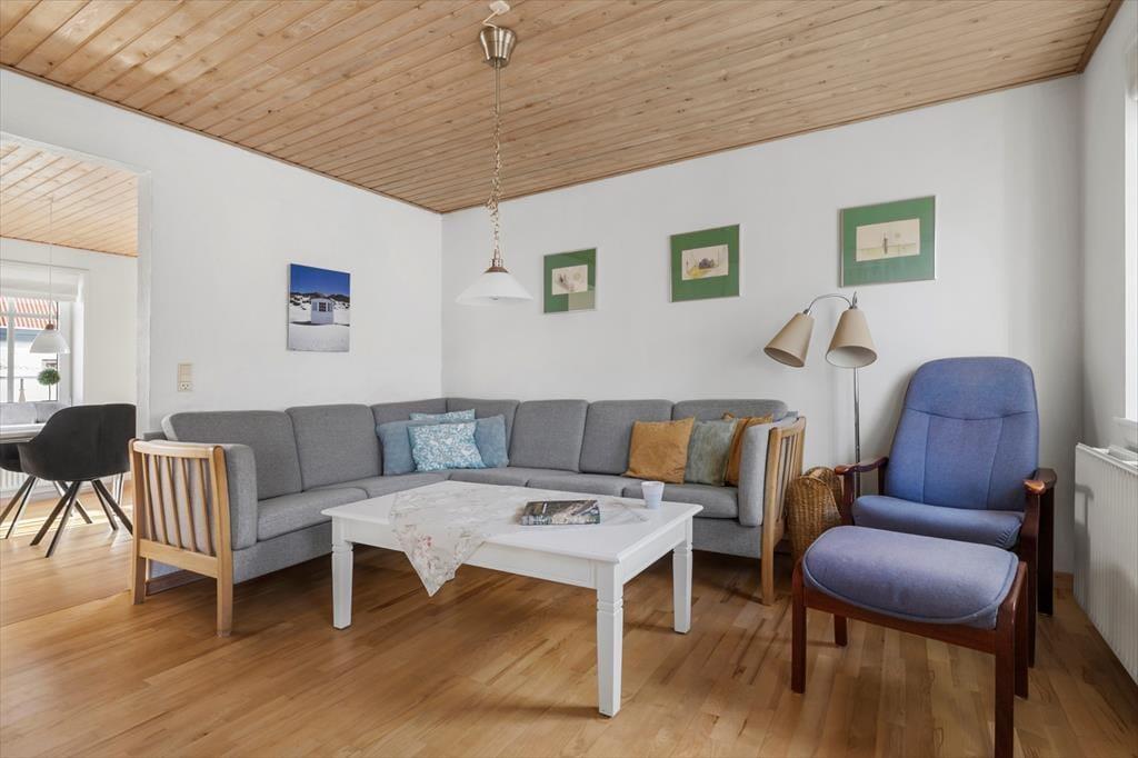 Byhuset fremstår utroligt pænt og velholdt. Stuehuset er blevet integreret med et tidligere udhus, og ved den rummelige indgang finder man et bryggers, et badeværelse og to soveværelser. Begge værelser er indrettet med dobbeltseng, og fra hvert soveværelse er der adgang til en stige, som fører op til en hems med yderligere sovepladser. Denne indretning gør huset særdeles velegnet til to familier eller børnefamilier. Til højre for indgangen ligger en gang med adgang til et gæstetoilet, og herfra går man videre ind i det rummelige og lyse køkken. Fra køkkenet er der adgang til en spiseafdeling, hvor en bred trappe fører op til første sal. Her finder man et stort soveværelse med dobbeltseng samt et stort badeværelse.