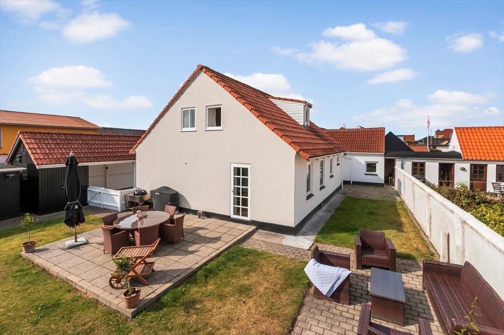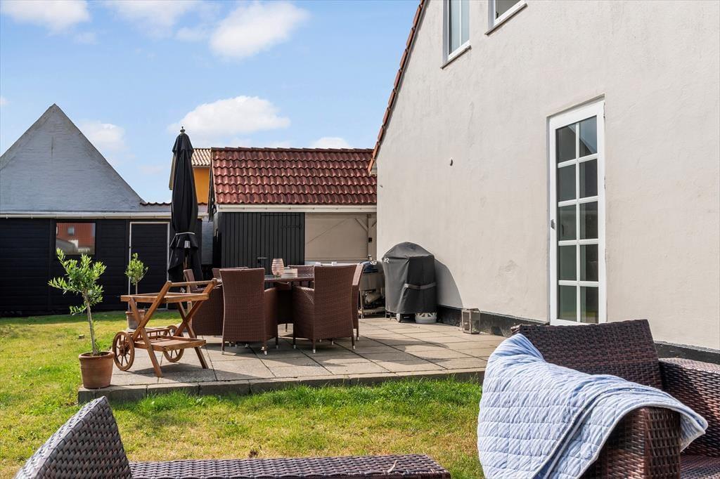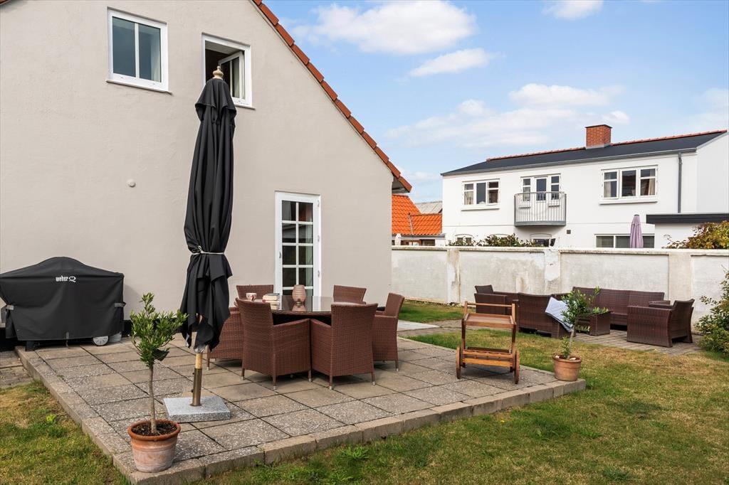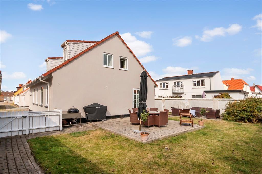 I den flotte og lukkede have på 467 m2 kan man nyde vestkystens sol i læ for vinden. Der er græsplæne og to flotte terrasser, hvor der altid er mulighed for at fange solen fra morgen til hen mod aften. Fra haven er der adgang til det 17 m2 store skur, og den store carport og indkørslen giver uden problemer plads til to biler.