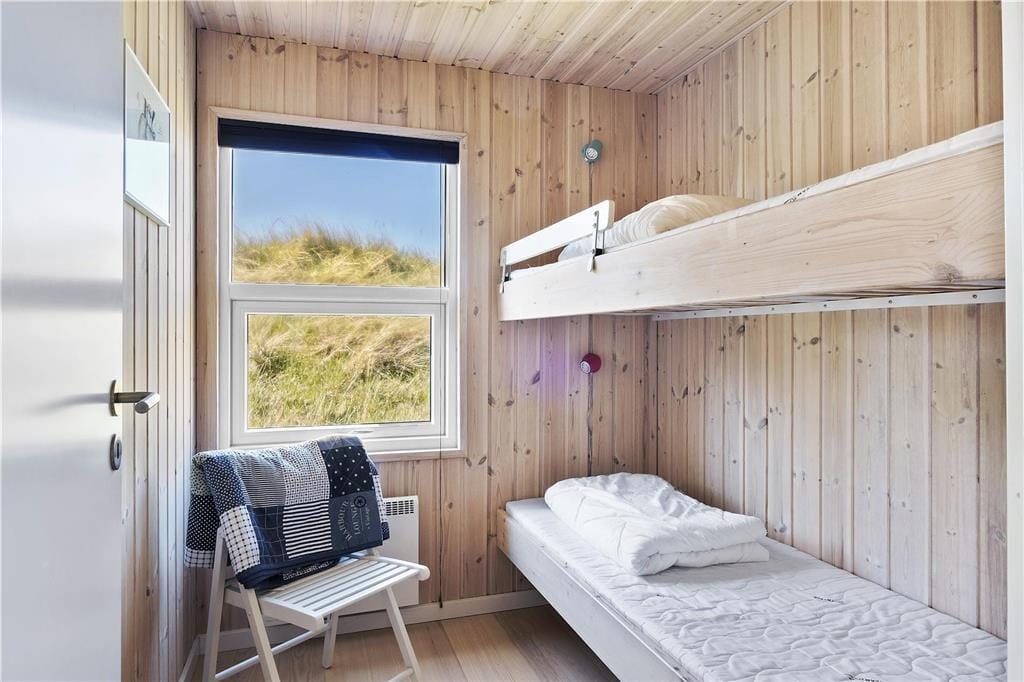 Sommerhuset er indrettet med gode kvalitetsmøbler og er velegnet til to personer eller til en lille familie. Køkkenet ligger i åben forbindelse til opholdsrummet, hvor de store vinduer sørger for et perfekt lysindfald. Det lille, men meget hyggelige og hjertevarme sommerhus byder også på et lille badeværelse og to soveværelser, ét med dobbeltseng og ét med køjeseng. Desuden gratis og trådløst internet, så man nemt kan søge information om egnens mange muligheder.