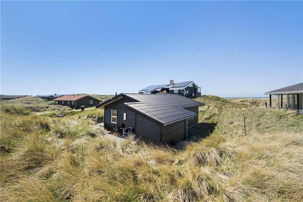 Fra opholdsrummet har man adgang til en ny og flot træterrasse mod syd. Sommerhuset ligger på en klitgrund med Vesterhavet kun få meter væk. Fra terrassen kan man høre bølgernes brusen, mens man sidder i fuldkommen læ. Det er ikke muligt at parkere bilen lige ved huset, men på vendepladsen lige foran.
