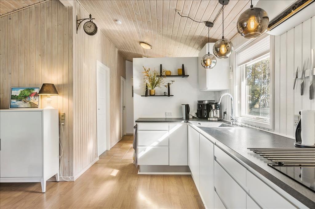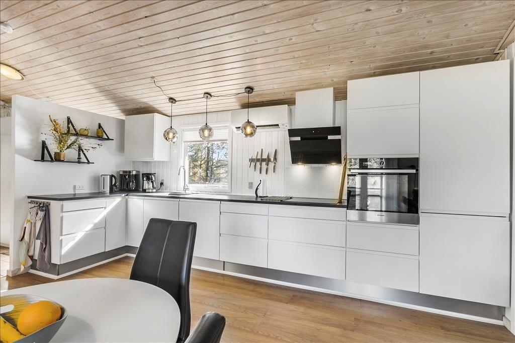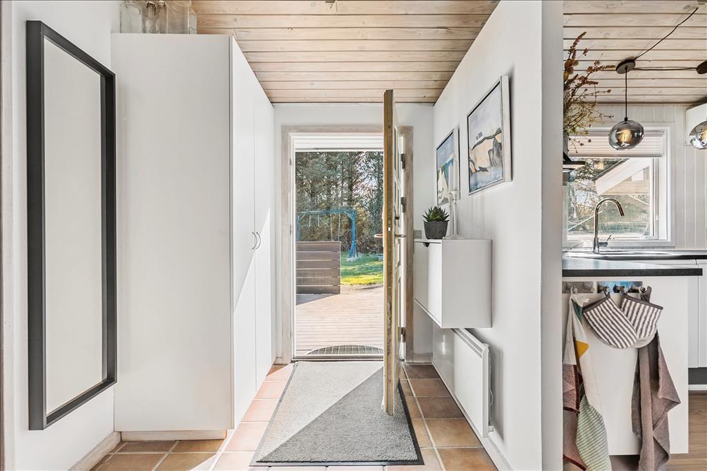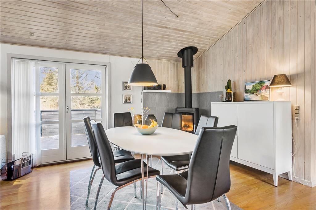Sommerhus i Løkken Strand og By, Nordjylland, med plads til 6 voksne og 2 husdyr. Der er en hyggelig indretning med bl.a. brændeovn, og du finder desuden vaskemaskine, opvaskemaskine og tørretumbler i boligen.