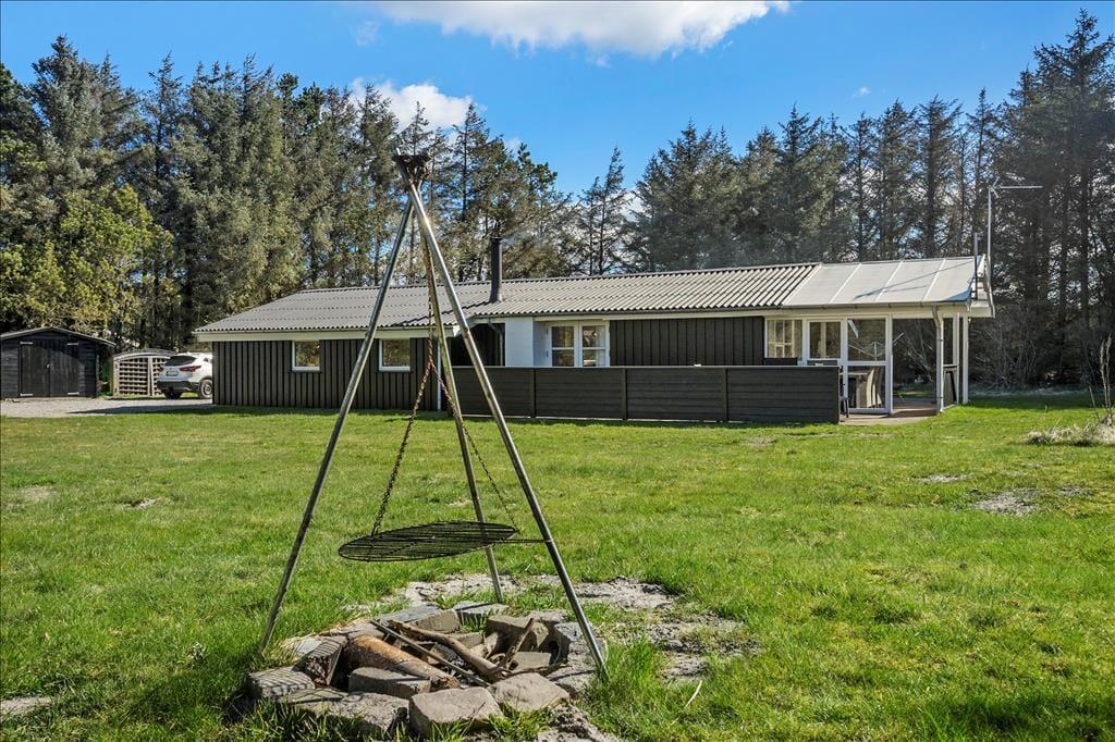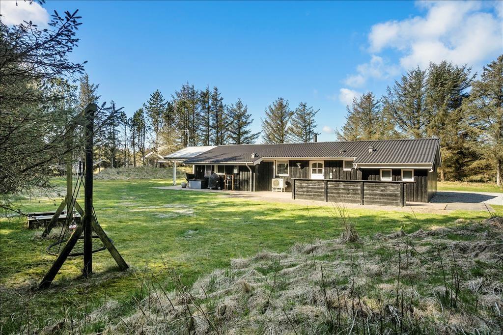 Hyggeligt sommerhus i Løkken med brændeovn, internet, og stor have med gynge og sandkasse. Perfekt til familie og husdyr.