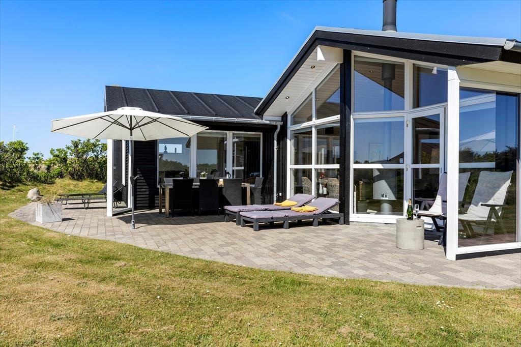 Kom indenfor i et af vores flotte sommerhuse; her er god plads og rum nok til en større familie. Med højt til loftet, store vinduer og klare og glade farver mødes man overalt af en dejlig og imødekommende atmosfære. Dette moderne hus er nyligt renoveret og overalt i huset er der et fantastisk lysindfald. Køkken og stuen er i åbenforbindelse. Huset har en charmerende indretning med kunst på væggene og mange hyggelige detaljer. Husets samlingspunkt er i den rummelige stue, når der skal slappes af i sofaen med tv eller spil på tablets eller pc. Desuden tre fine soveværelser og to badeværelser, hvoraf det ene er med spabad og sauna. Til de kreative er her et dejligt atelier, hvor man kan lade sig inspirere af udsigten og lyset over klitlandskabet, og børnene vil sætte pris på aktivitetsrummet, hvor de kan lege og have det sjovt i timevis. Alt i alt et skønt og dejligt feriehus til en afslappende familieferie.