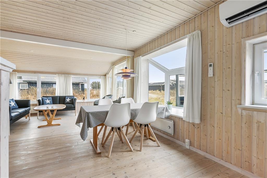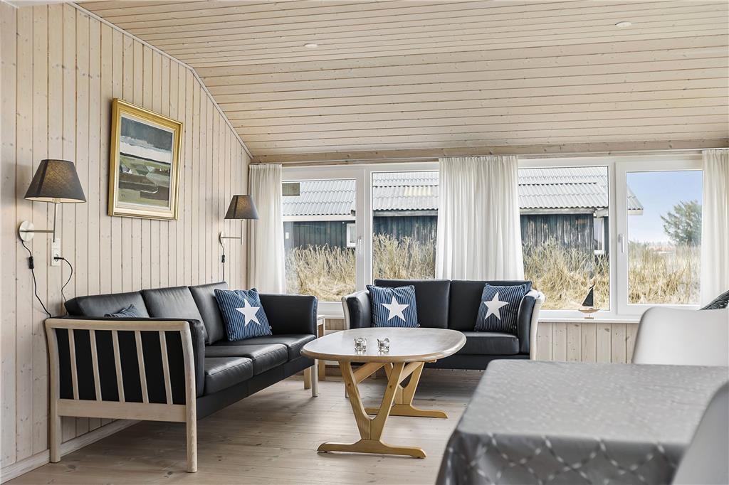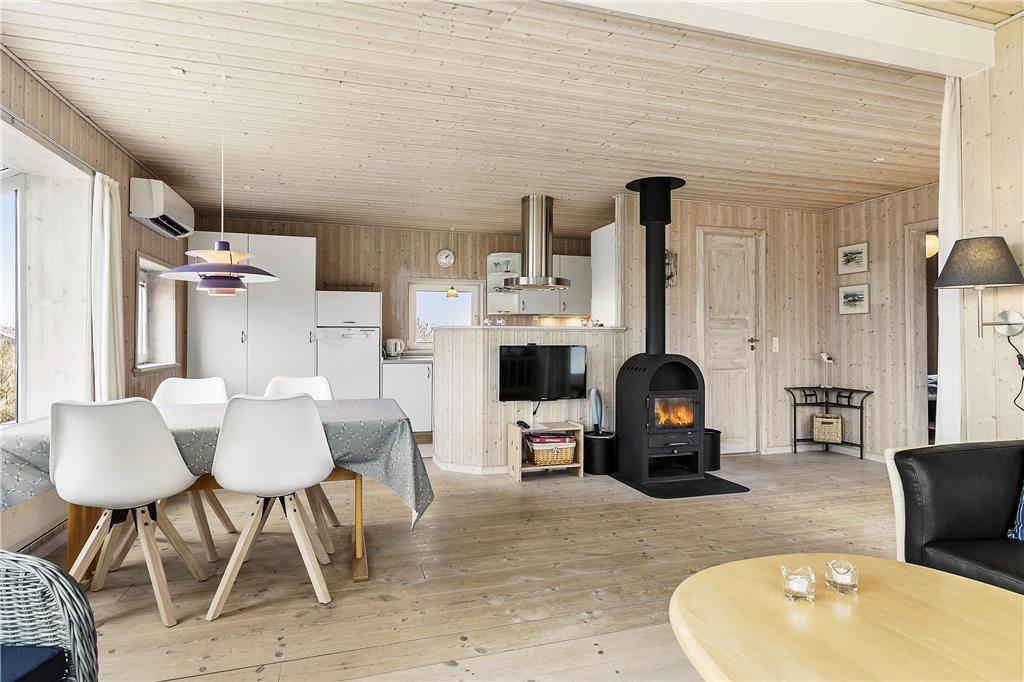 Har man først én gang holdt ferie ved Vesterhavet og oplevet det fantastiske lys og det fascinerende hav, ønsker man bare at komme tilbage hertil. I dette sommerhus får man gode rammer til en hyggelig og afslappende ferie tæt ved vandet. Sommerhuset er charmerende indrettet med mange vinduer og en flot glaskarnap, så lyset af sig selv kommer ind i rummene, og samtidig kan udsigten nydes ud over klitlandskabet. Man har rådighed over et åbent køkken-alrum med stue, to værelser og et badeværelse med bruser, og af moderne faciliteter kan blandt andet nævnes trådløst internet, gode hårde hvidevarer, varmepumpe og ikke mindst en centralt placeret brændeovn, som spreder varme til hele huset. Fra køkkenet er der en direkte adgang til en flot læfyldt terrasse. Sommerhuset er bedst egnet til et par eller to, som gerne vil opleve denne smukke del af Nordjylland sammen, men kan også benyttes af en lille familie med et enkelt eller to børn.