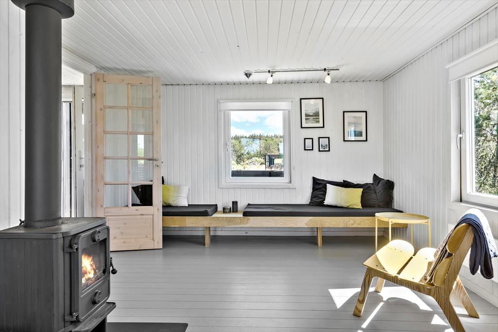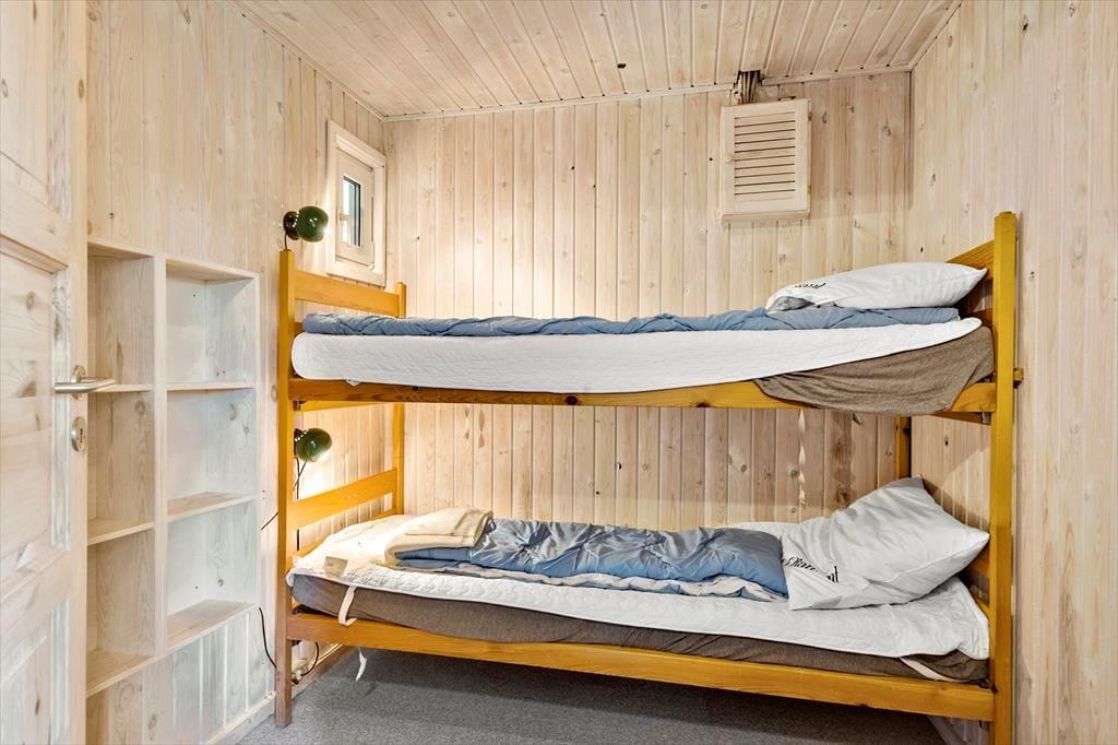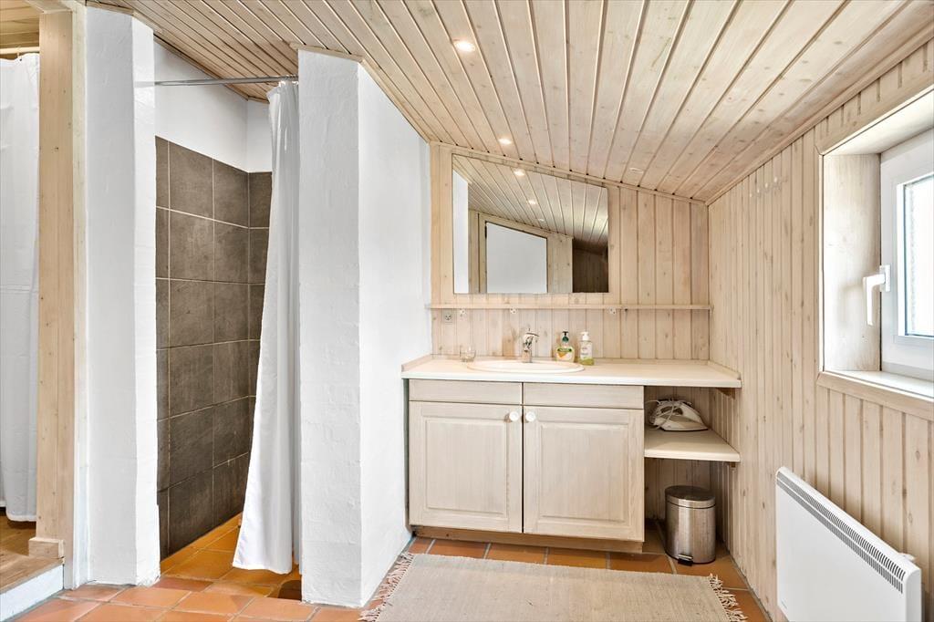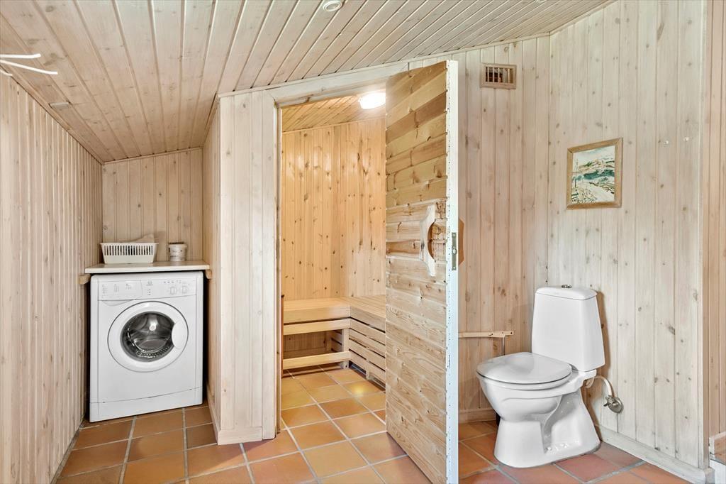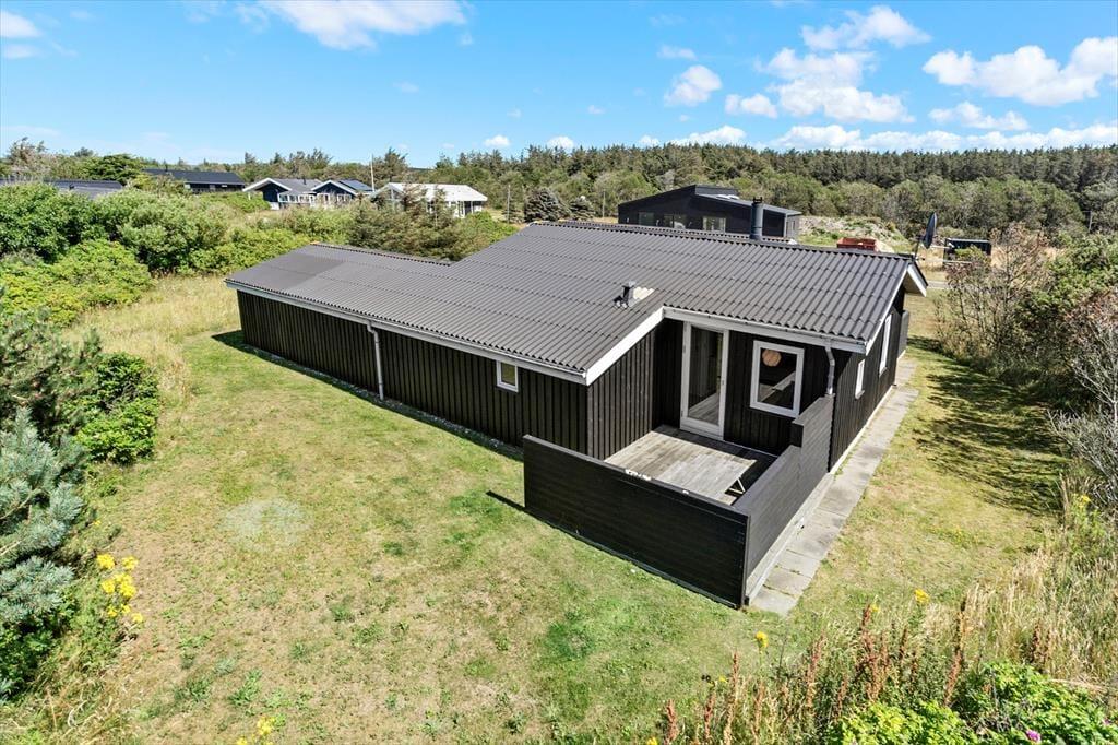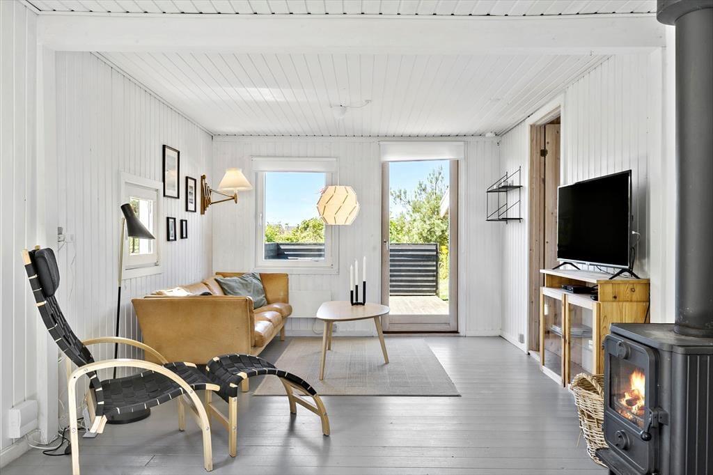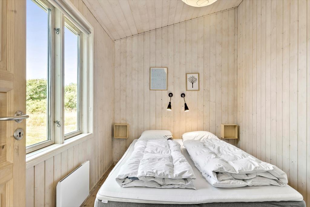 Sommerhuset er funktionelt indrettet med værelser fordelt på en måde, så to familier sagtens kan være i sommerhuset sammen og alligevel have lidt privatliv, eller man kan vælge, at lave en børne - og voksen afdeling, da værelserne er fordelt i begge ender af sommerhuset. Fra entreen kan man gå til højre ind i køkken og spiseafdelingen eller til venstre, hvor den hyggelige stue med udgang til den store terrasse er. Sommerhuset råder over et dejligt stort badeværelse med bl.a. vaskemaskine, hvilket er meget praktisk, når man bor så tæt på Vesterhavet og med garanti kommer til at bruge meget badetøj og mange håndklæder til badeturene i det friske vesterhav.