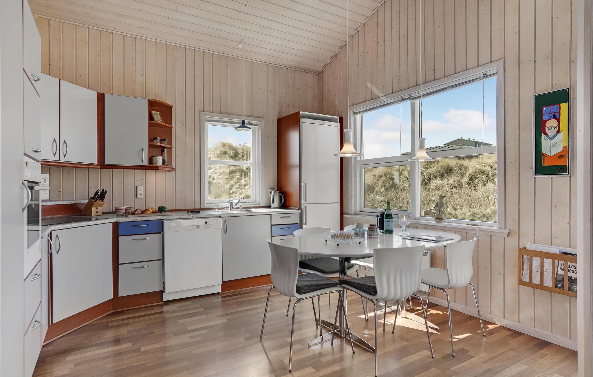 Hold jeres næste ferie i Løkkens fascinerende klitlandskab og fyld dagene med friske dukkerter og smukke gåture. Boligen er lyst og luftigt indrettet, så her er der gode rammer til jeres hyggestunder hjemme. Lyset i den moderne indretning ledsages af store vinduespartier, som lukker lyset og naturen ind i opholdsrummet og sørger for en vidunderlig ro. Når I samles om dagens måltider, er det også med udsigt til den helt særlige kystnatur. Efter en lang dag på farten kan I med god samvittighed læne jer tilbage i sofaen. Tal om dagens bedste oplevelser, mens flammerne knitrer stemningsfuldt fra brændeovnen. Begynd dagene med at træde ud på terrassen, lad blikket vandre hen over klitlandskabet og tag en tår af morgenkaffen til lyden af bølgebrus.