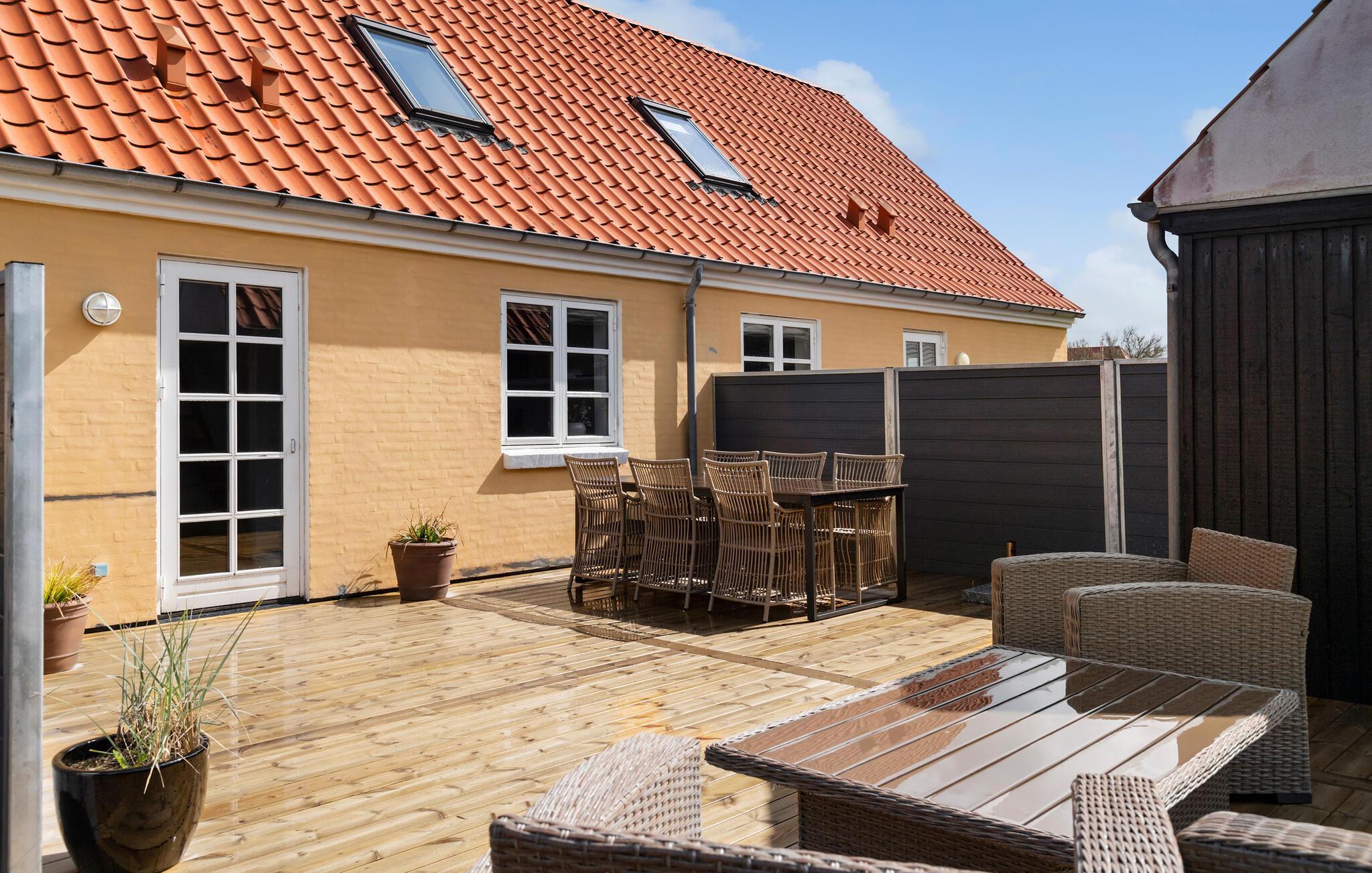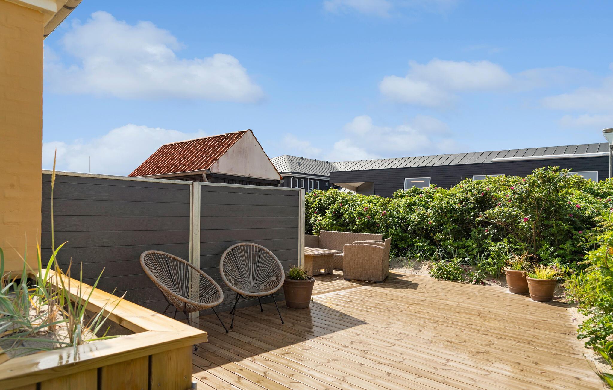 På de varme dage kan I nyde solen og den friske havluft lige fra morgenstunden på den store terrasse. Her er der gode møbler og en grill, hvor I kan stege nogle gode bøffer under aftensolen, mens I lægger planer for de kommende dage.