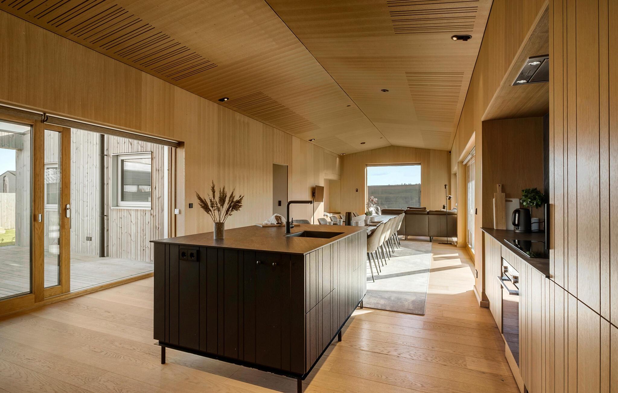 Nyd den danske kystatmosfære i jeres moderne bolig, som ikke lader noget tilbage at ønske. Start jeres dag med en dejlig morgenmad ved det lange, flotte træspisebord. Tilbered jeres måltider i det tilstødende, åbne køkken. I kan også spise udenfor på den rummelige terrasse, som er beskyttet mod vind og vejr af et elegant trætag.