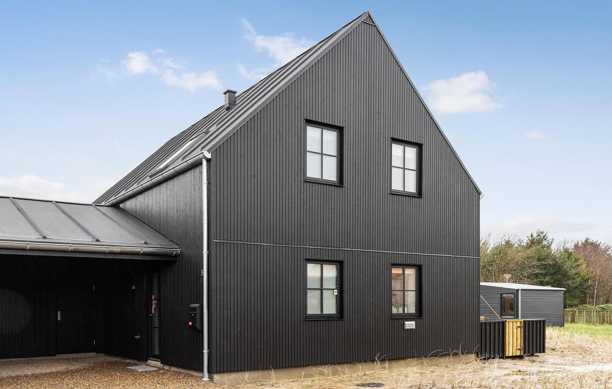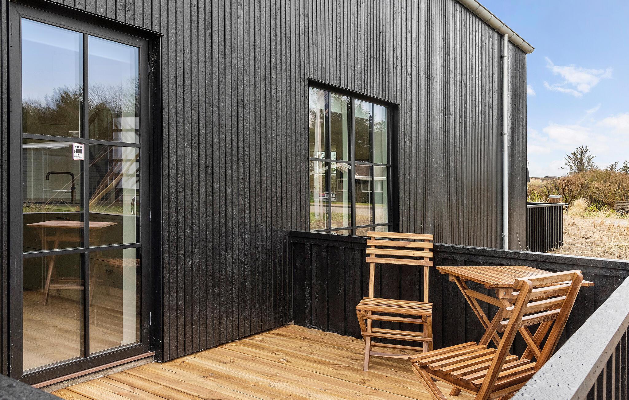 Moderne og energivenligt træhus nær Løkken strand med dejlig terrasse og udekøkken for afslappende ferie.