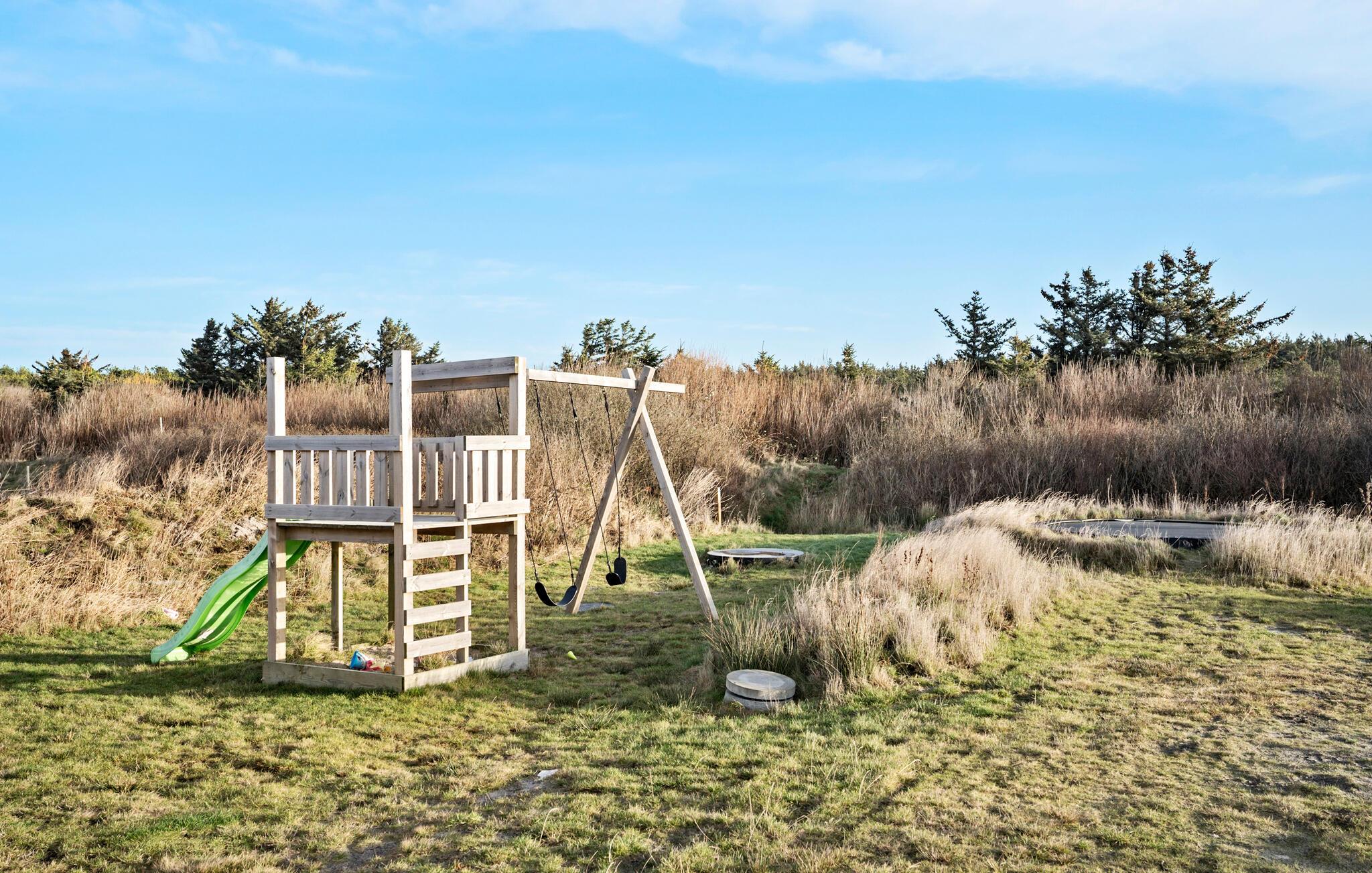 Udearealet er også skønt, for her er der masser af muligheder. Nyd solen på den store terrasse med siddepladser og grill sammen om aftenen. Børn nyder legeredskaber og trampolin i den store have. Den fredfyldte beliggenhed giver en kærkommen chance for at nyde naturen uforstyrret.