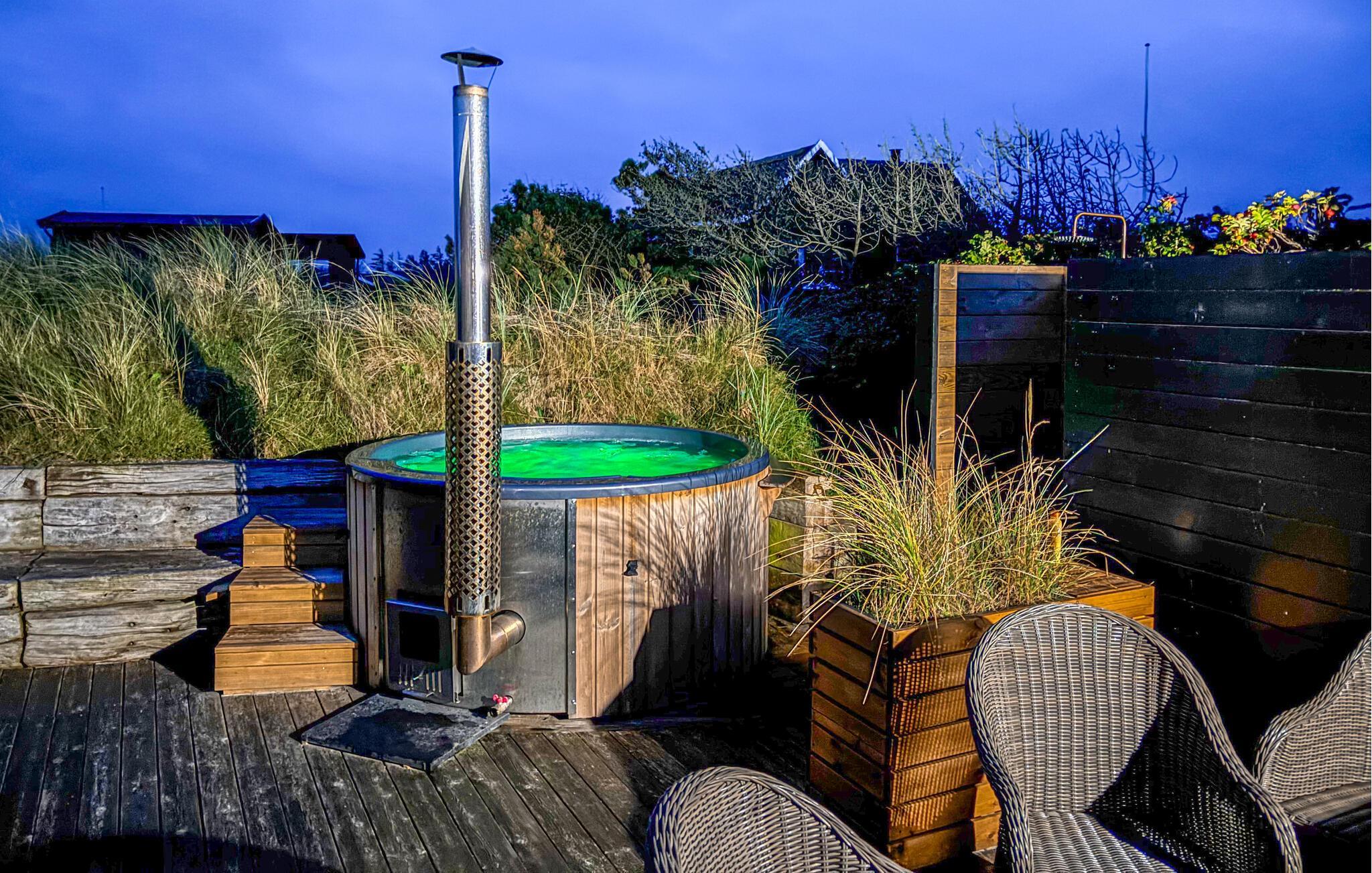 Indlejret i det klitlandskab i Hvorup Klit, nær Løkken, tilbyder dette hyggelige feriehus det ideelle tilflugtssted til en afslappet ferie med hele familien. Det lyse, moderne køkken er rummeligt og indbyder ikke kun til madlavning, men byder også på en smuk udsigt over den omkringliggende natur. Opholdsområdet er præget af store vinduer, som lader dagslyset strømme ind og skaber en varm, indbydende atmosfære. Efter dagens oplevelser kan I slappe ekstra godt af i saunaen eller spabadet. Gør jer det komfortabelt i det behagelige sofahjørne og nyd hyggelige aftener med brætspil, mens ilden knitrer i brændeovnen.
