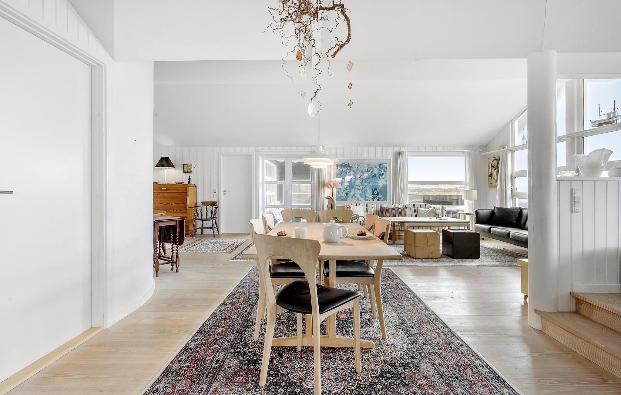 Velkommen til dette attraktive hus, der ligger tæt på stranden og Løkken, og hvor I får alt, I behøver til et vidunderligt ophold med den større familie. Her bor I i idylliske omgivelser i klitterne, og indvendigt fremtræder huset yderst flot med en åben planløsning og store vinduespartier, der giver det indre et lyst og luftigt udtryk og en fremragende udsigt til omgivelserne. Nyd godt af husets gode faciliteter og det veludstyrede køkken, hvor familiens kokke kan tage sig god tid til madlavningen, mens andre tænder op i brændeovnen på en gråvejrsdag og dækker op ved spisebordet. Efter aftensmaden kan I hive brætspillene frem eller sætte jer godt til rette i sofaen med snacks og en god film på tv'et, mens I lægger planer for de kommende dage.