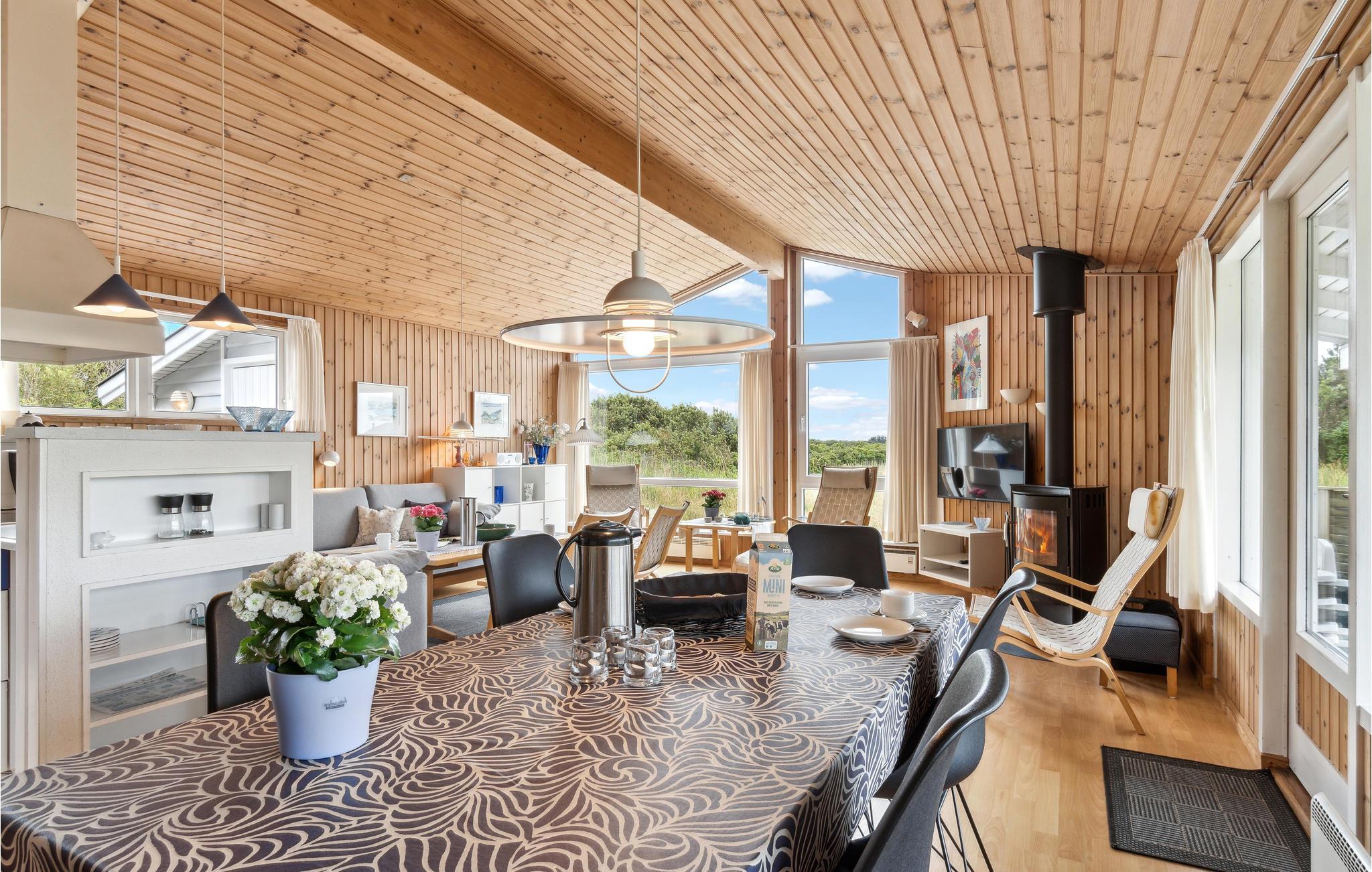 Lyst træhus nær Løkken Strand med sauna, spabad og aktiviteter for hele familien.