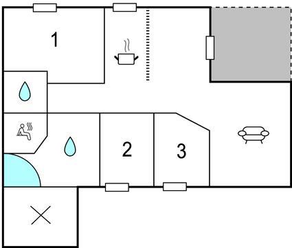 Badeværelse 3m2 (nr. 2) - WC. Varmt og koldt vand. Bruser
