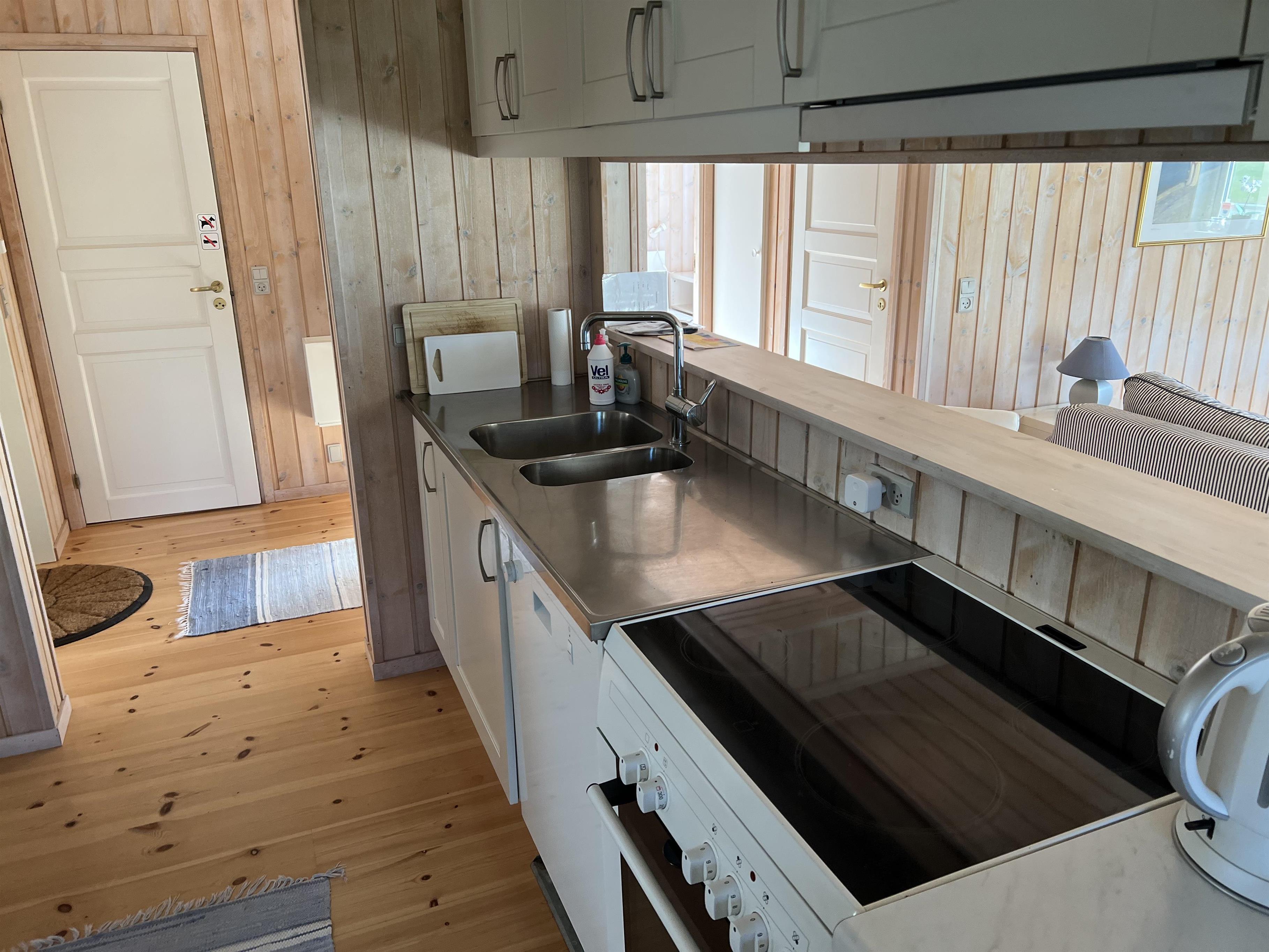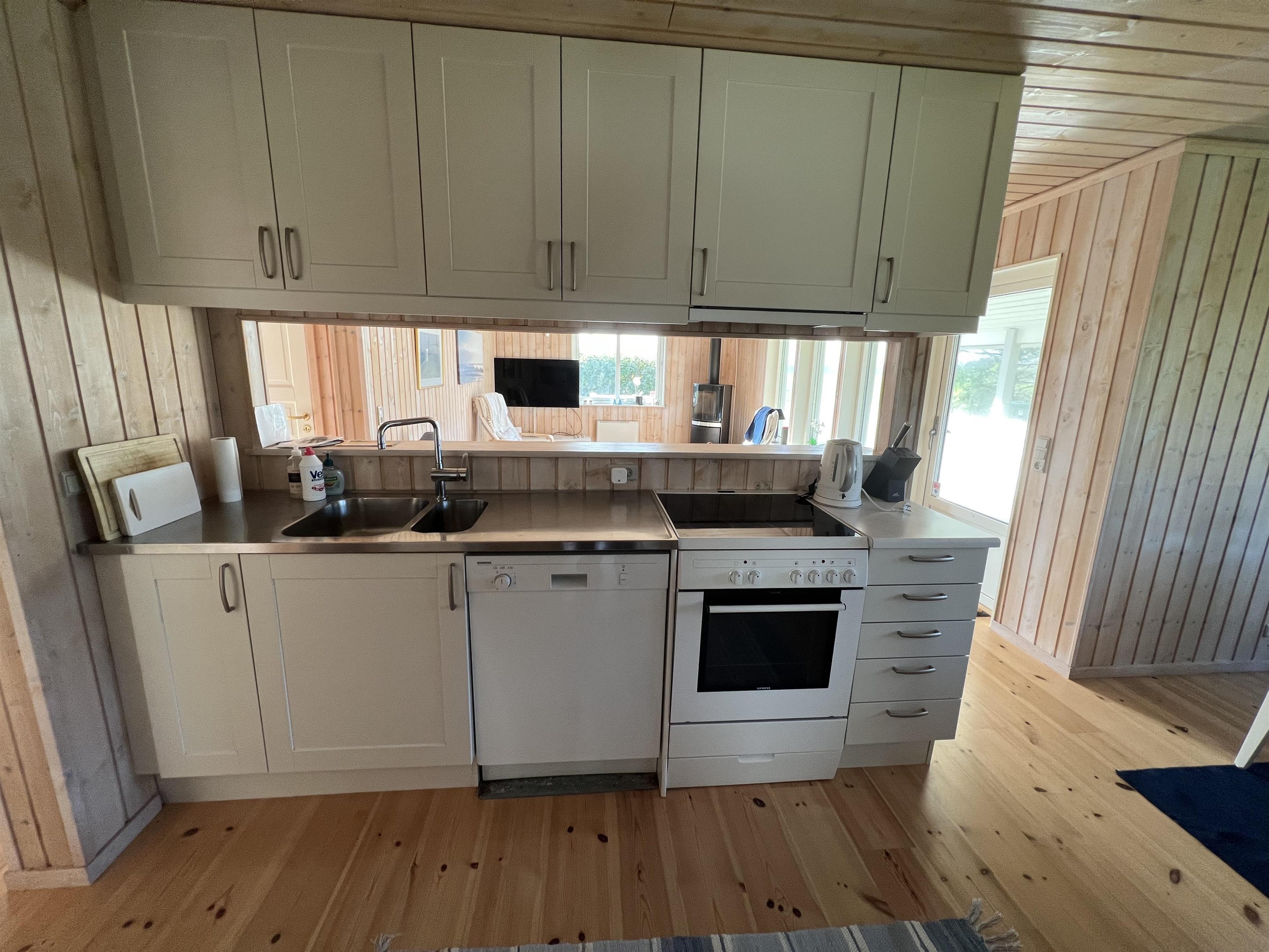 Her er en hyggelig stue med TV med danske og tyske kanaler. Det veludstyrede køkken med bl.a. opvaskemaskine og mikroovn ligger i åben forbindelse med stuen og den dejlige spiseplads.