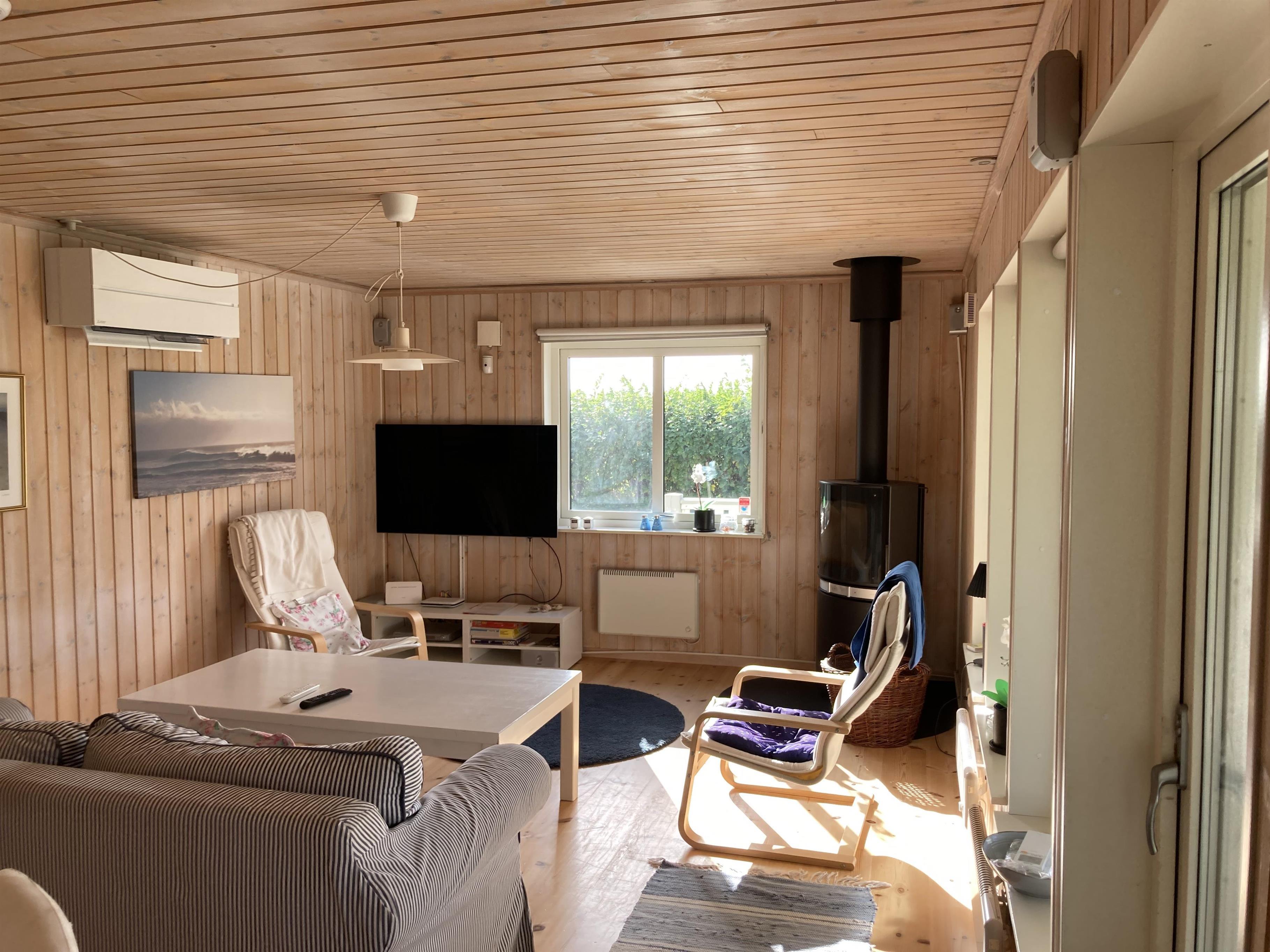 Huset er veldisponeret, har varmepumpe, brændeovn og gratis internet.