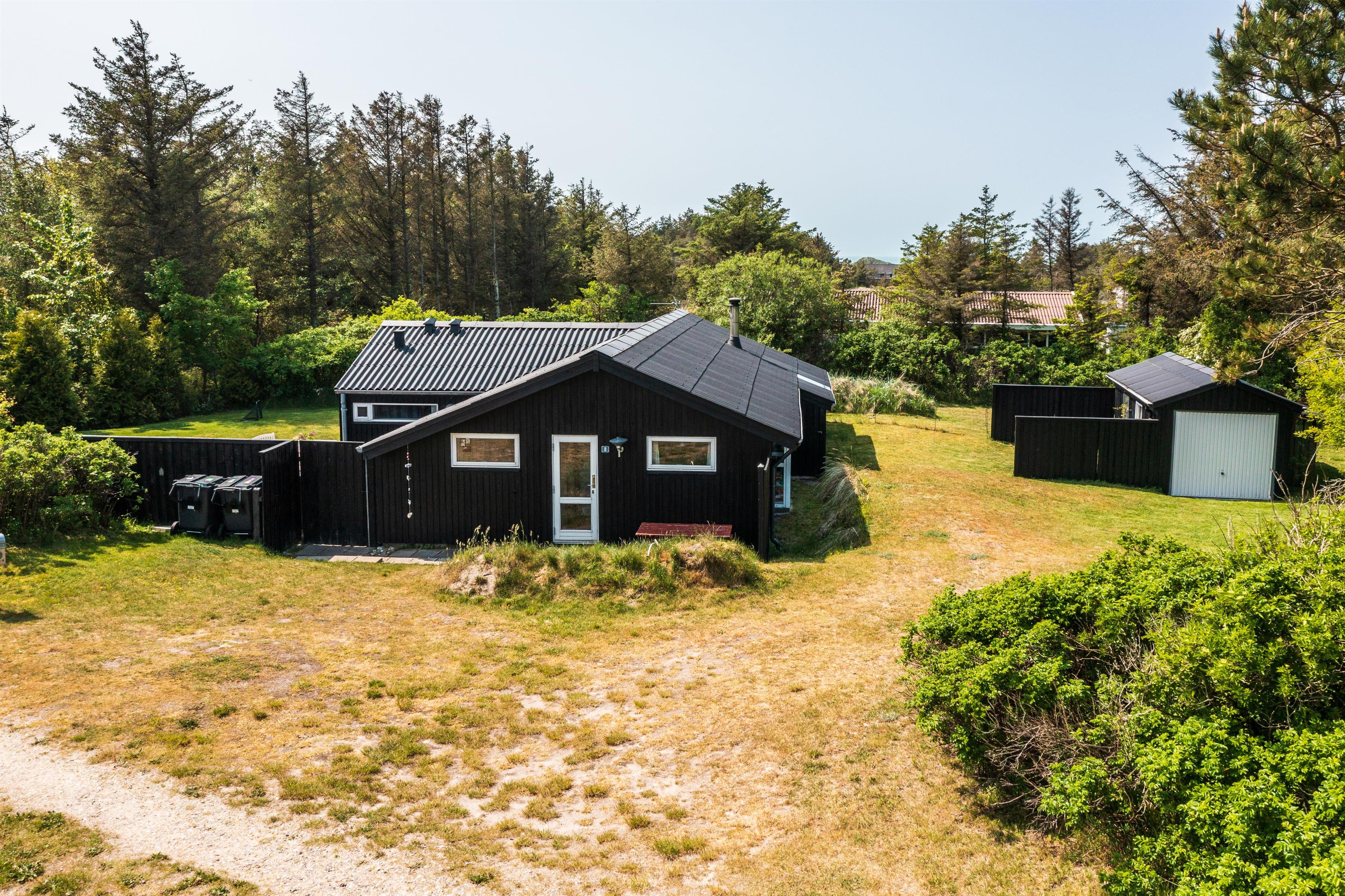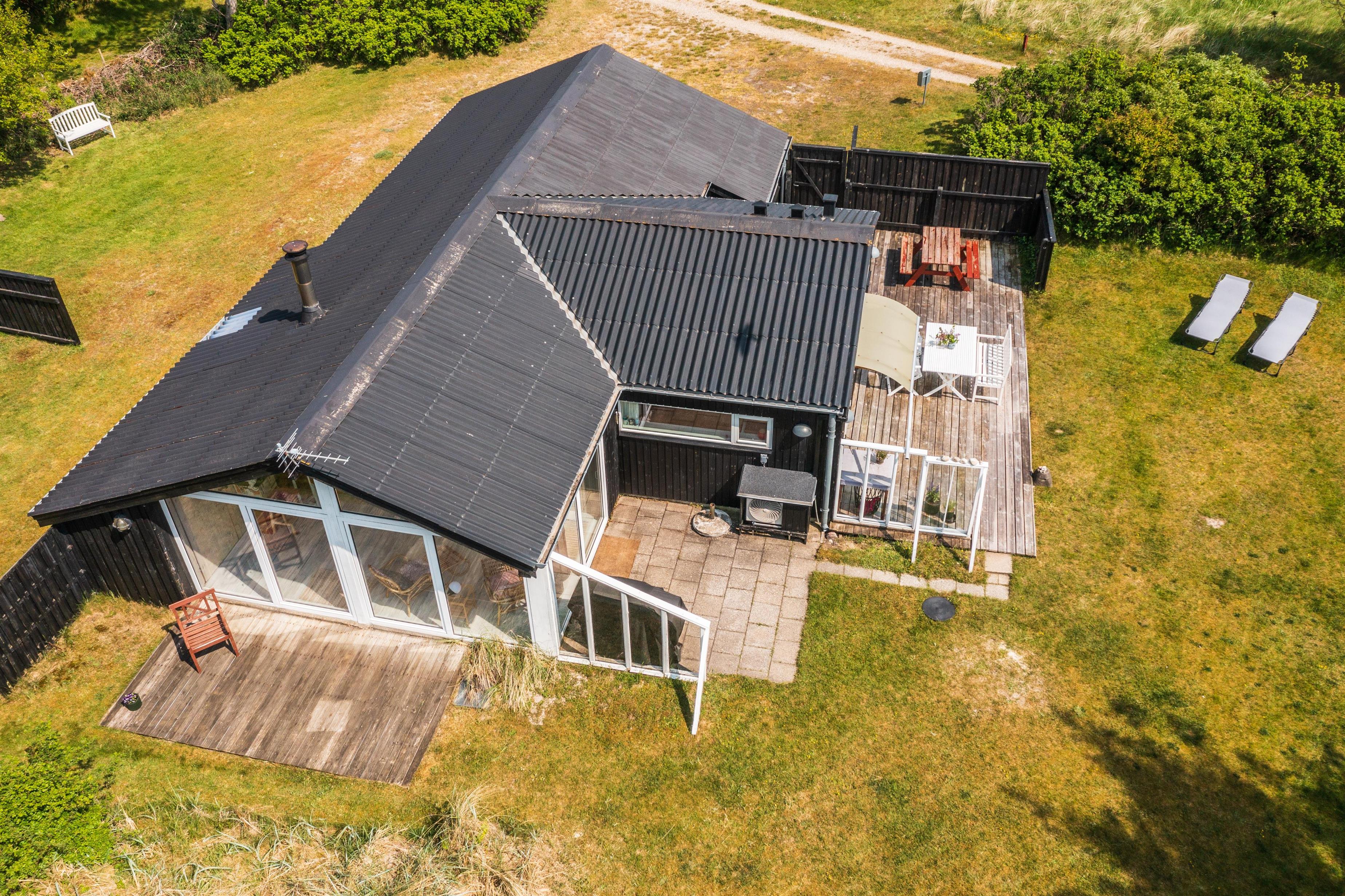Feriehuset ligger på en dejlig, lukket og ugeneret grund med plads i haven til leg og sjov for både børn og voksne. Haven er lukket af med et trådhegn, så I ubekymret kan lade børn og hund rende frit rundt. Ved huset er der lavet flere dejlige terrasser, hvor der er god mulighed for at finde læ for den til tider barske vestenvind eller følge solens stråler dagen lang. Find gerne grillen frem og nyd jeres aftensmad i det fri, mens I deler dagens oplevelser med hinanden.