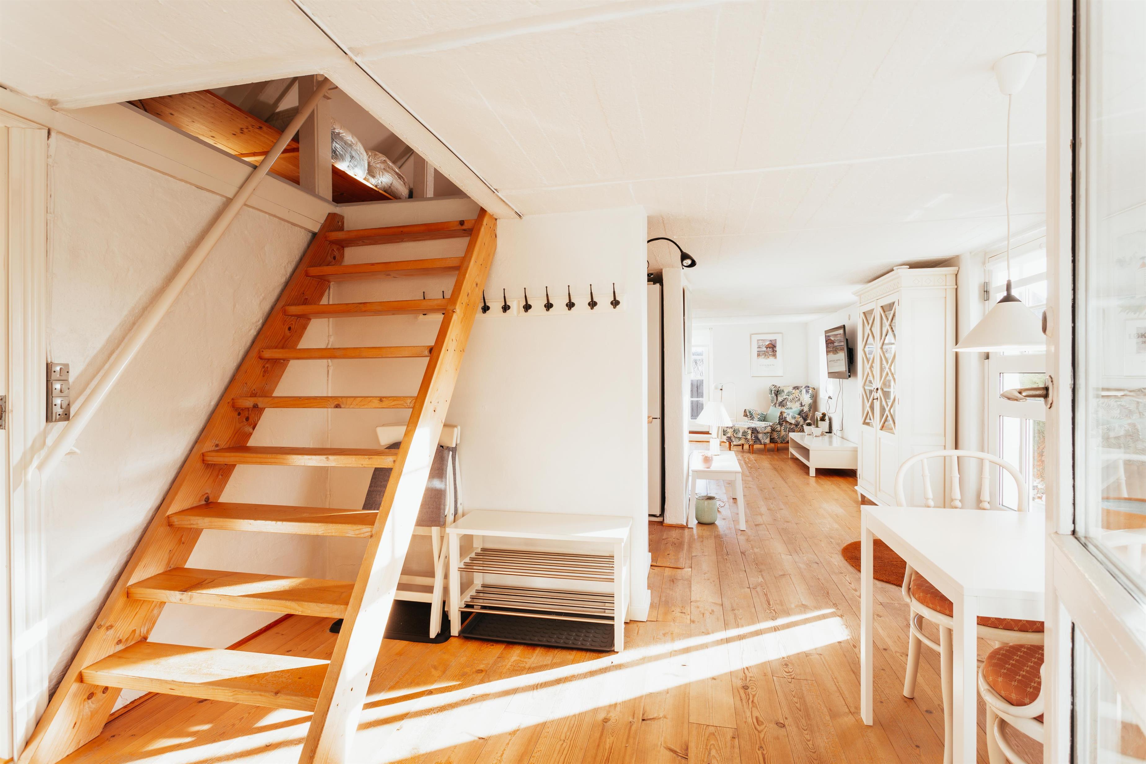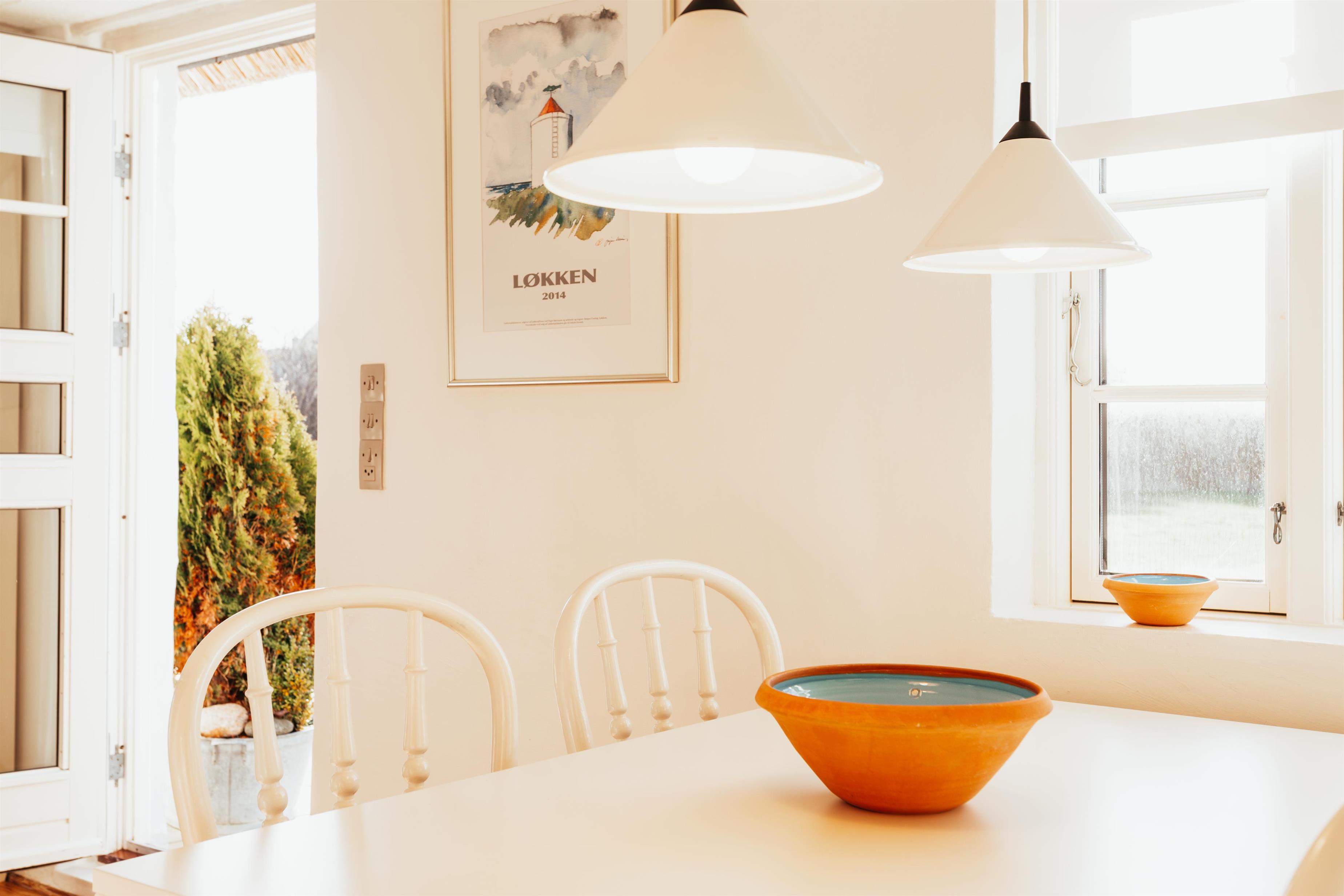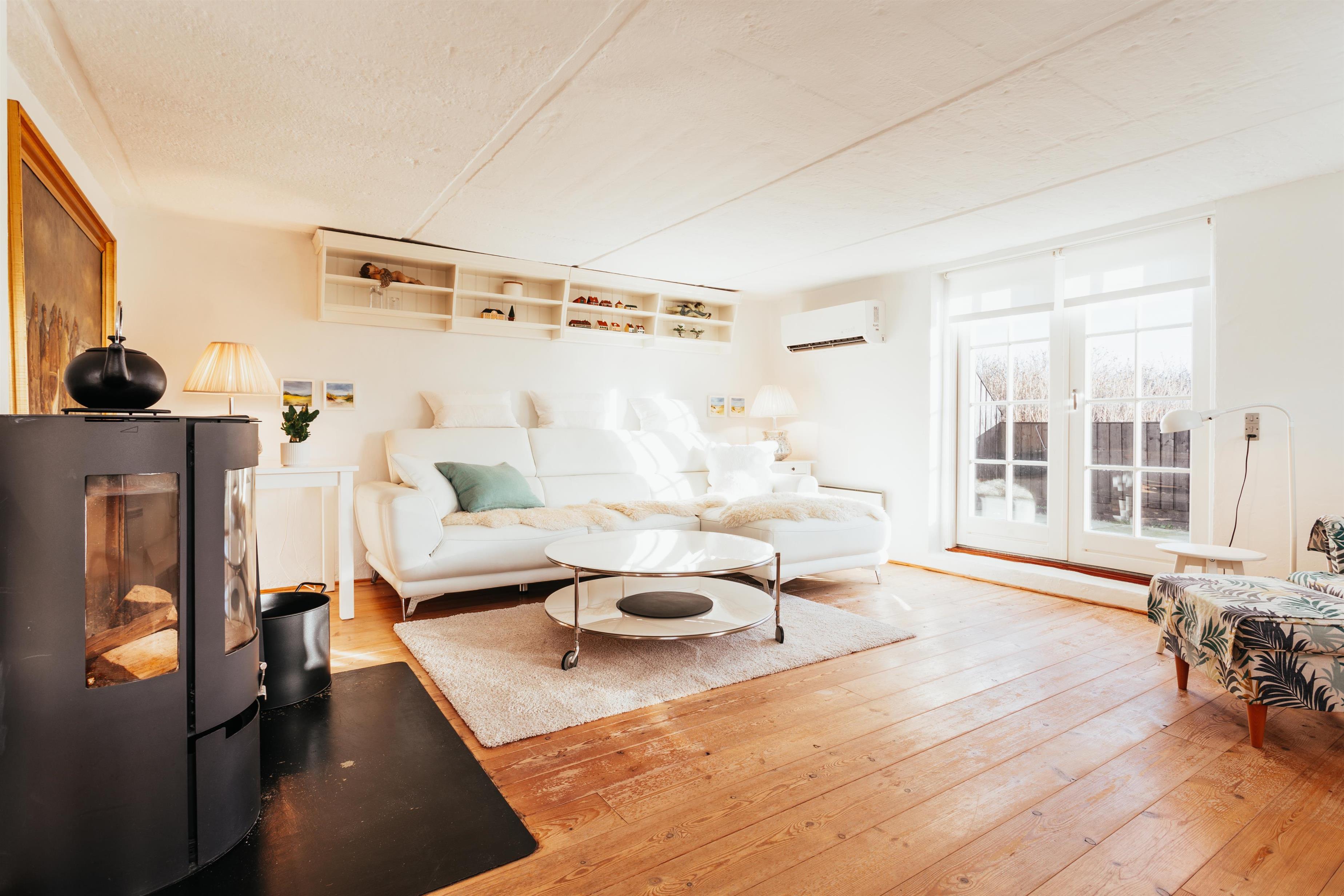 I huset findes der et veludstyret køkken samt en lys og rummelig opholdsstue, der ligger i åben forbindelse med køkkenet og spiseområdet. Det skønne lysindfald gennem vinduerne i udestuen, køkken og stuen skaber en dejlig atmosfære og gør opholdsrummene til det naturlige samlingspunkt for hele familien. Her kan I nyde feriestunder med madlavning, måltider og afslapning, mens brændeovnen sørger for varme og hygge på kølige dage.