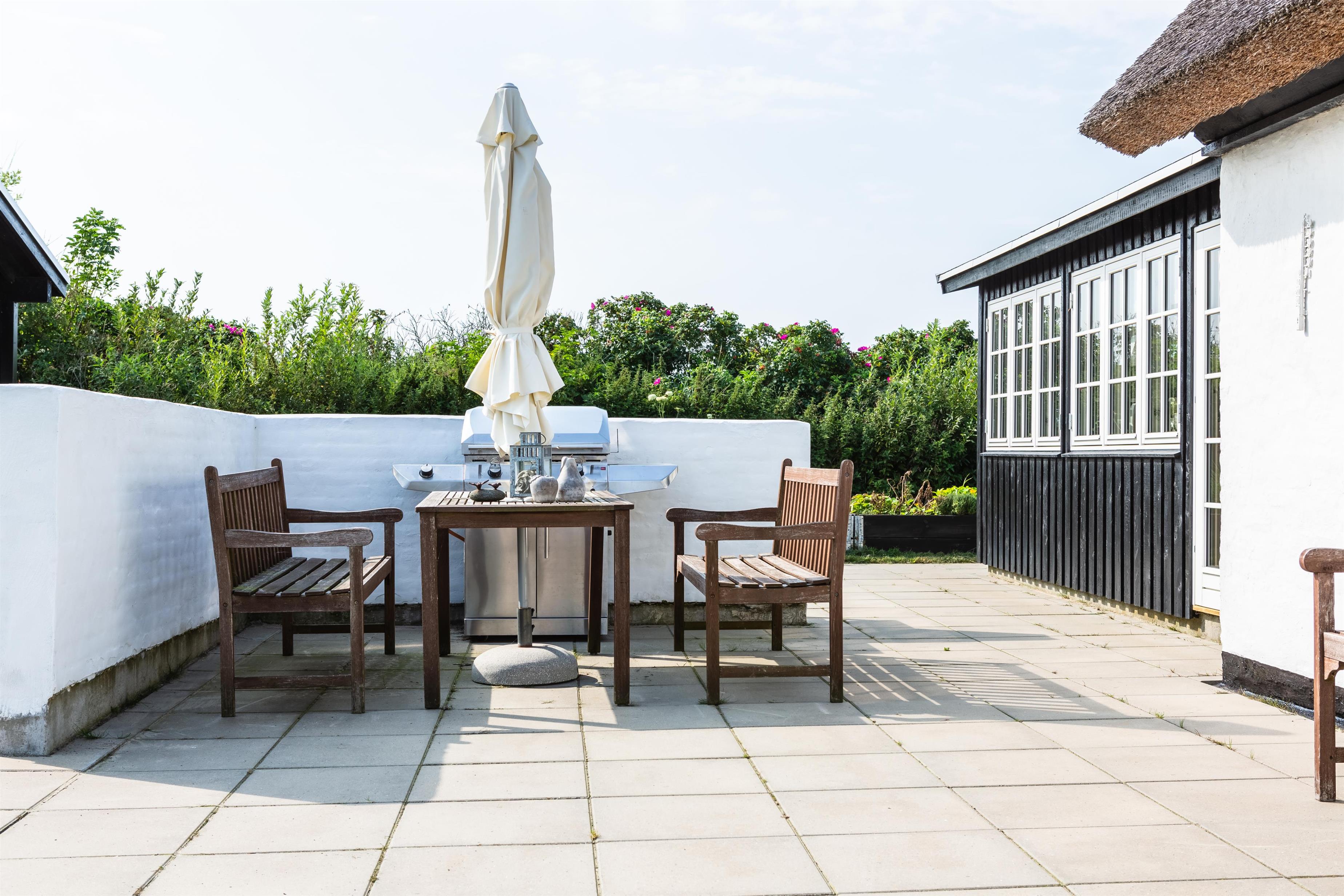 Fra køkken og stue er der udgang til en dejlig stor terrasse samt græsplæne, hvor både børn og voksne kan nyde det danske sommervejr. Her er der rig mulighed for at grille og nyde måltider i det fri, slappe af i solen og lave sommeraktiviteter i haven alt imens I nyder den friske havluft. Husets beliggenhed tæt på Løkken centrum og vesterhavet gør, at I er tæt på det hele og alligevel i god afstand fra trafik og larm fra byens liv.