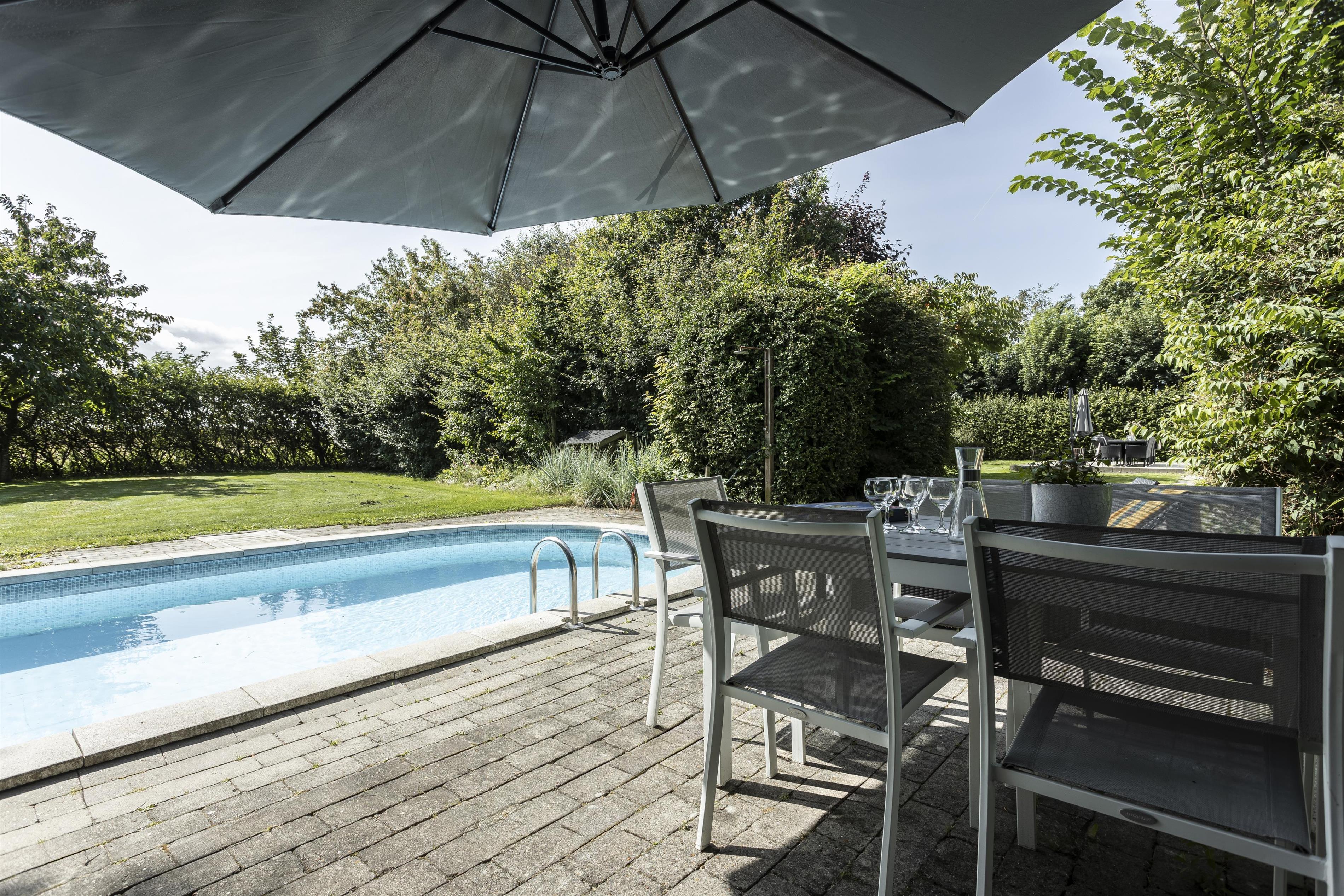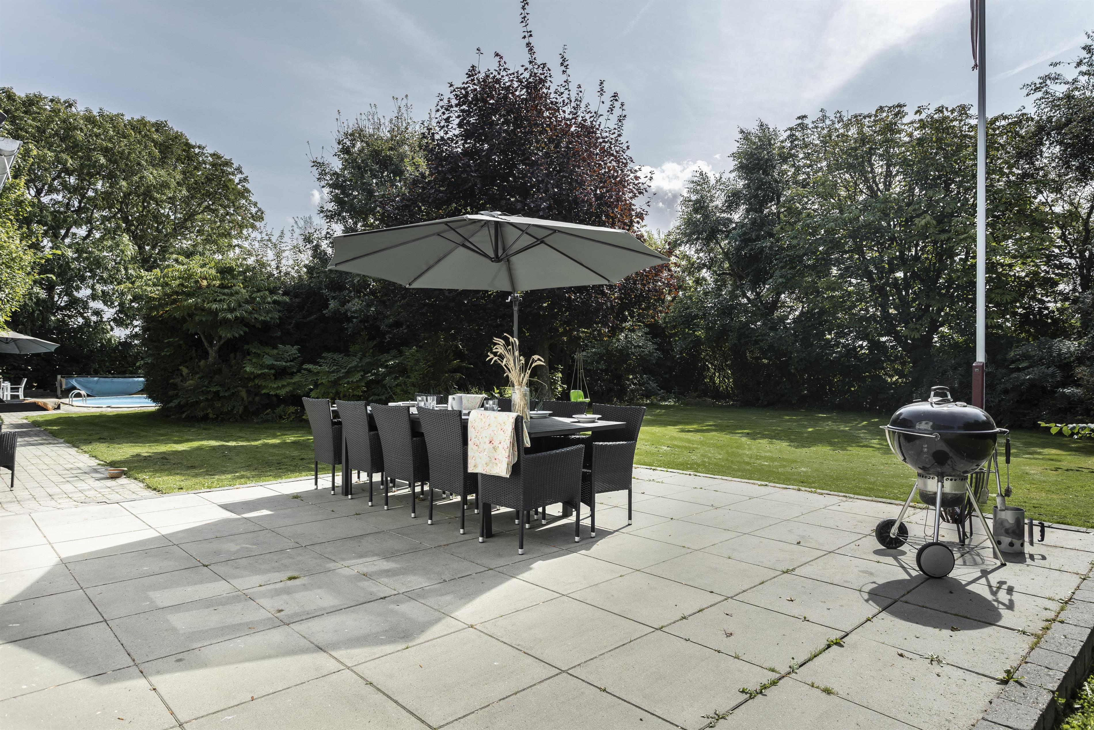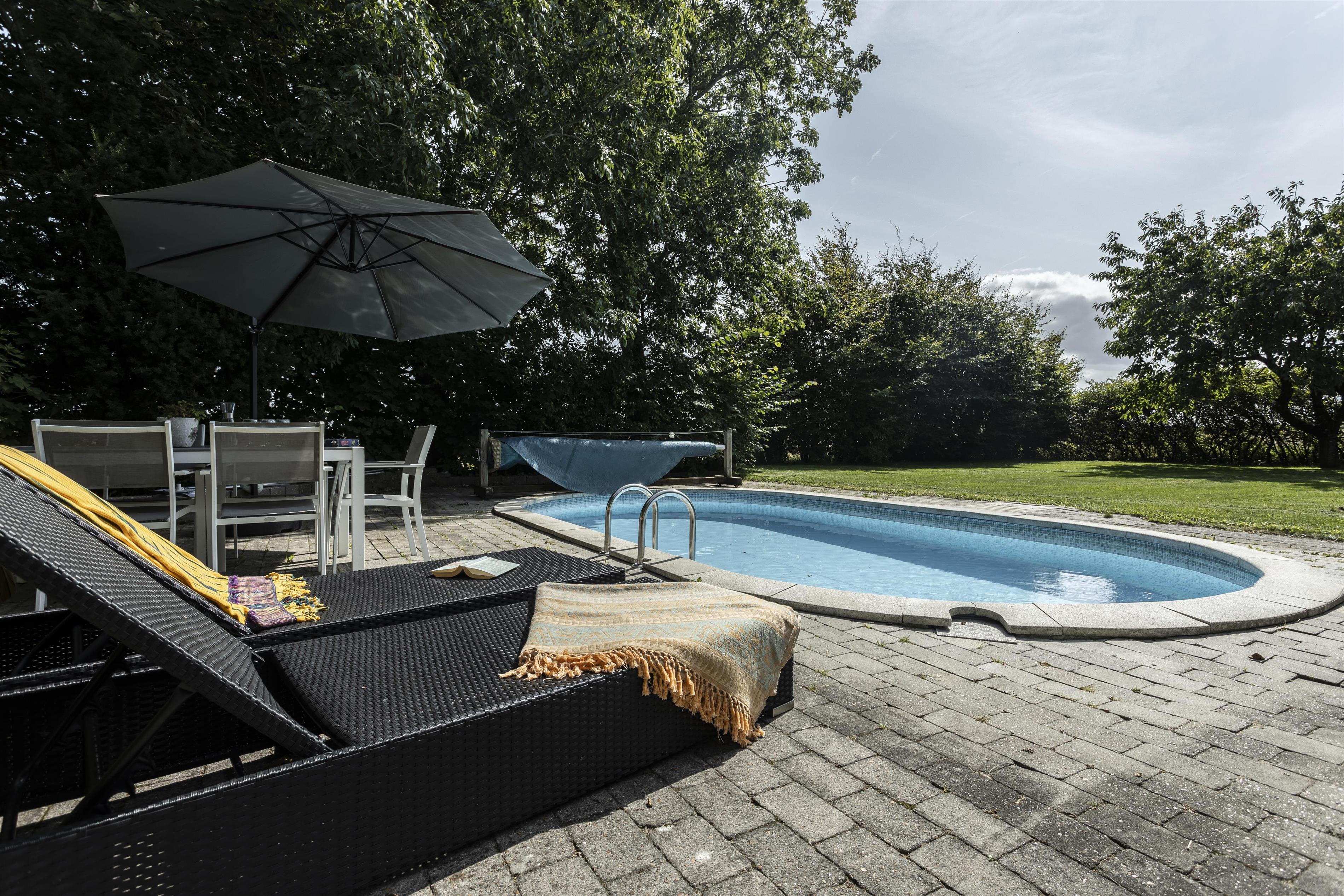 Huset er omgivet af en stor, privat have med masser af plads til leg og afslapning. Fra den solrige terrasse kan I nyde lyden af naturen, grille måltider i det fri og lade børnene boltre sig frit. Der er flere hyggelige steder med mulighed for at sidde og slappe af i det gode vejr. Den lækre pool på 7,5 x 3,75 meter er tilgængelig i sommermånederne juni, juli og august og tilbyder perfekte rammer for afslapning og solbadning på liggestolene ved poolen. Haven er det ideelle sted at nyde udendørslivet i ro og fred.