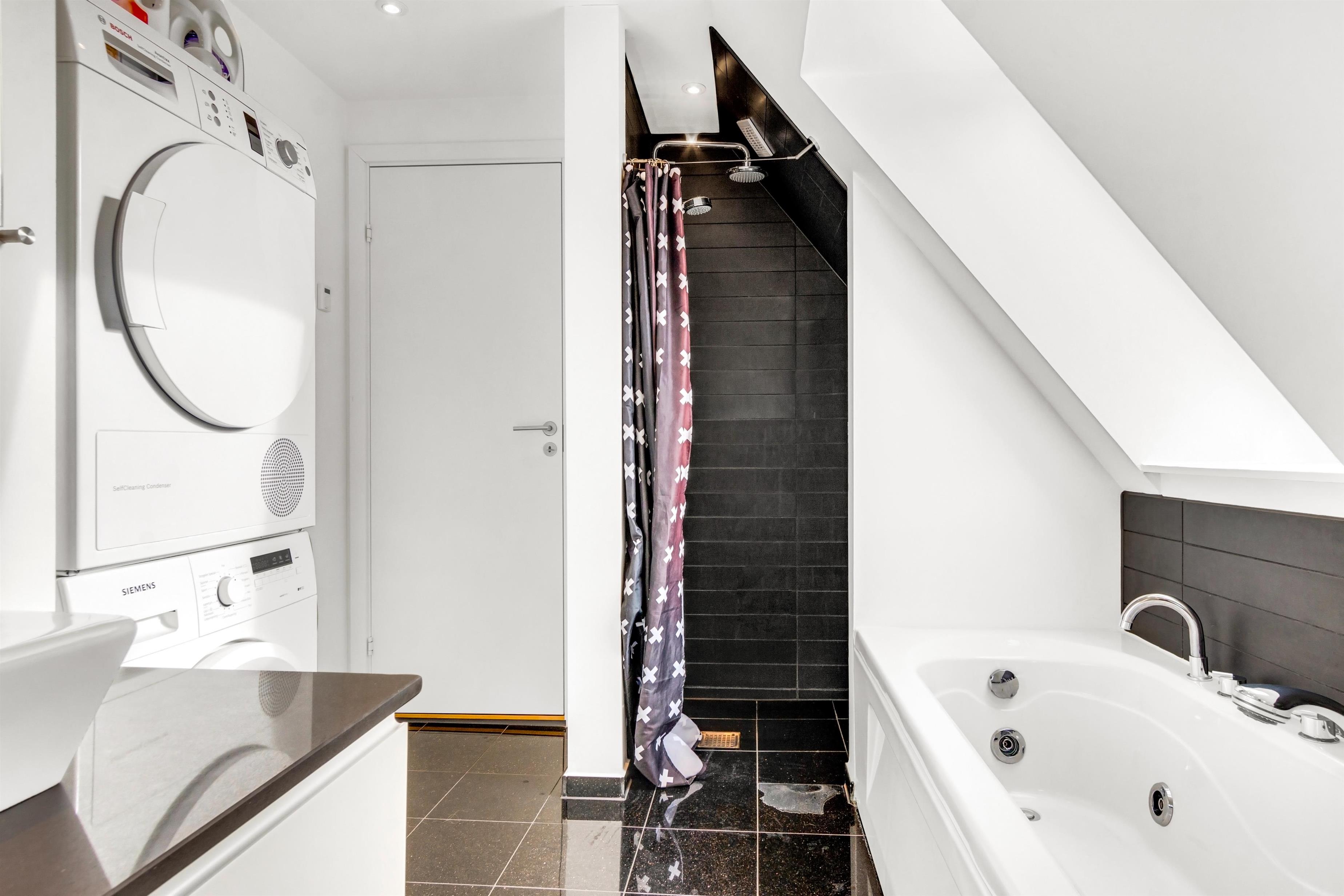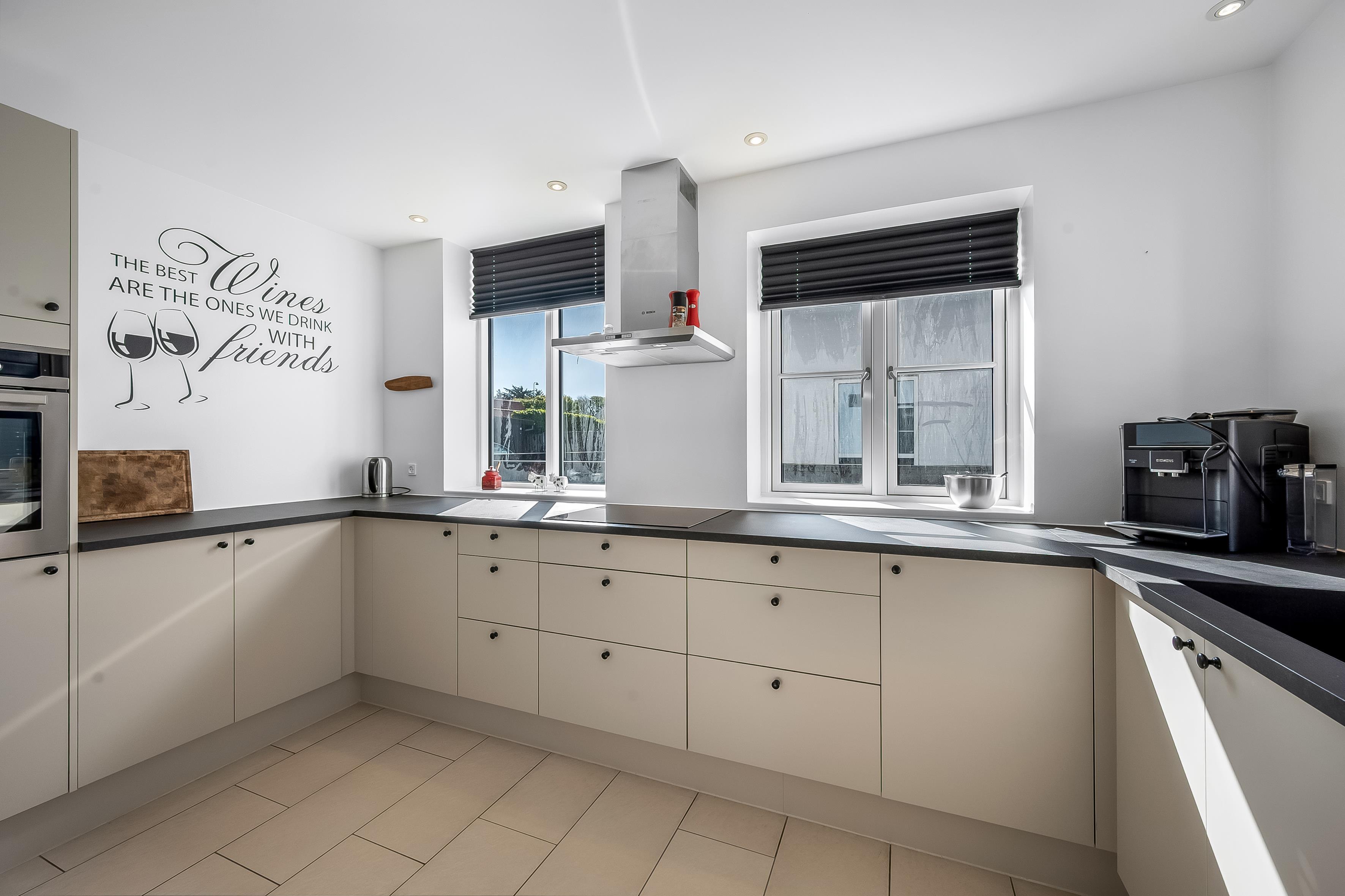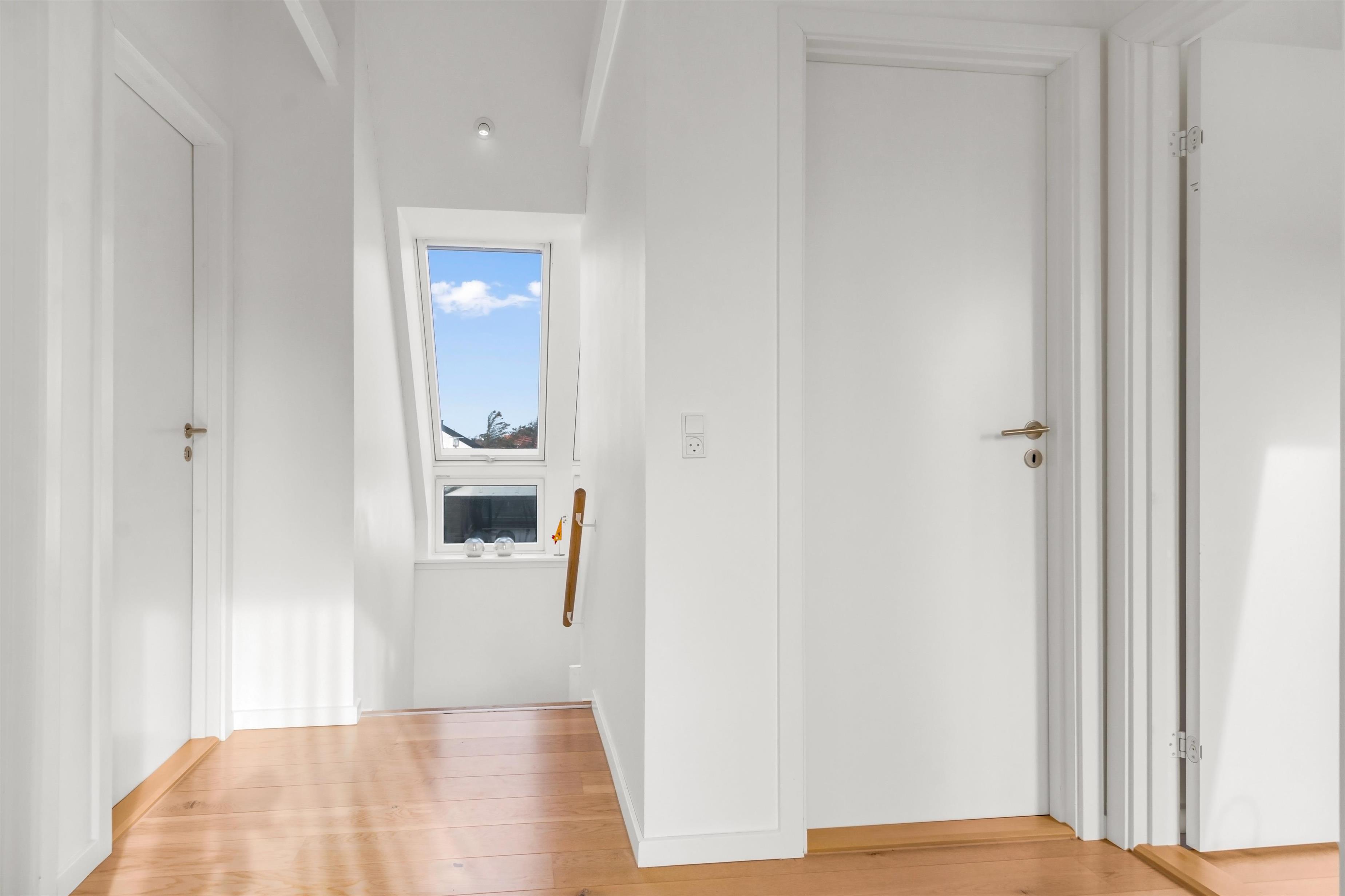 Selve huset er i to plan med tre soverum og et badeværelse på første sal. I stueetagen er der en dejlig, stor entré med badeværelse samt et super charmerende og lækkert køkken i åben forbindelse til den store, lyse stue og spisestue. Huset er stilsikkert indrettet og emmer af luksus og hygge. Hele vejen rundt om huset er der en dejlig terrasse, så det skulle altid være muligt at finde en plads i solen, når sommeren viser sig fra sin bedste side.