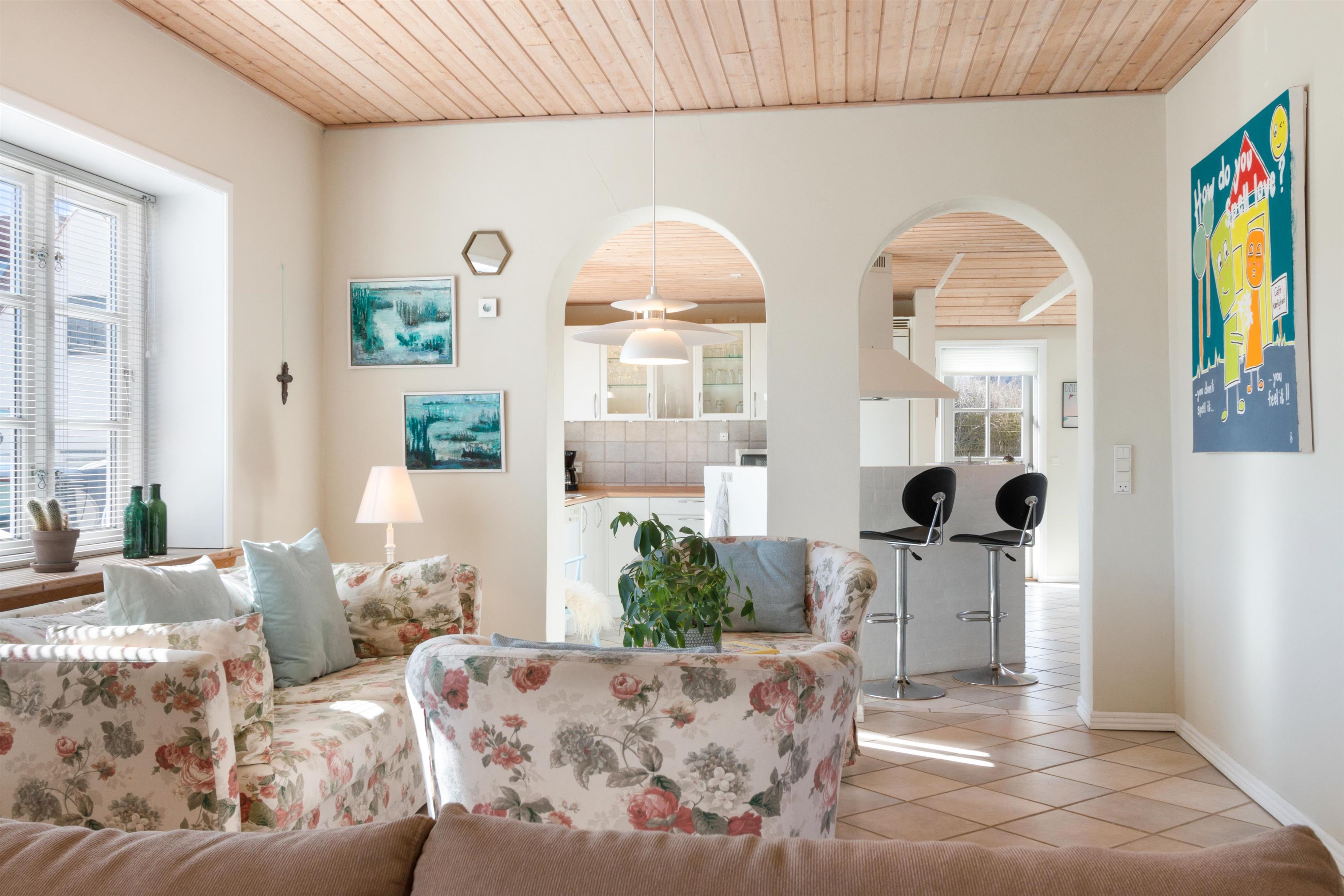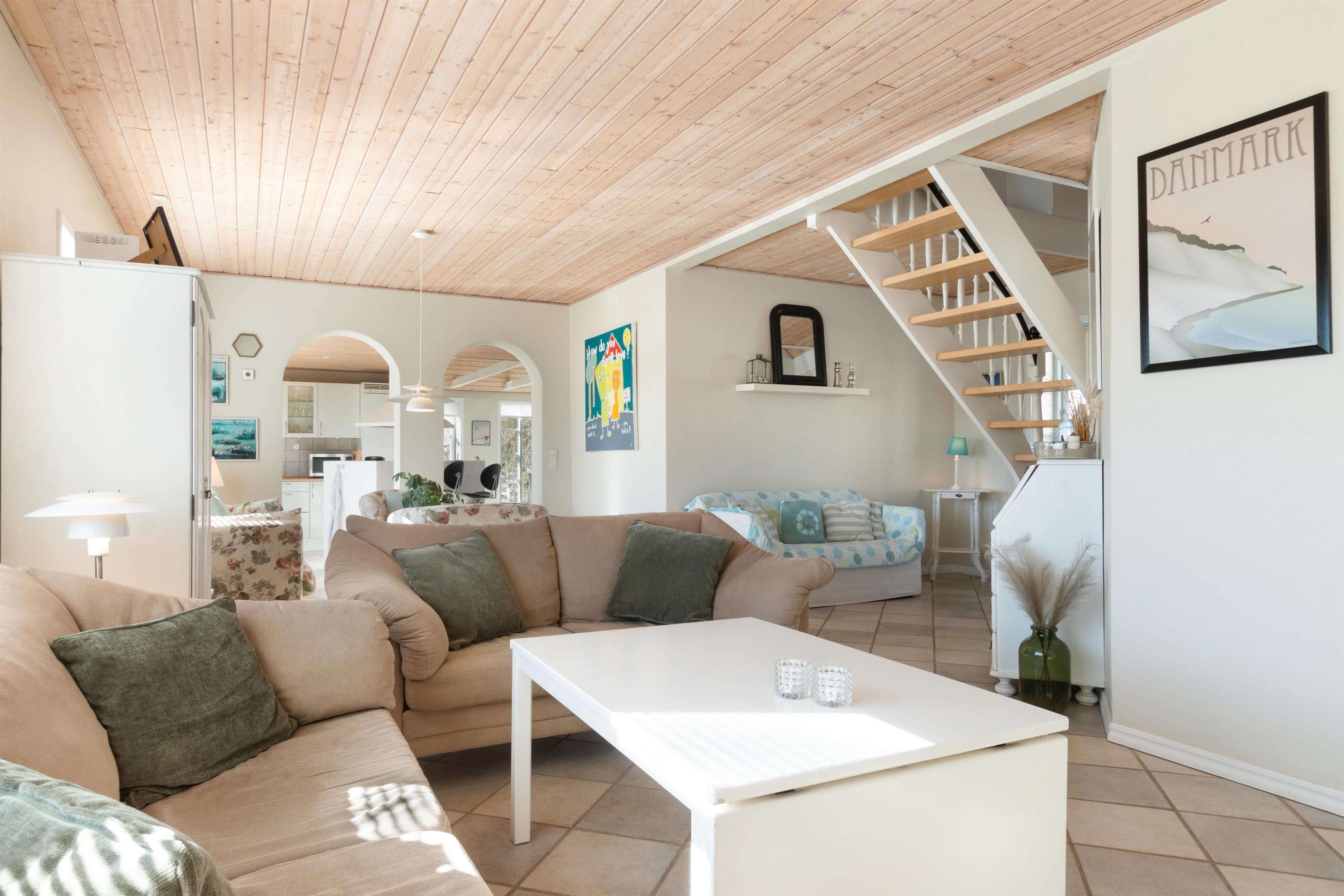 Strandly i Løkken byder på en lys feriebolig med åbent køkken, charmerende stue og plads til 6 personer samt 2 husdyr.