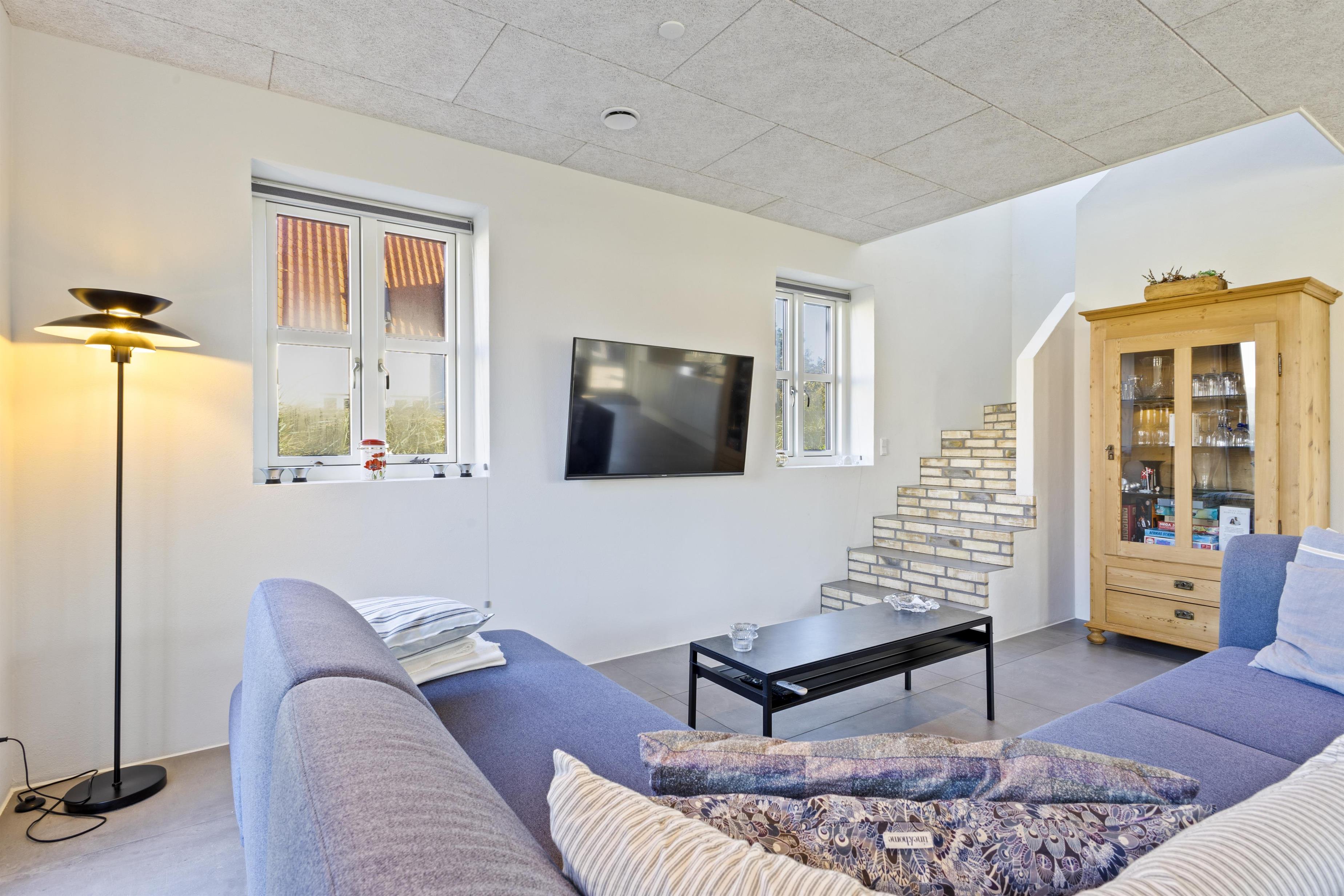 Huset er på to etager og har tre soveværelser, 6+4 sovepladser, to stuer og to badeværelser, det ene med badekar. Huset rummer diverse brætspil samt bordfodbold og dart. I annekset er der tv med stik, så I kan tilslutte medbragt spillekonsol. I køkkenet er der induktionskogeplader, indbygningsovn, indbygningsmikro-/kombiovn, opvaskemaskine og meget mere. Fra køkken er der direkte udgang til stor terrasse med havemøbler, hvor I kan flytte rundt sammen med solen hele dagen. I huset er der wi-fi, vaskemaskine og tørretumbler samt ventilation med passiv køling. Ved reservation kan der bookes yderligere 2 opredninger, enten på førstesalen eller i annekset.