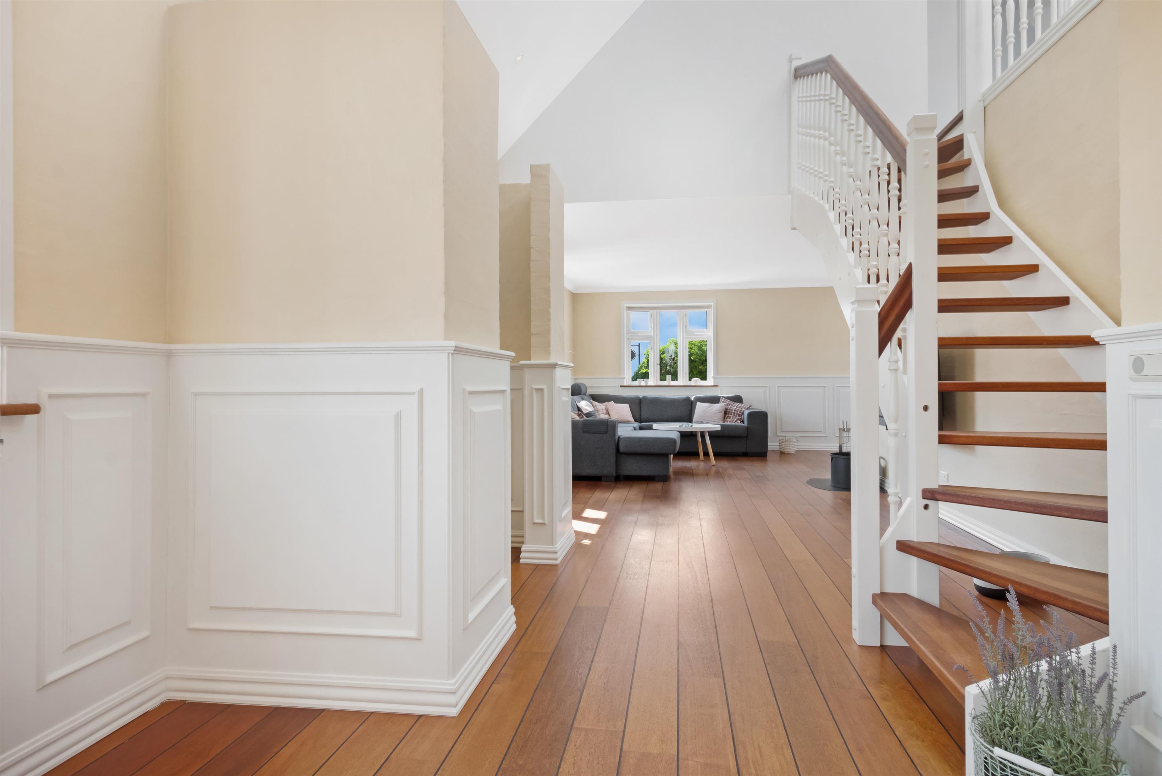 Her er masser af plads - hele ti personer kan være på ferie sammen - de 2+2 i sommerhusets største soveværelse på første sal, hvor der er rig mulighed for at sove 4 personer i samme rum. Dertil er der tre yderligere soverum med plads til 2 personer i hver. Boligen har to badeværelser med toilet, på første sal er der bruseniche og i stueetagen er der både bruseniche og en dejlig spa. Der er udgang til en dejlig terrasse og mulighed for at åbne op fra det store køkkenalrum og ud mod en forholdsvis privat baggård/have. Man træder ind i huset store og praktiske bryggers, hvor man kan smide evt. vådt badetøj og få skyllet tilsandede tæer.