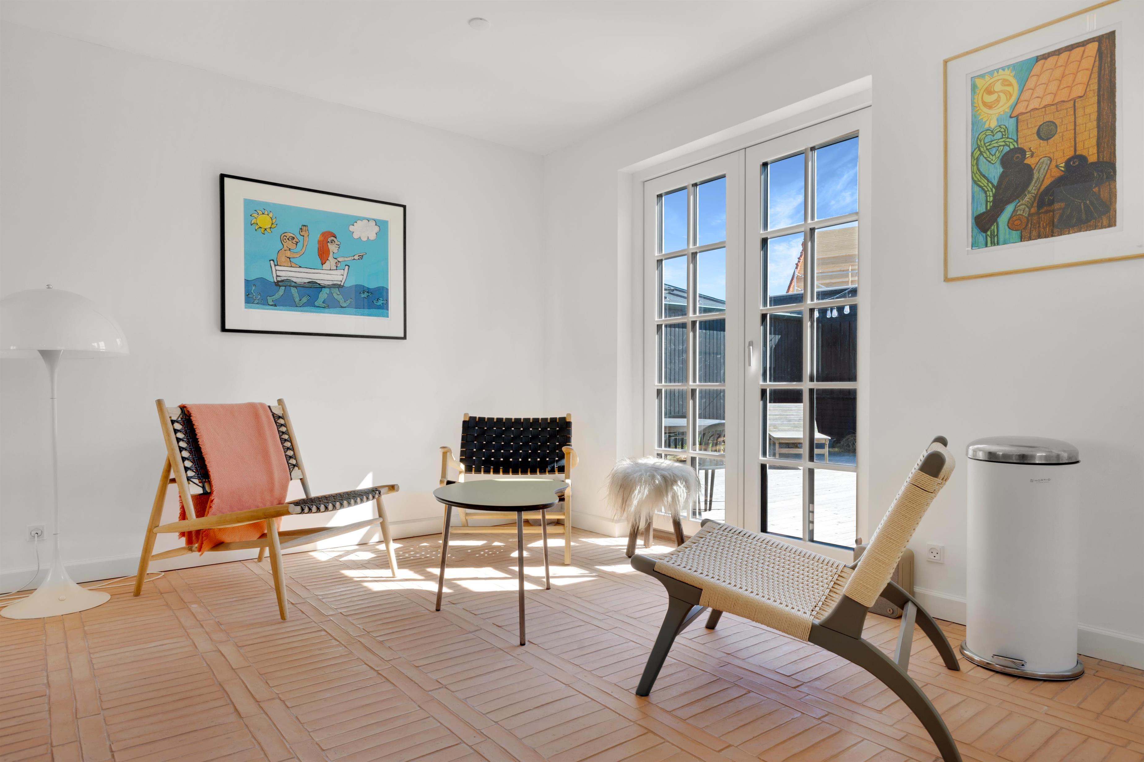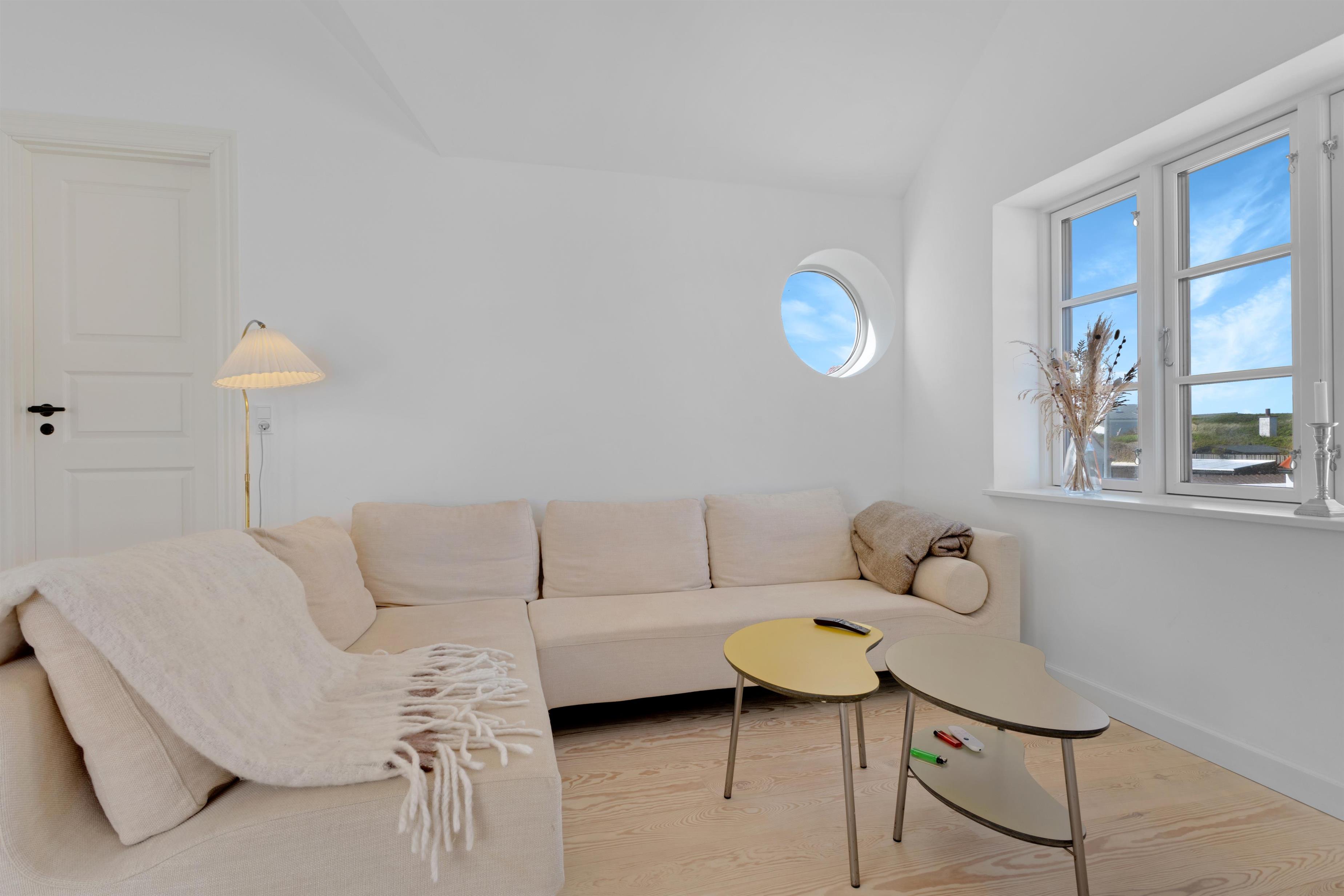 Charmerende sommerhus i Løkken, 100 meter fra stranden med hyggeligt opholdsrum og privat terrasse.