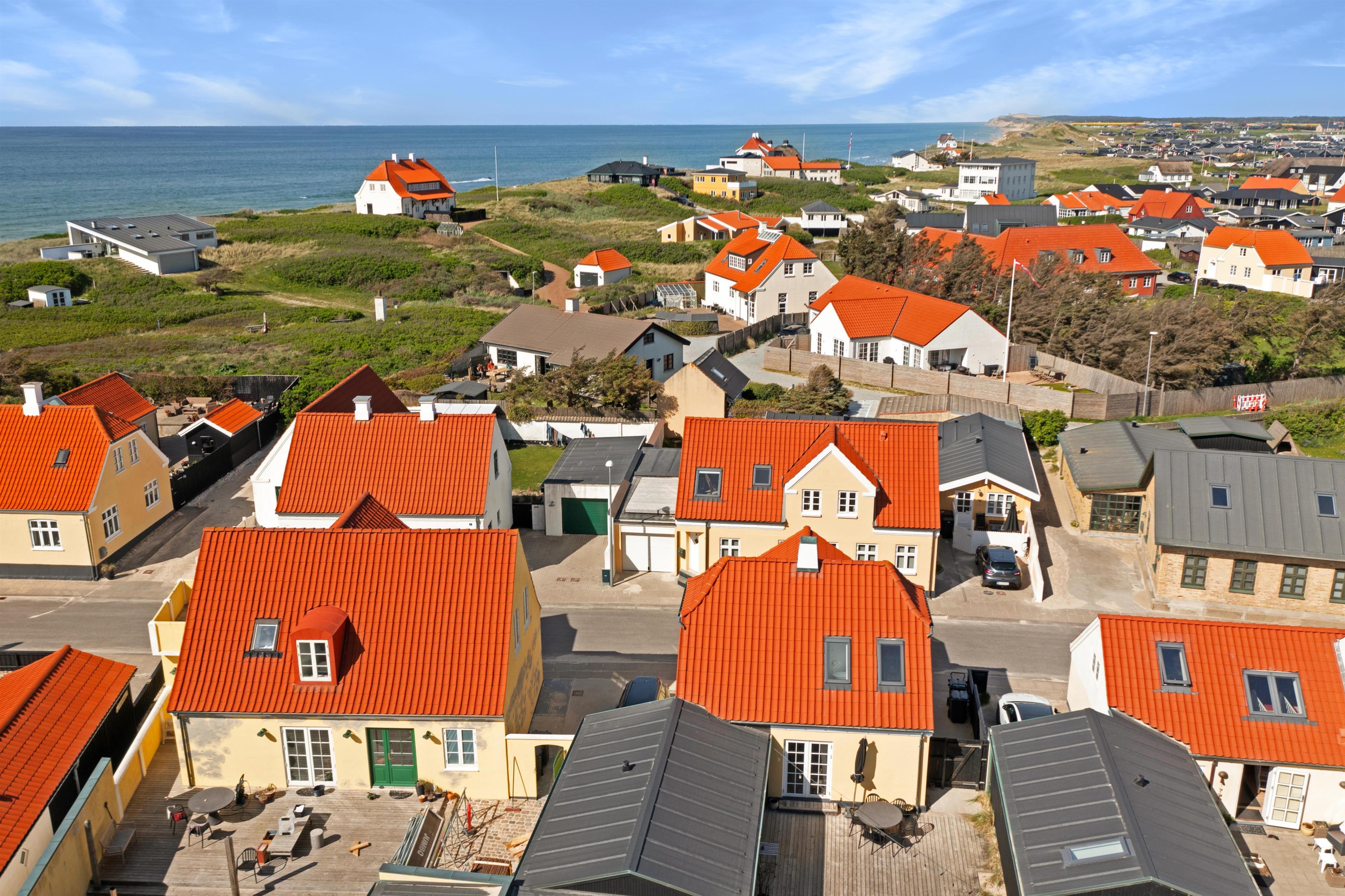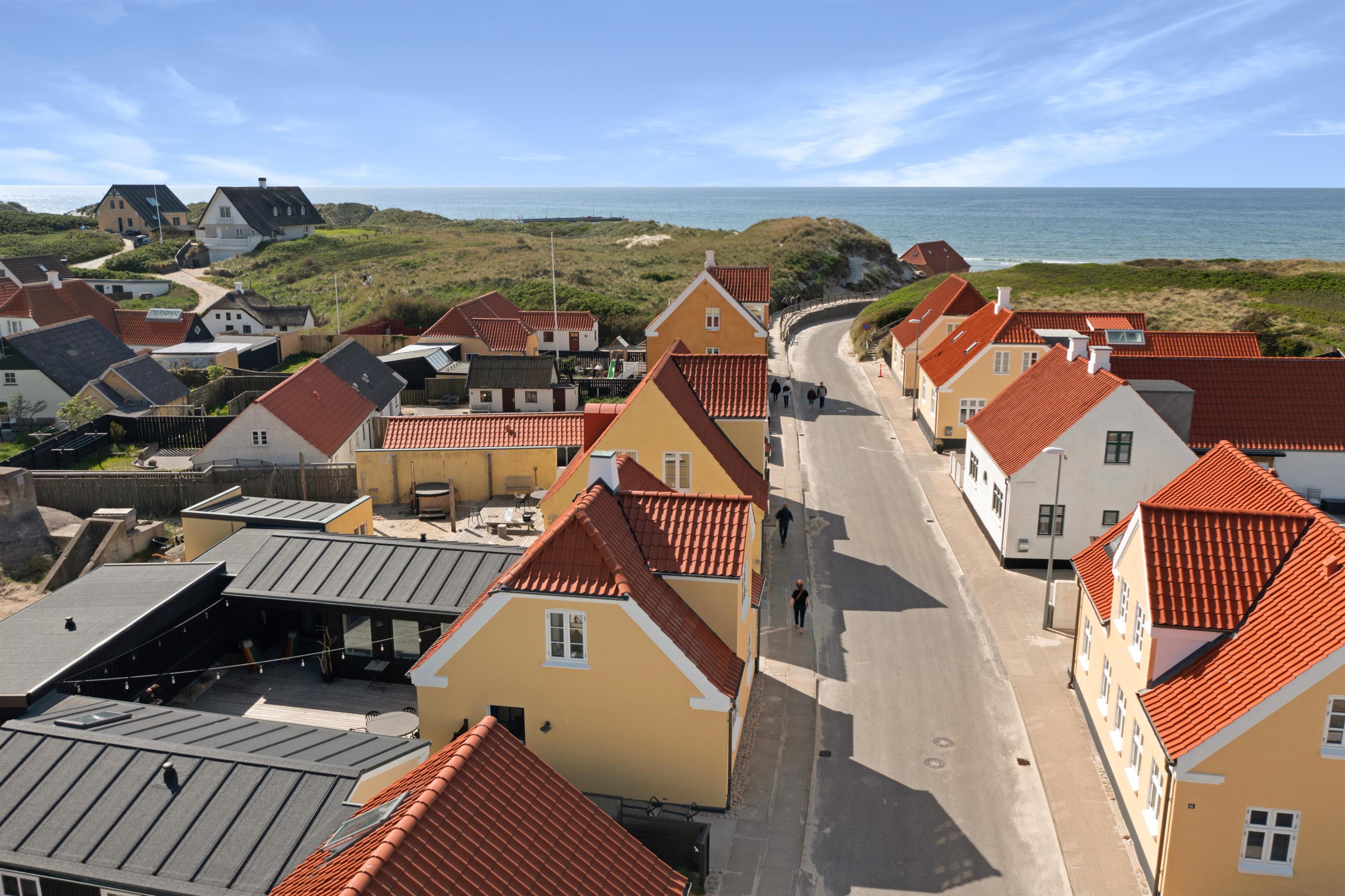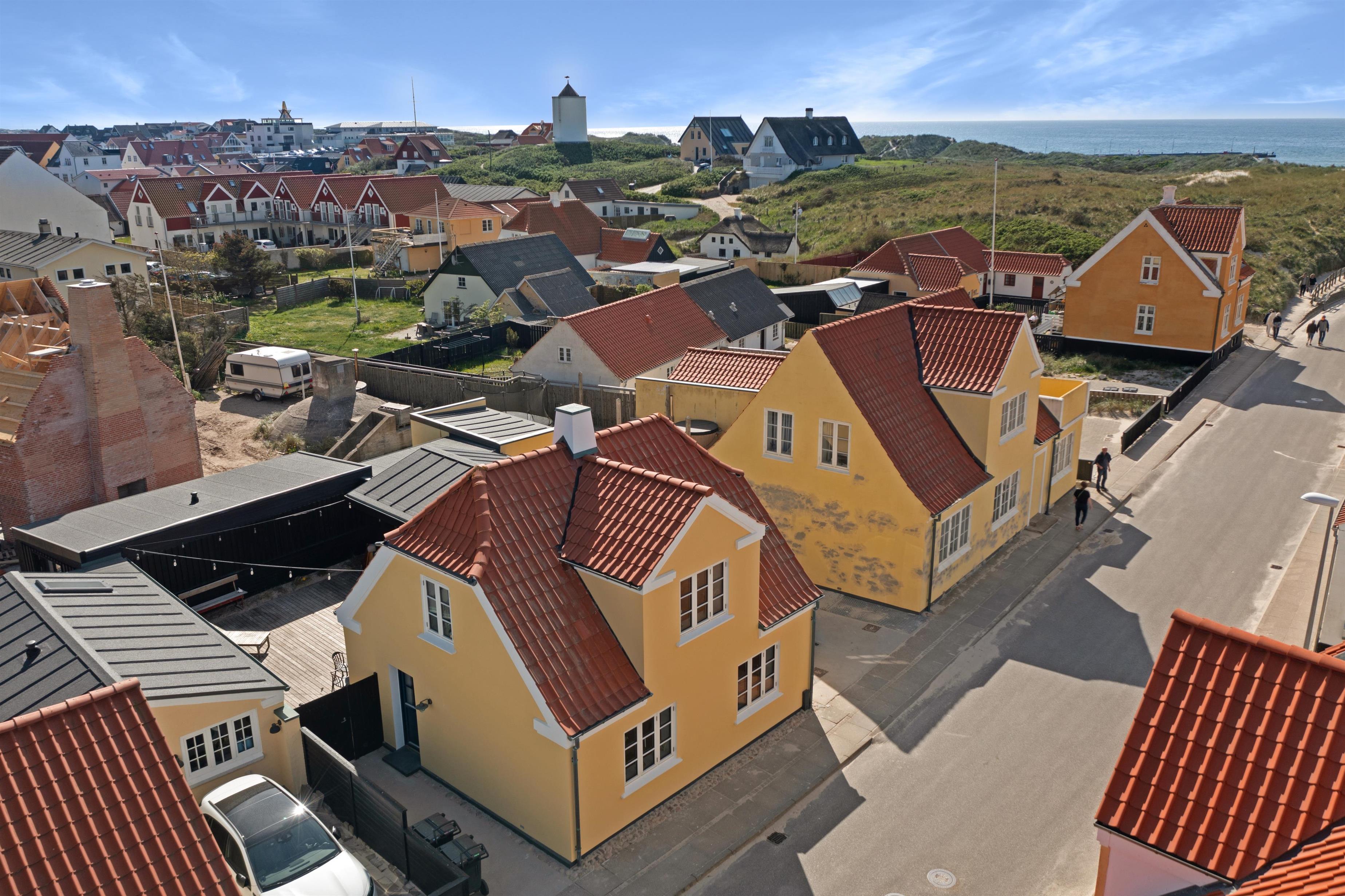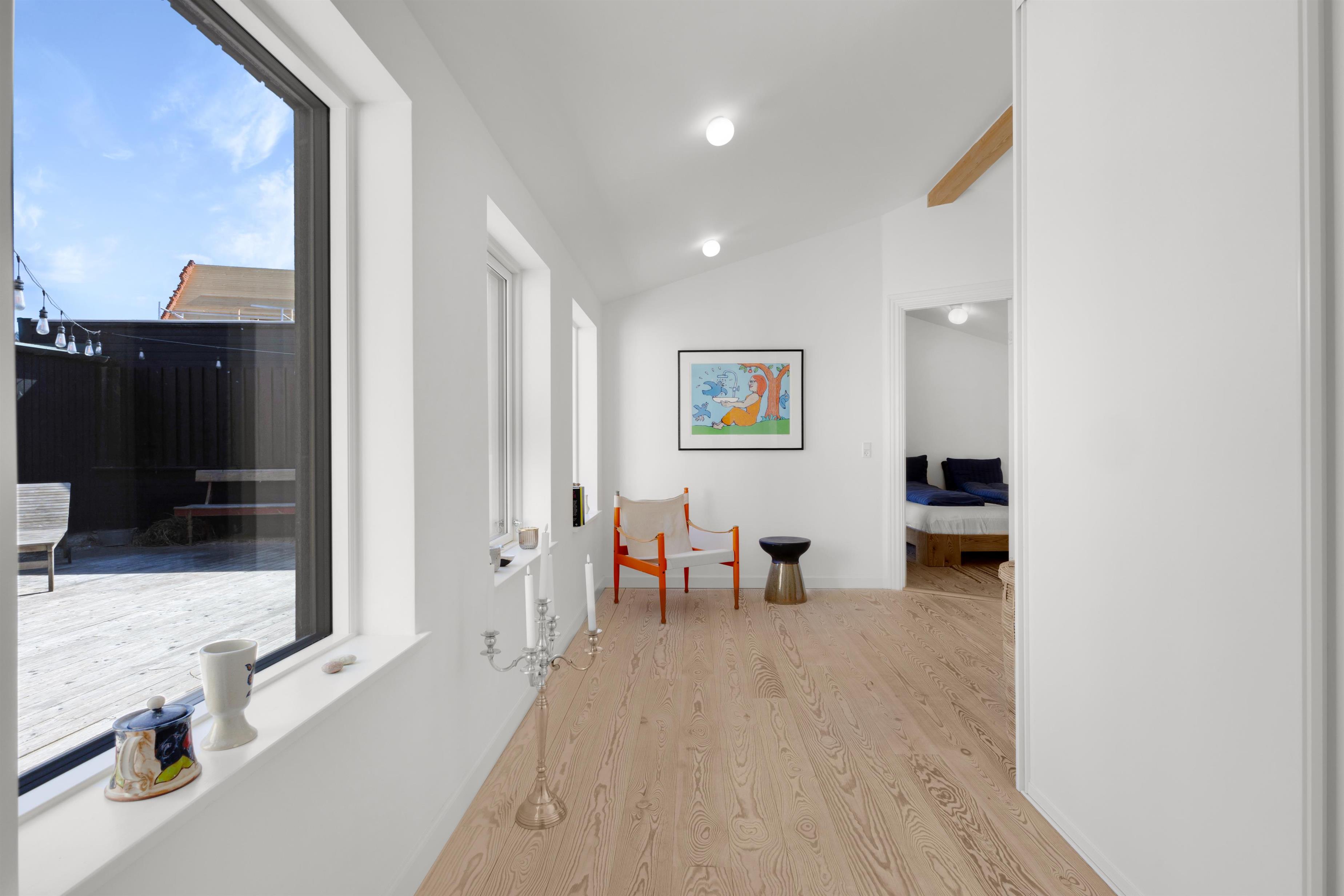Foruden at ligge 100 meter fra stranden og midt i centrum, finder du indendørs først den super charmerende trappeopgang og entre. Dernæst et rigtig lækkert og hyggeligt opholdsrum med lyst og åbent køkken, alrum og stue. Selve indretningen af hele huset indbyder til både fælles og individuelle aktiviteter - fra hygge- og fjernsynshjørner til det indbydende loungeområde på 1. sal. Der er ligeledes et dejligt udendørs loungeområde i form af den solbeskinnede terrasse, som vender bort fra selve Nordre Strandvej og som er dejlig privat. I sommerhuset er der plads til 6+1 personer.