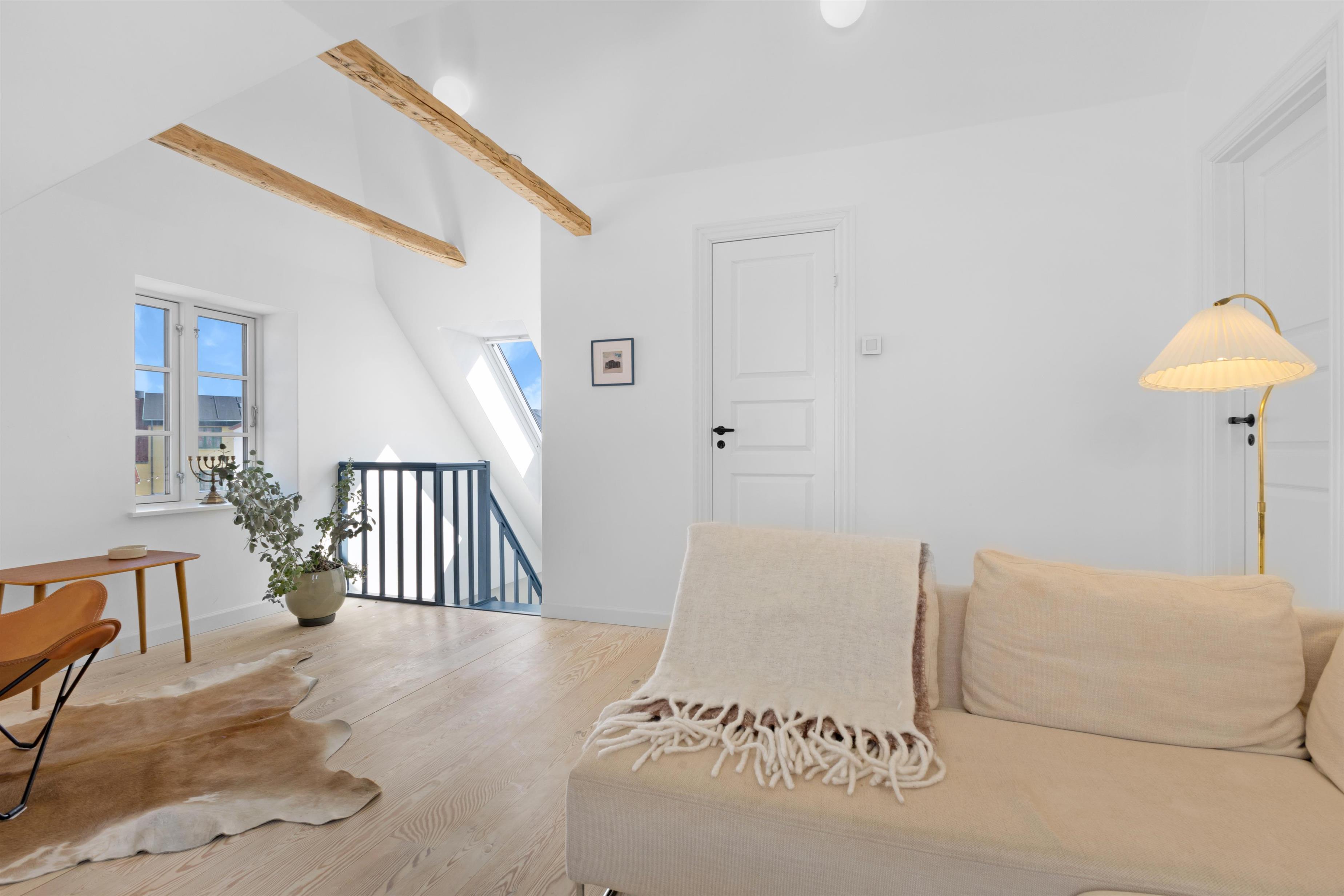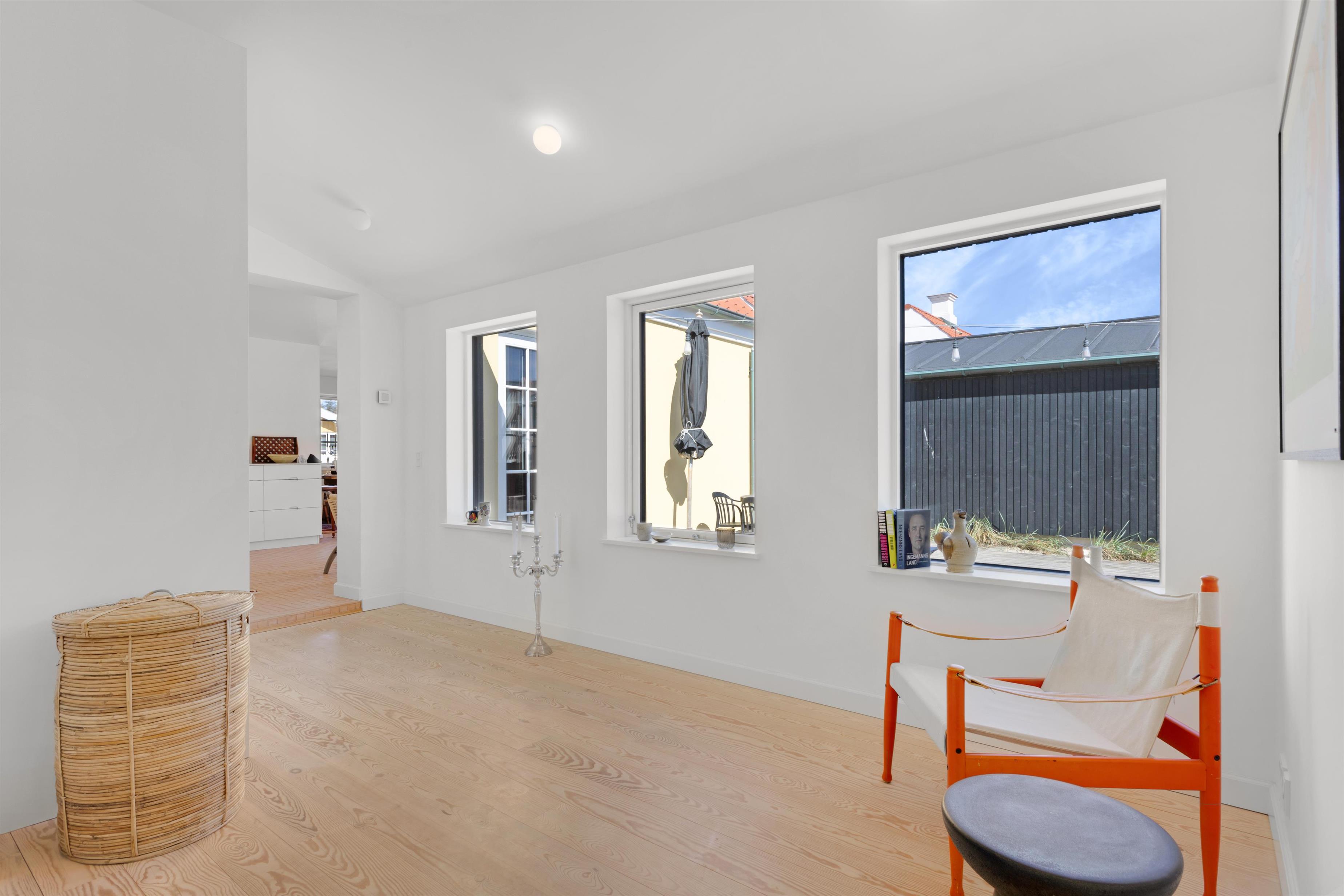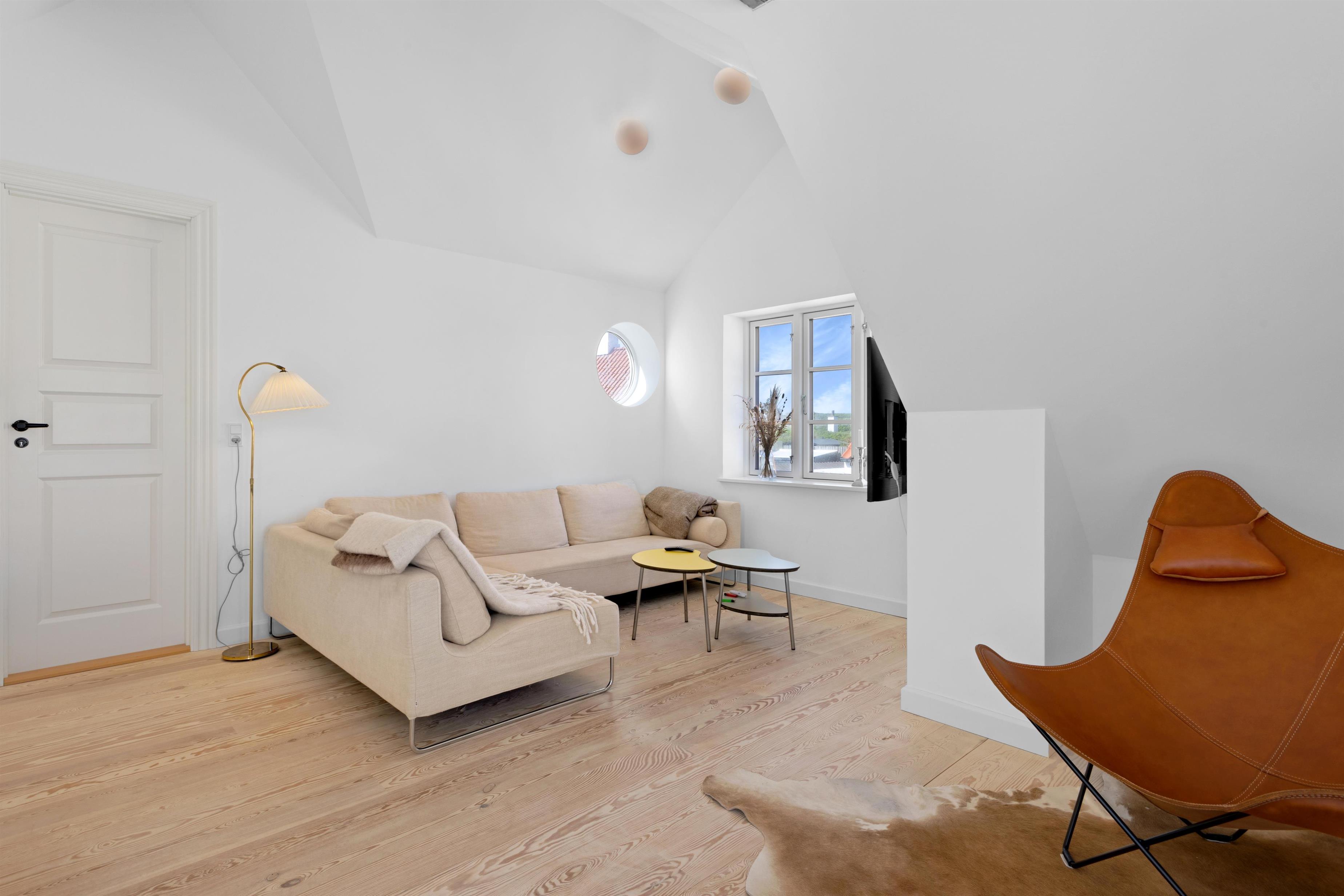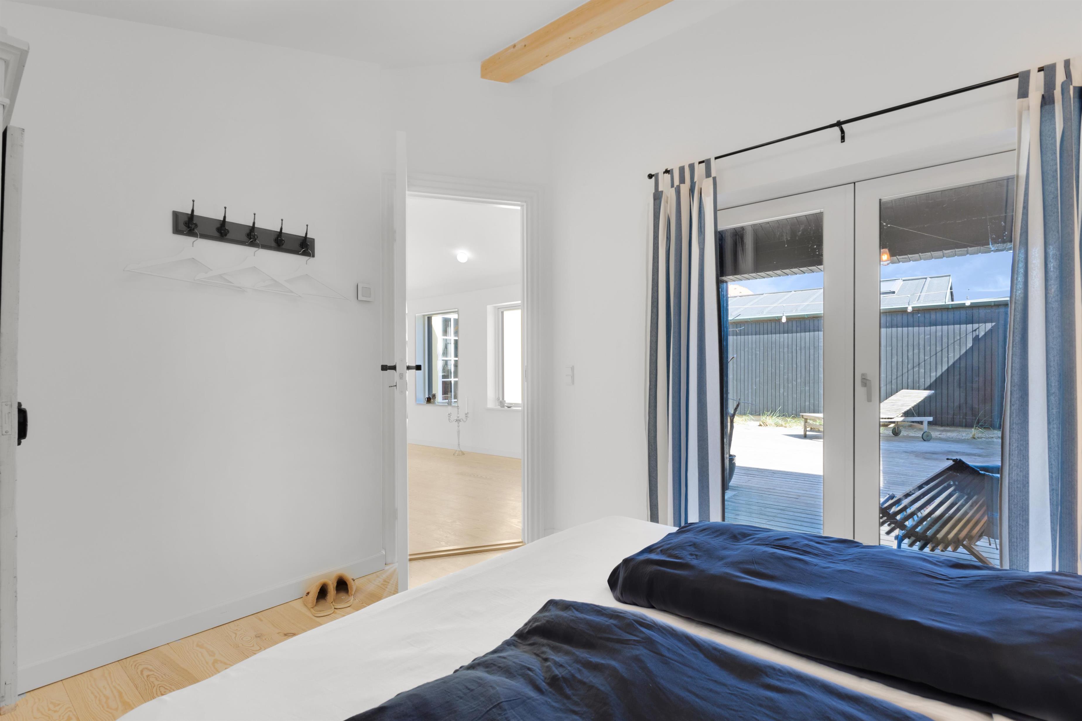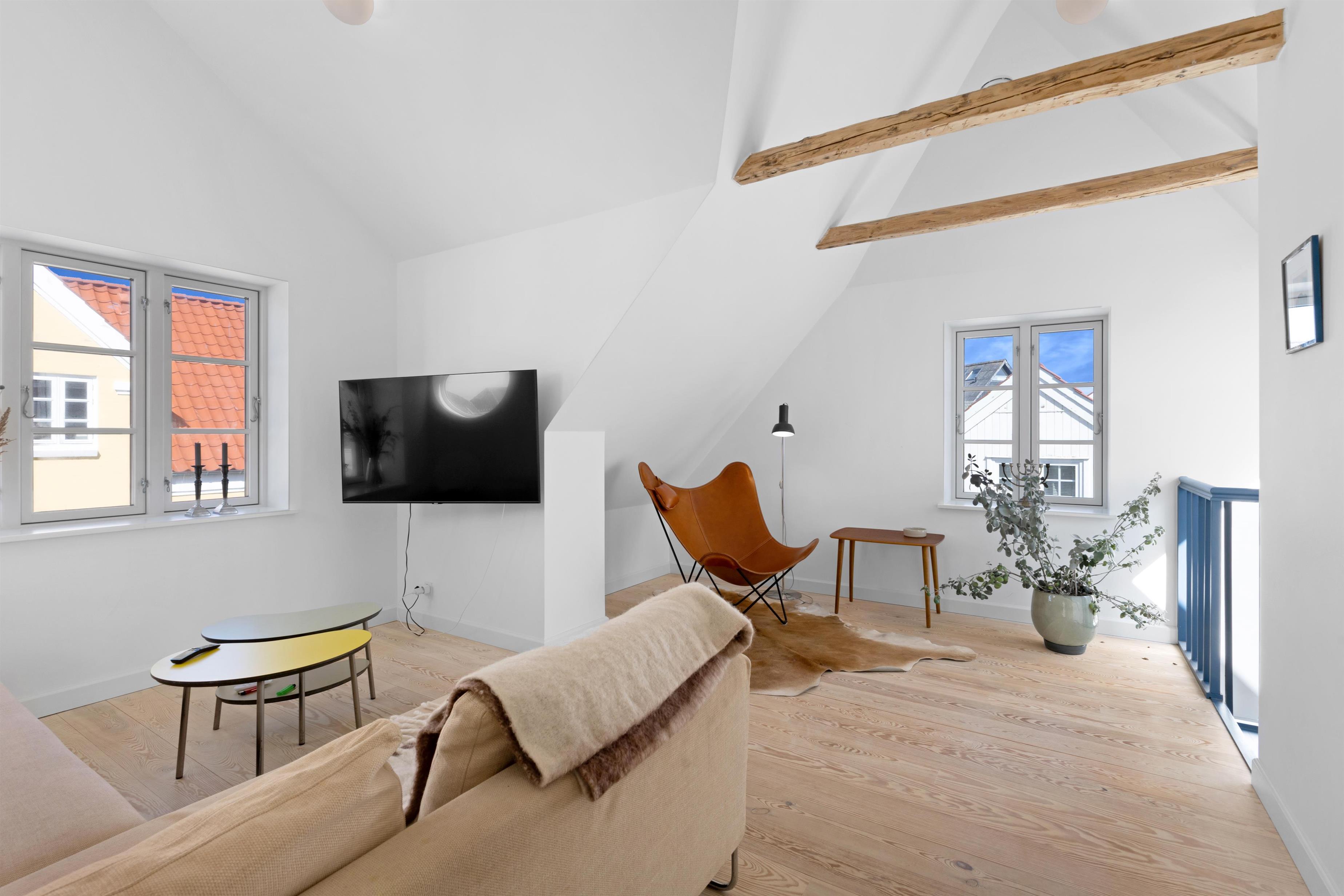 Foruden at ligge 100 meter fra stranden og midt i centrum, finder du indendørs først den super charmerende trappeopgang og entre. Dernæst et rigtig lækkert og hyggeligt opholdsrum med lyst og åbent køkken, alrum og stue. Selve indretningen af hele huset indbyder til både fælles og individuelle aktiviteter - fra hygge- og fjernsynshjørner til det indbydende loungeområde på 1. sal. Der er ligeledes et dejligt udendørs loungeområde i form af den solbeskinnede terrasse, som vender bort fra selve Nordre Strandvej og som er dejlig privat. I sommerhuset er der plads til 6+1 personer.