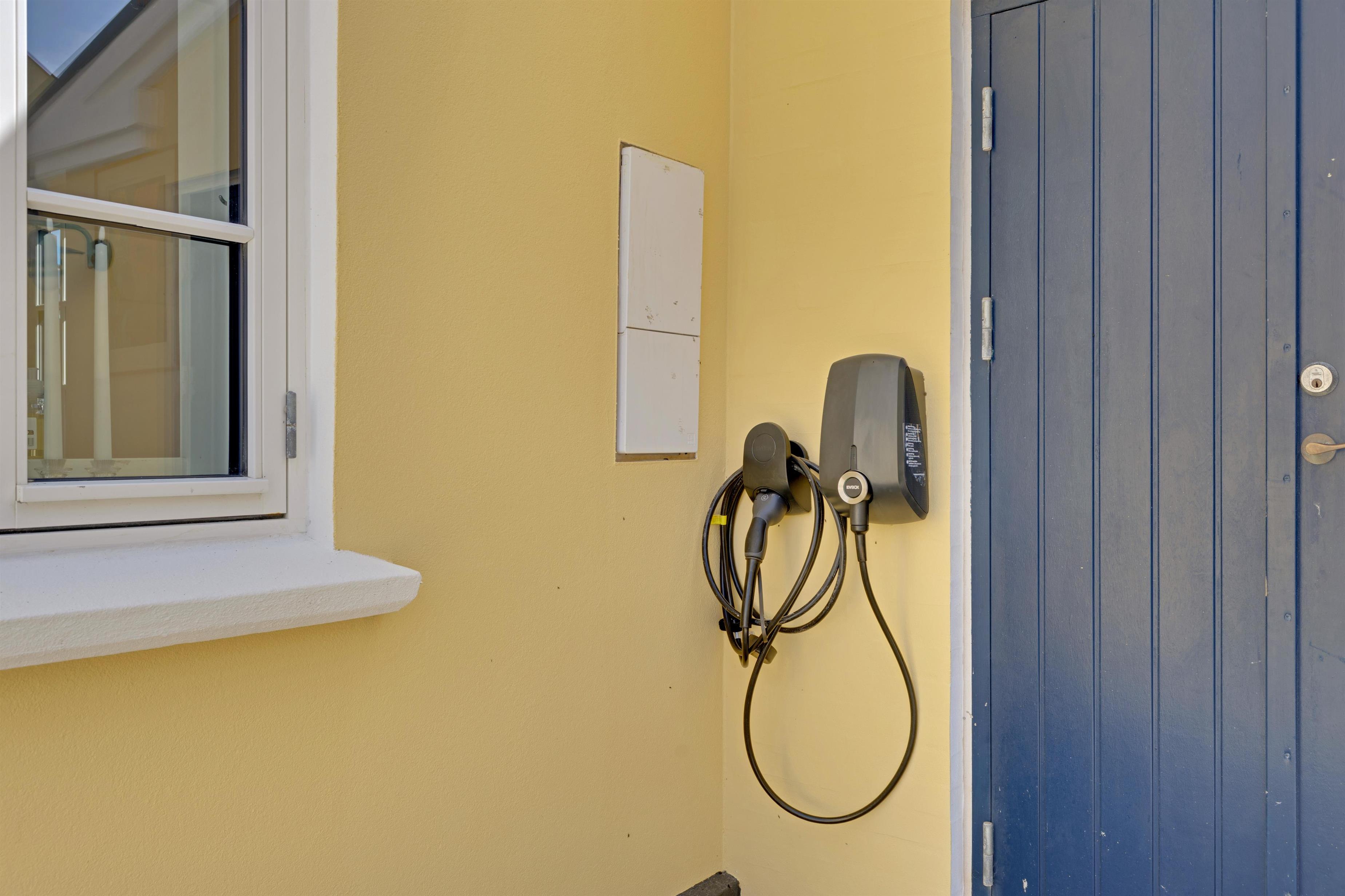 Og hvis du kører i elbil, er der ladestander i indkørslen! Der er også to cykler til rådighed.