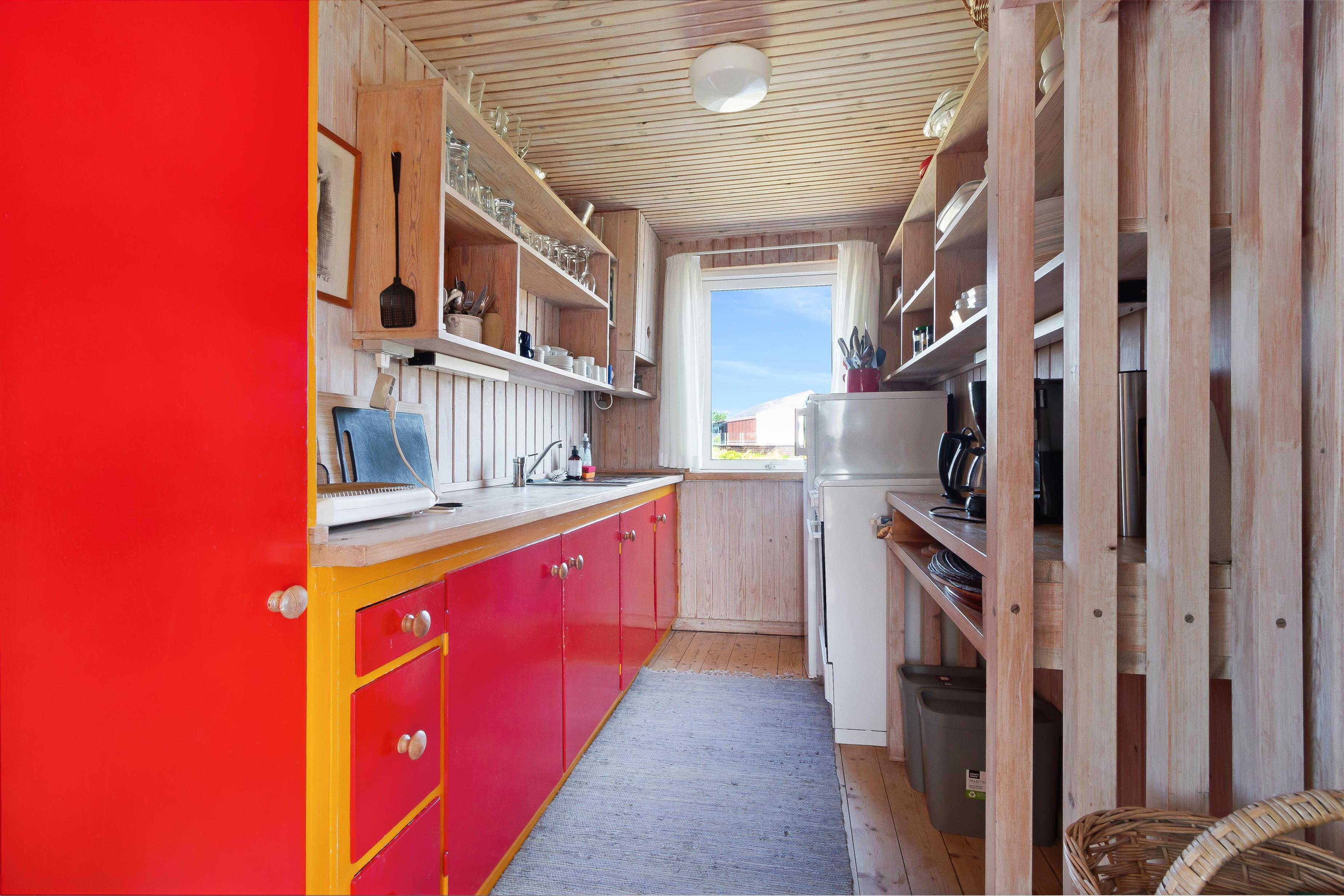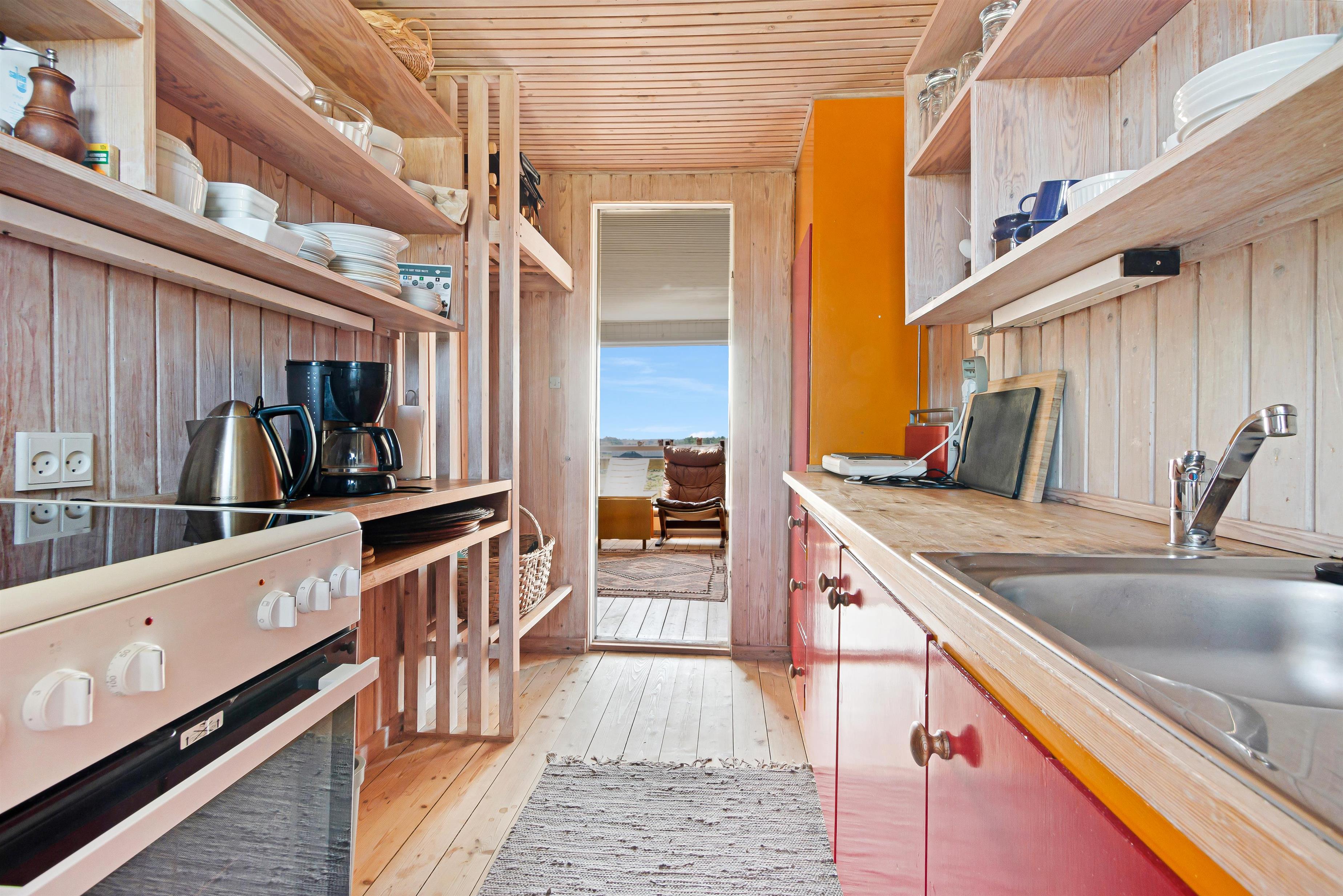 Et hyggeligt lille hus fra 1958. Der er blevet installeret en varmepumpe, så det er varmt og behageligt at opholde sig i huset, selv om vinteren. Her finder du alt, hvad du behøver for at få en god ferie: komfortable senge, et veludstyret køkken og en hyggelig og lys stue med fantastisk udsigt mod syd over området og havet mod vest. Der er udendørs møbler og en solrig terrasse mod øst og syd. Når du er i huset, kan du nyde den fantastiske panoramaudsigt over himlens skyer, der konstant skifter form og farve.