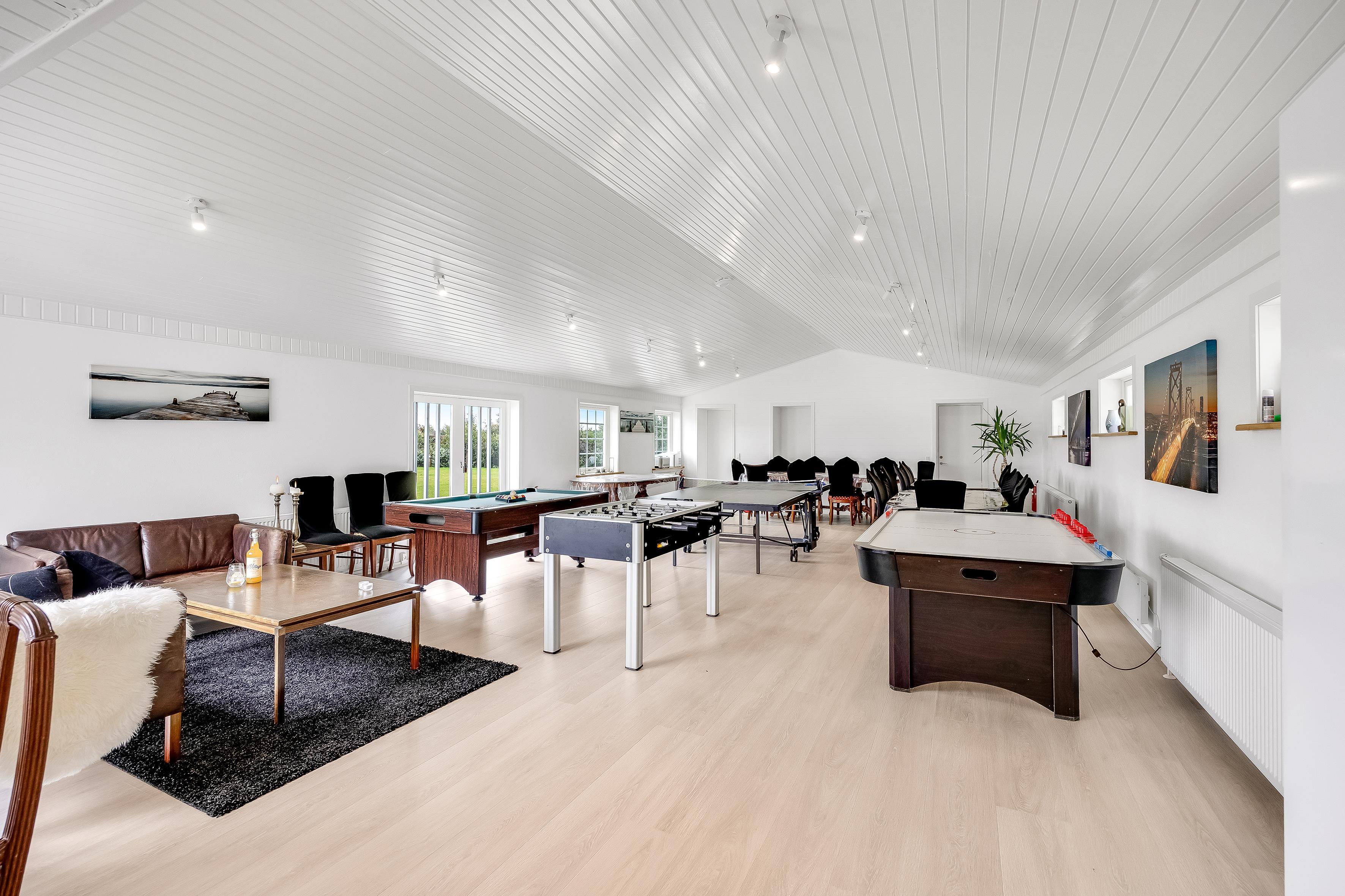 Aktivitetsrummet er et naturligt samlingspunkt, hvor du kan slå dig løs med TV, pool, fodboldbord, airhockey og bordtennis – så her er ingen risiko for at kede sig. Den store, aflukkede have er oplagt til leg og afslapning for både børn, voksne og hunde. Boligen er smukt placeret i åbent marklandskab med udsigt mod Rubjerg Knude Fyr mod nordvest og Børglum Kloster mod sydøst. Samtidig er der kort afstand i bil eller på cykel til både Løkken, Lønstrup, indkøbsmuligheder og Vesterhavet.