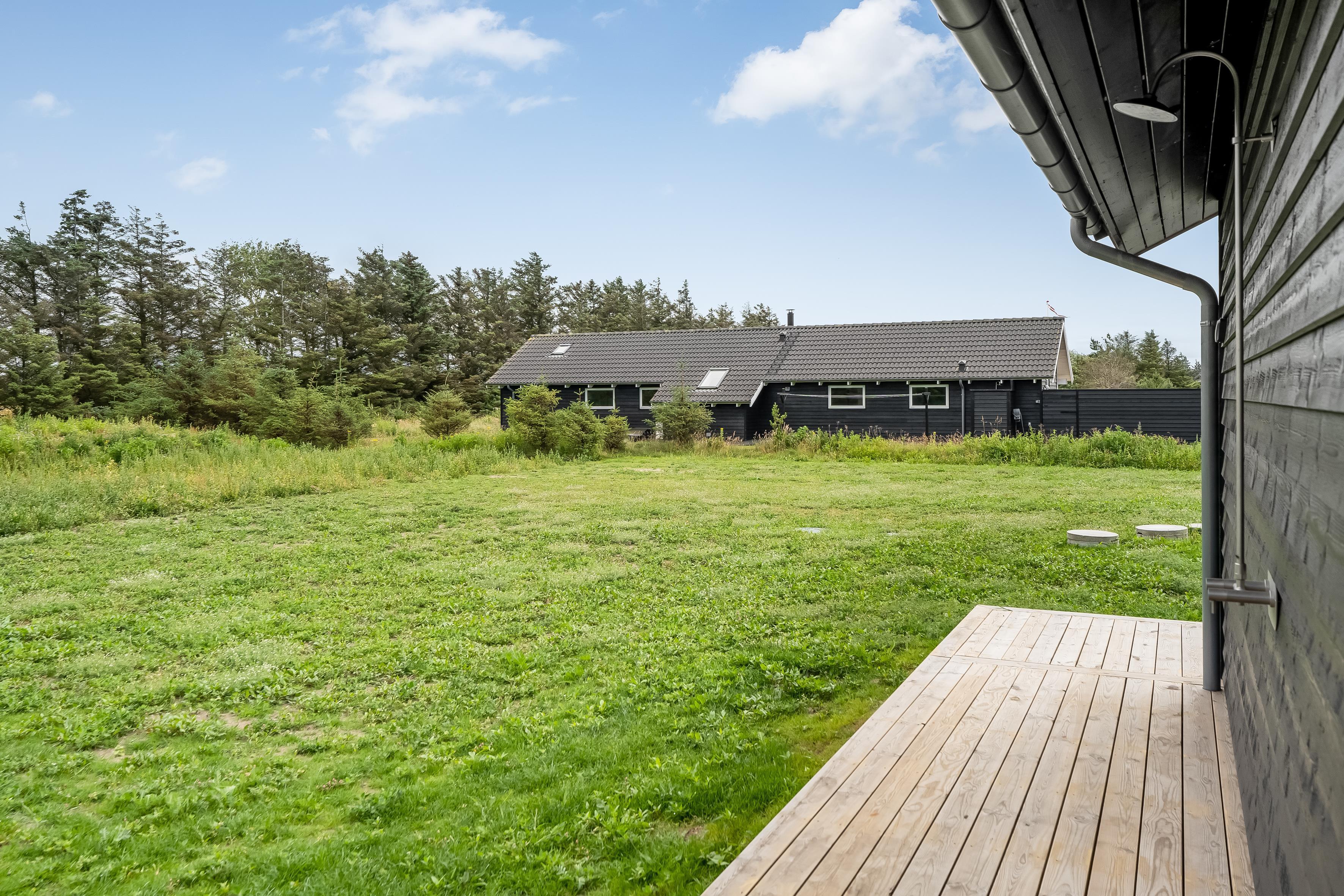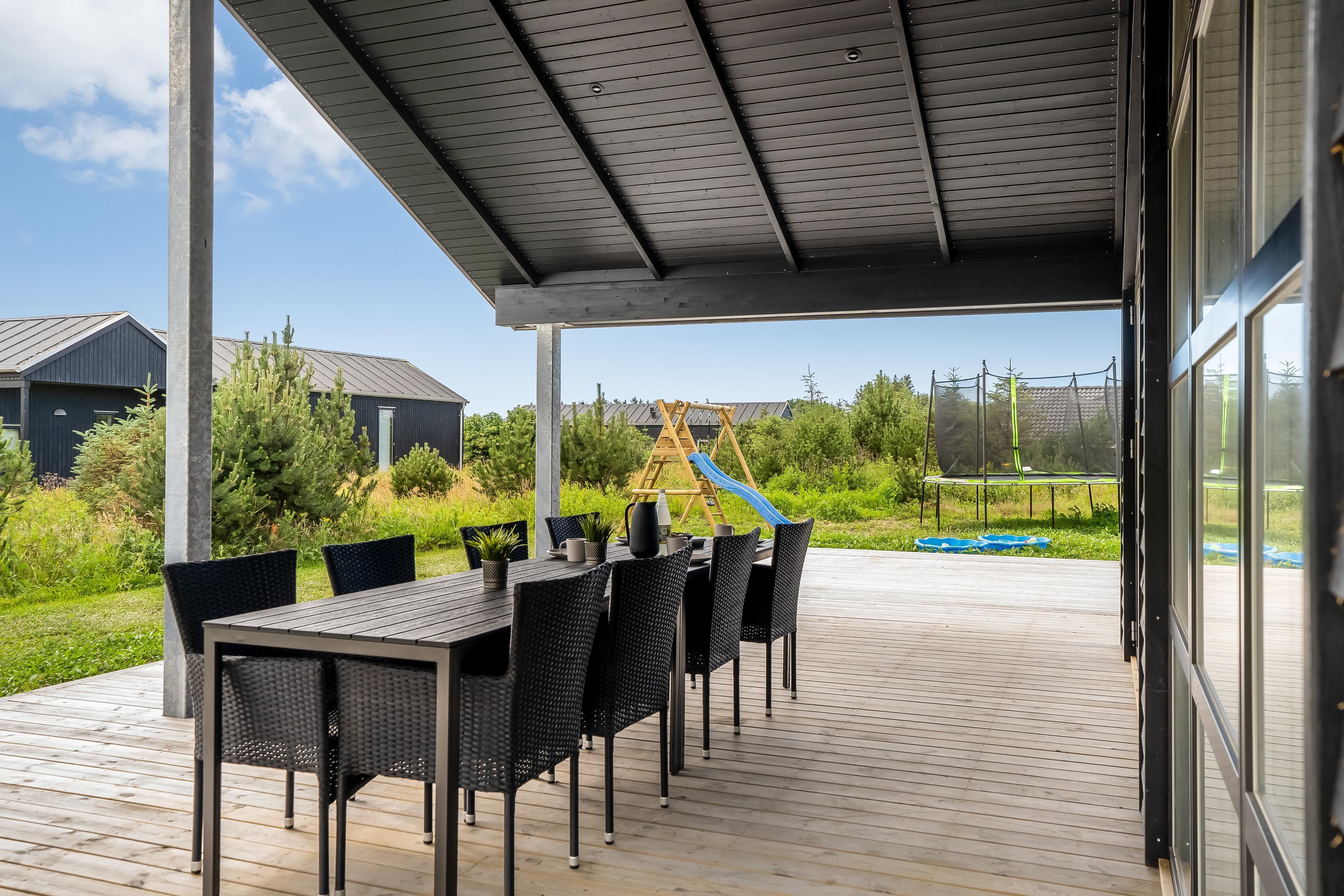 Udelivet omkring huset er mindst lige så attraktivt som det indendørs. Den store træterrasse løber hele vejen rundt om huset og giver dig mulighed for at finde sol, skygge eller læ i løbet af dagen. Her kan du nyde morgenkaffen i fred og ro, tage et solbad eller forkæle dig selv med et glas koldt på varme dage.