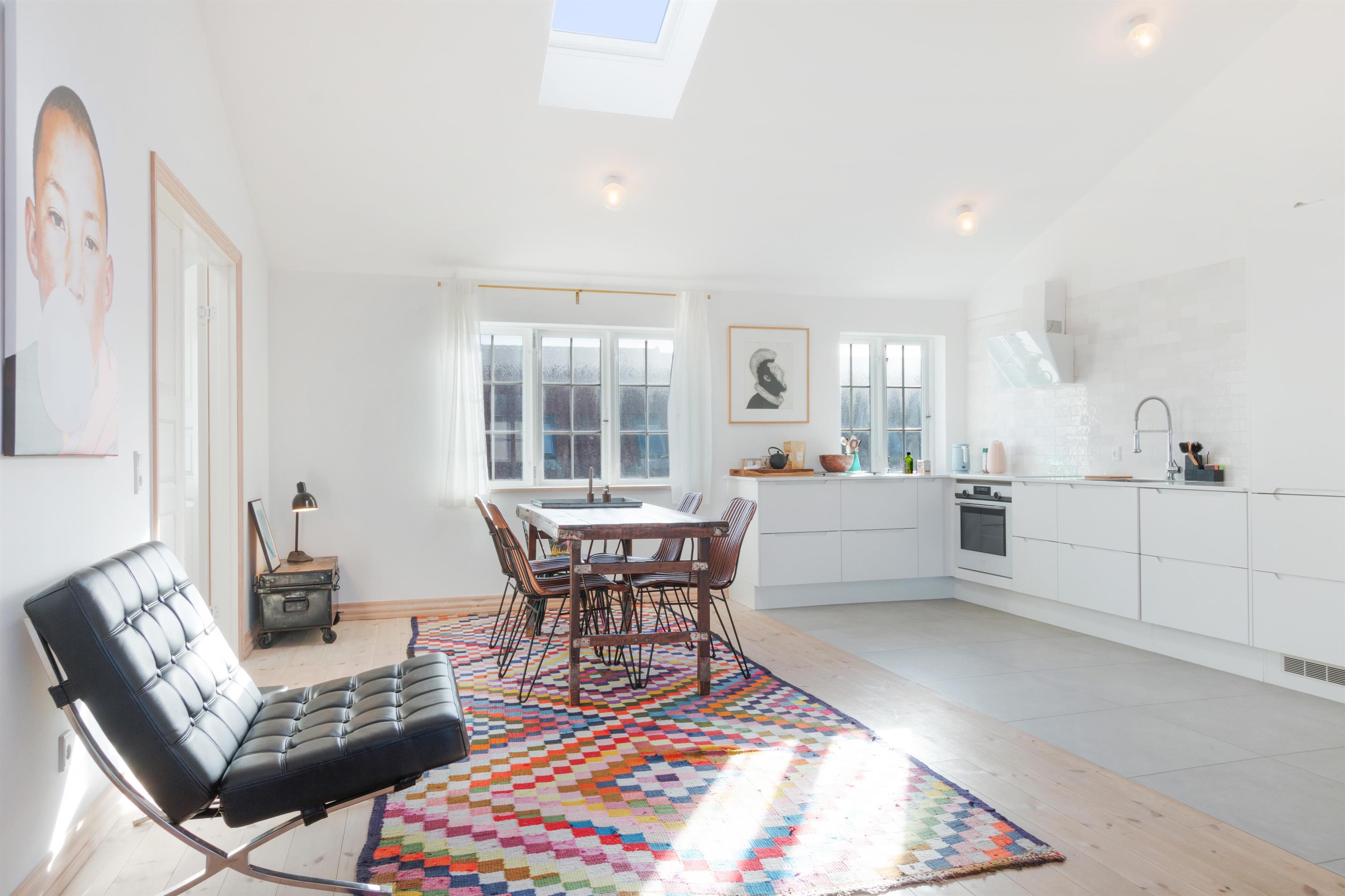..men her er dog et udpluk. Du kan tilgå lejligheden fra bygningens bagtrappe og dermed er der ingen til at holde øje med, om du kommer sent i seng. Der er to soverum, og de rummer hver især en dobbeltseng. Der er ingen wifi - her er zen og ro. Det er tilladt at medbringe en lille hund. Der er et enkelt badeværelse med de skønneste, blå klinker. Der er åbent køkken/alrum og dermed rig lejlighed for at komme hinanden ved, og forbrug er inkluderet i lejen. Ferielejligheden er røgfri og ungdomsgrupper er ikke tilladt.