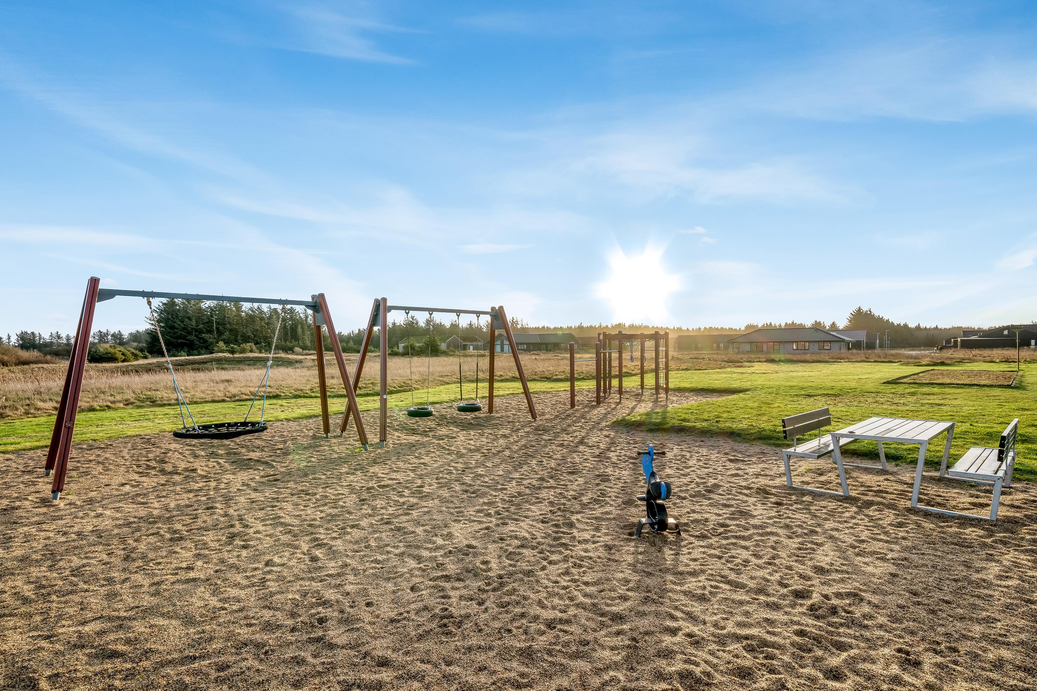 Haven og terrassen inviterer til både afslapning og aktivitet uanset tidspunktet på dagen. Med det store terrasseområde, herunder en overdækket del, er det let at finde læ og sol. Der er en skøn udespa samt udebruser, og der er en strategisk placeret vold ved huset, så man kan solbade i fred. Her er god plads til leg og hygge, og fra huset er der kort afstand til både strand, by og indkøb – alt ligger inden for cirka en kilometers radius.