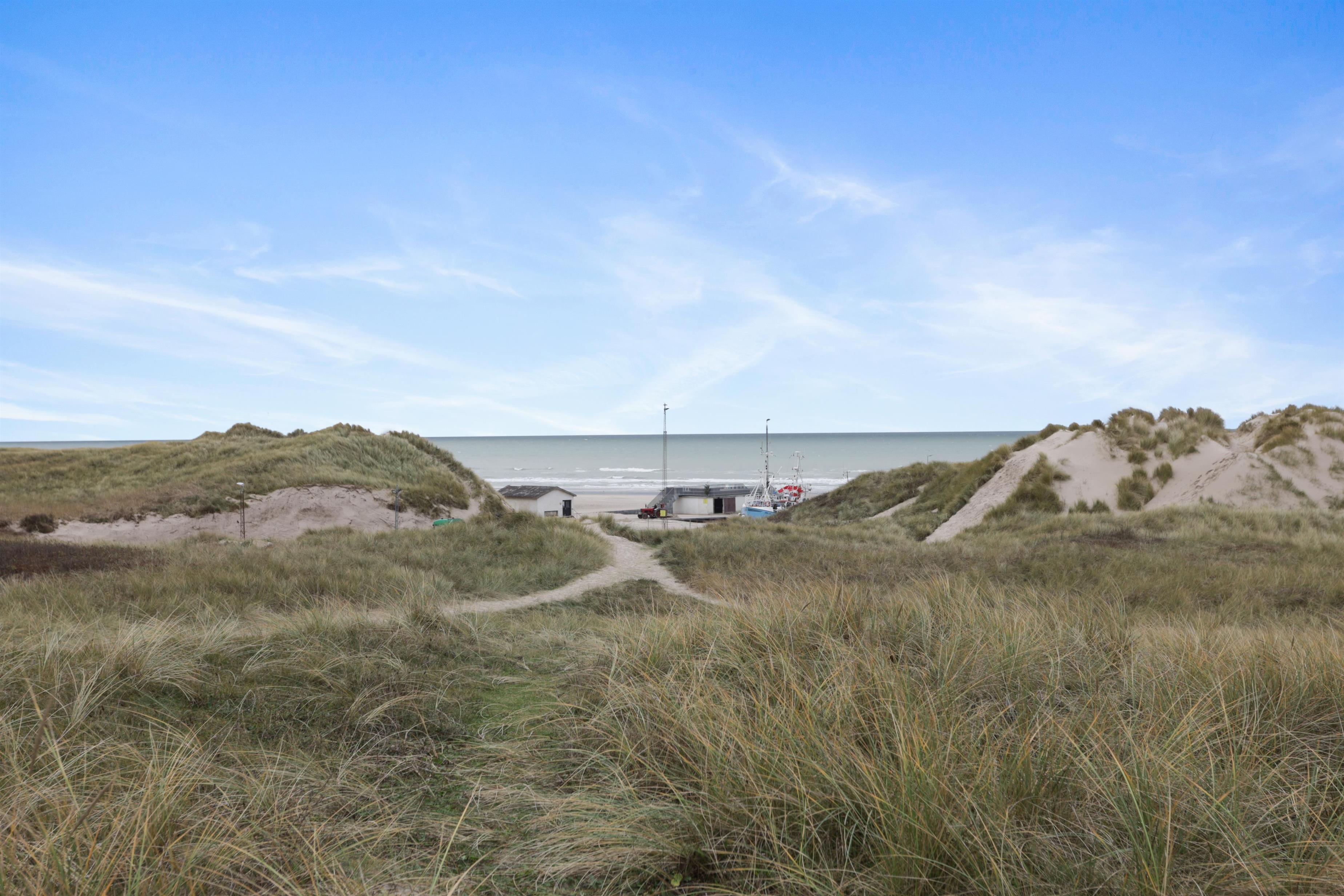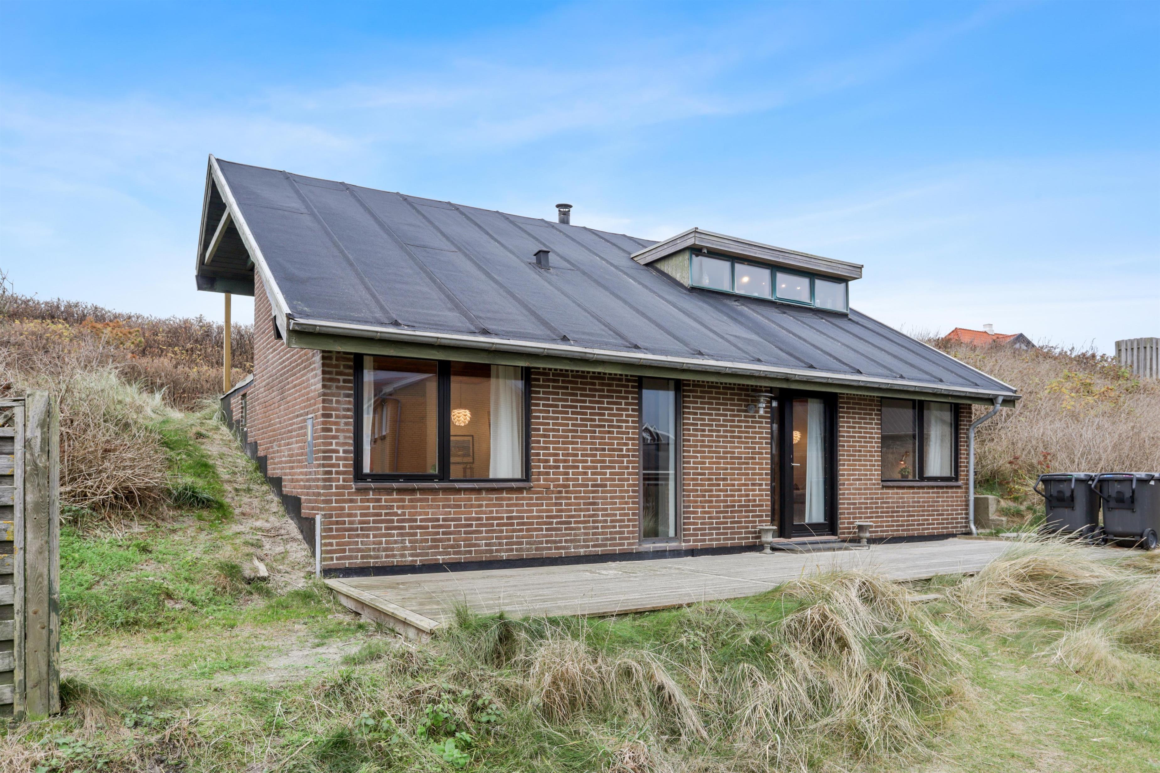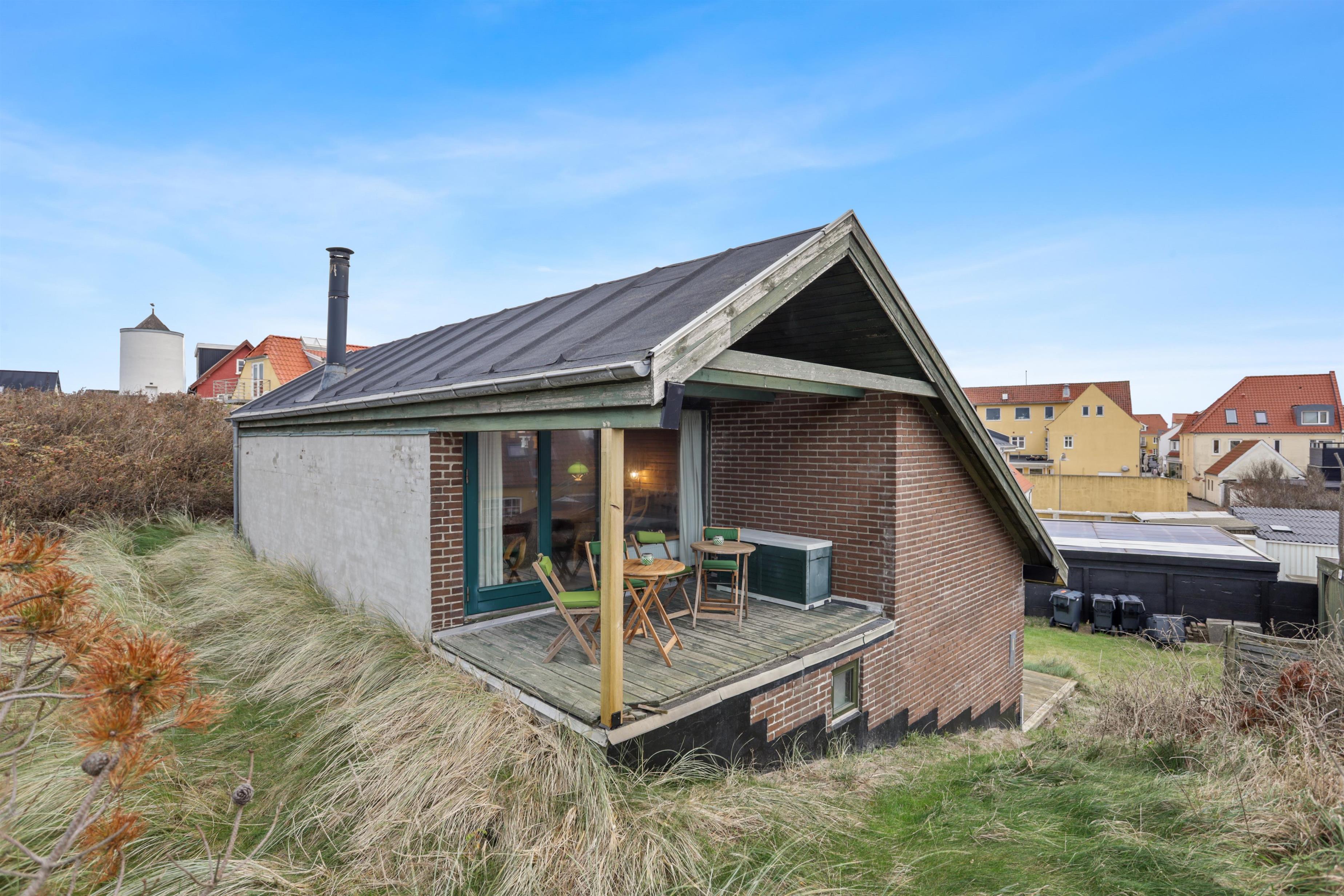 For at tilgå sommerhuset skal du ind mellem to af Løkkens populære restaurationer. Derfor får du umiddelbart stemningen af ferie og liv, mens du kan trække dig tilbage, når afslapningen kalder. På en varm sommeraften føles det som at være sydpå med det summende lydtæppe af mennesker, hygge og vesterhavets brusen. Huset er bygget ind i klitten og byder på to skønne terrasser, hvorfra solen kan nydes i fulde drag. Vi anbefaler at parkere på den store parkeringsplads på torvet, da det er smalt at køre ind mellem de to restaurationer. Terrænet er smukt og kuperet, og egner sig ikke til ustabilt gående.