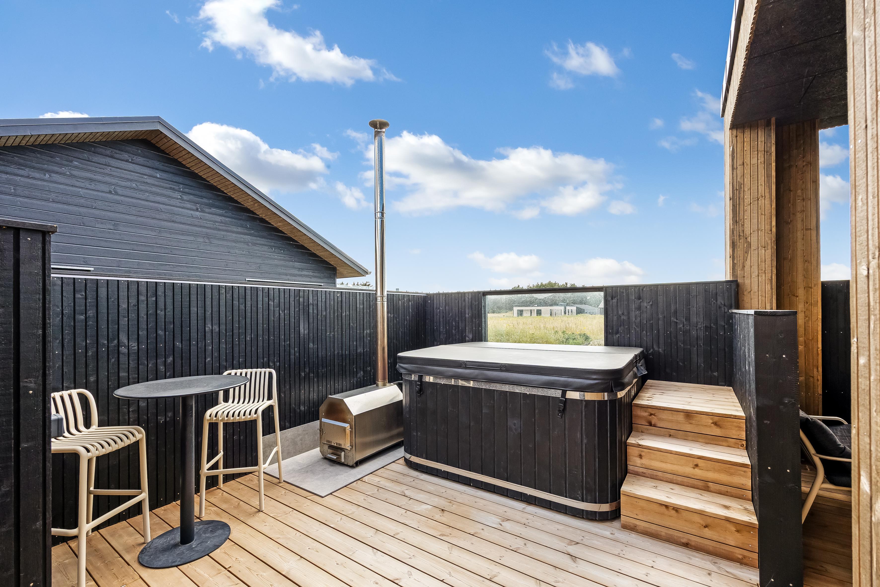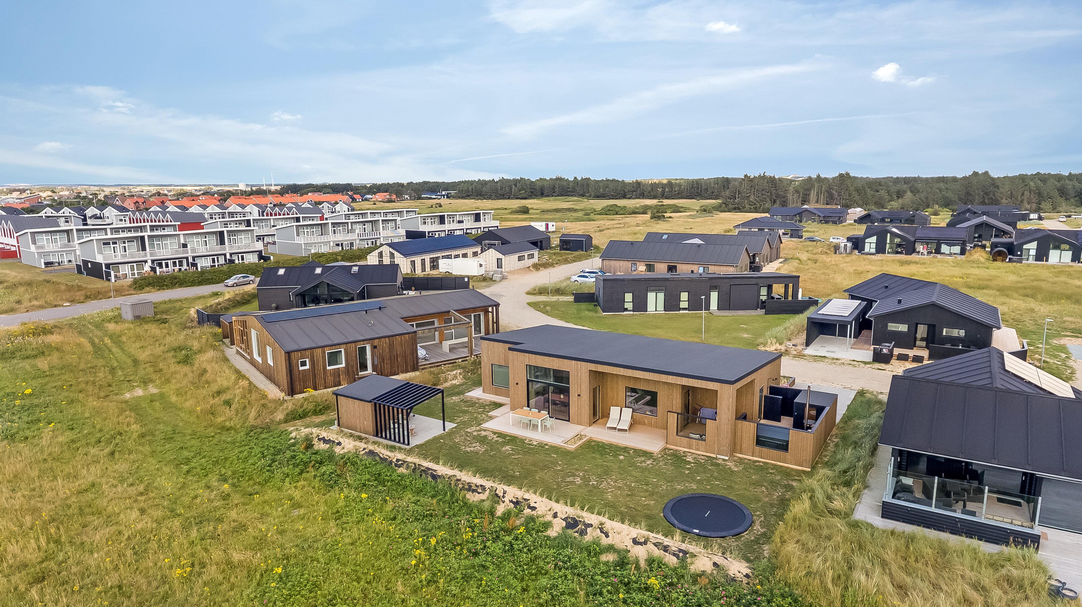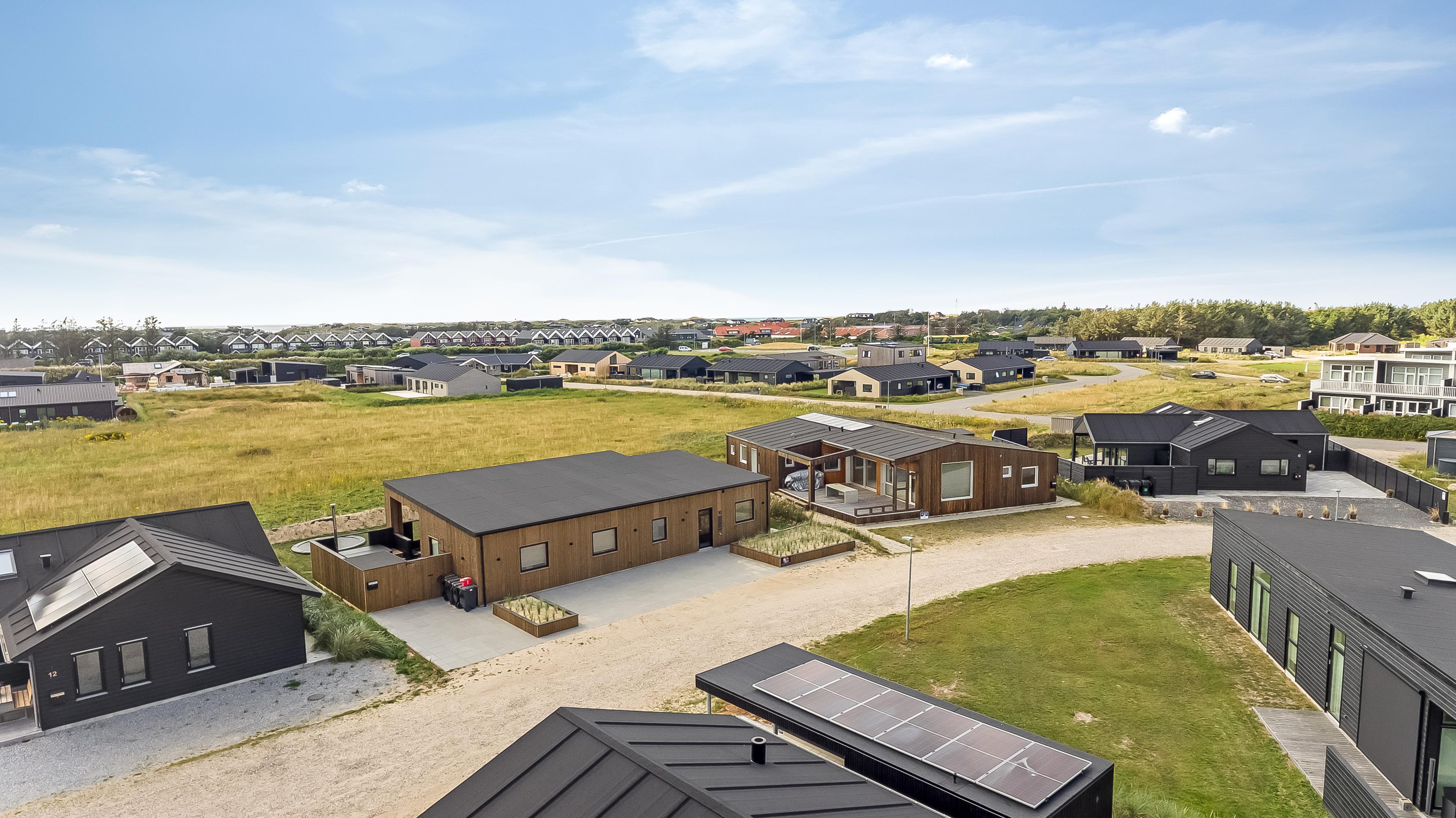 Nybygget sommerhus i Løkken med plads til 8, spa, flere terrasser og kort afstand til strand og by.