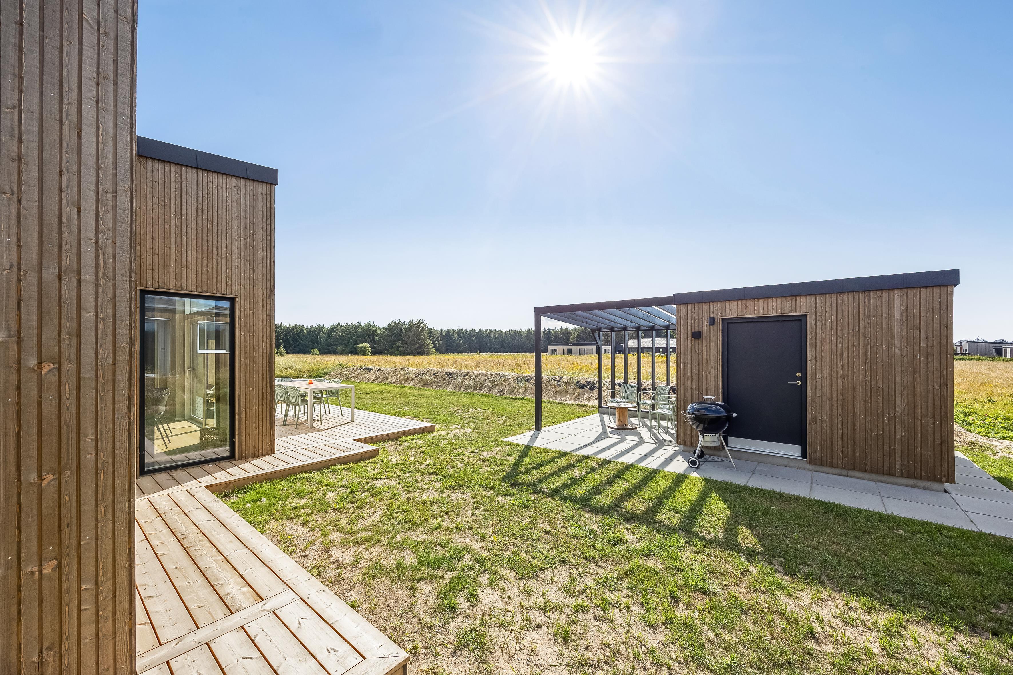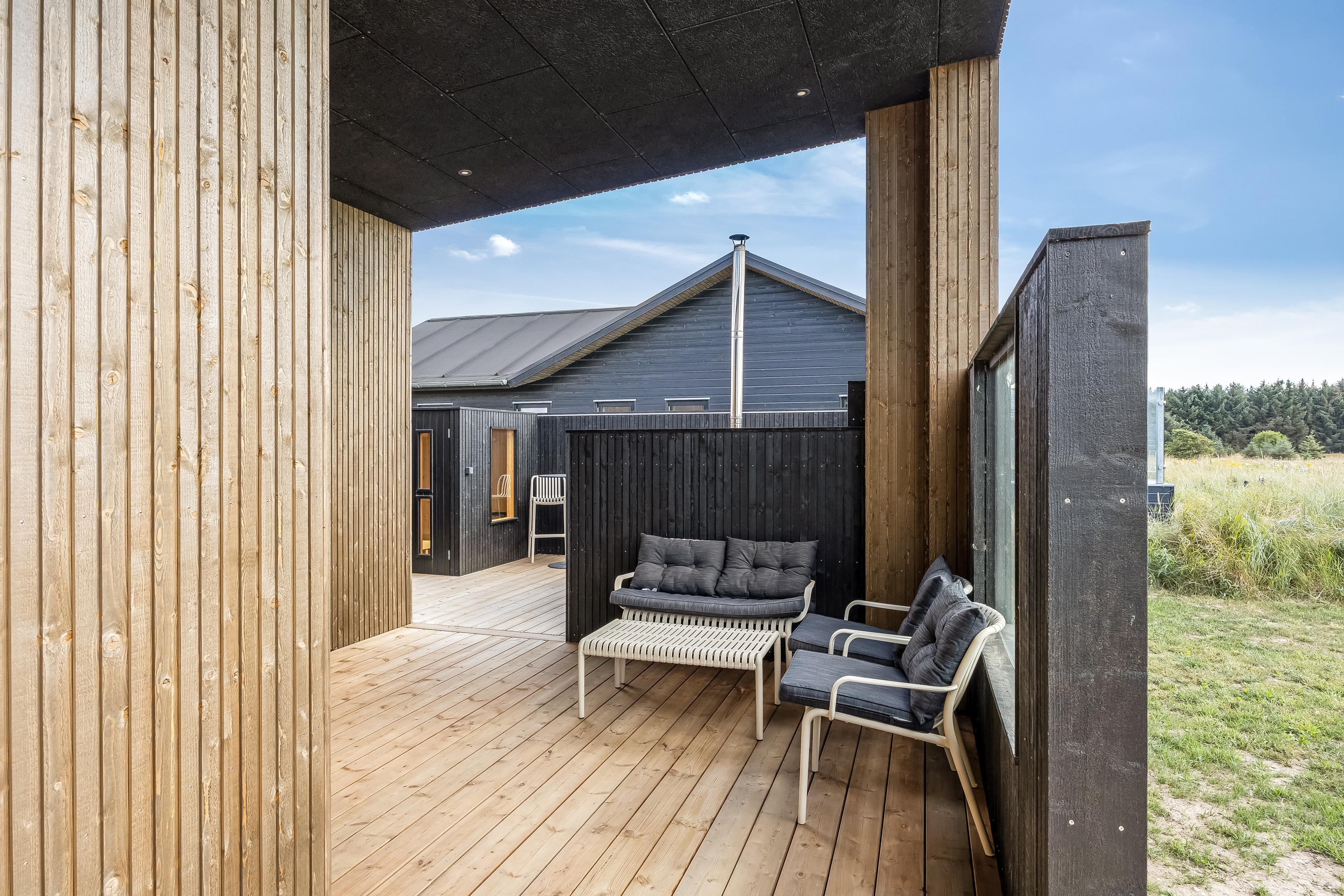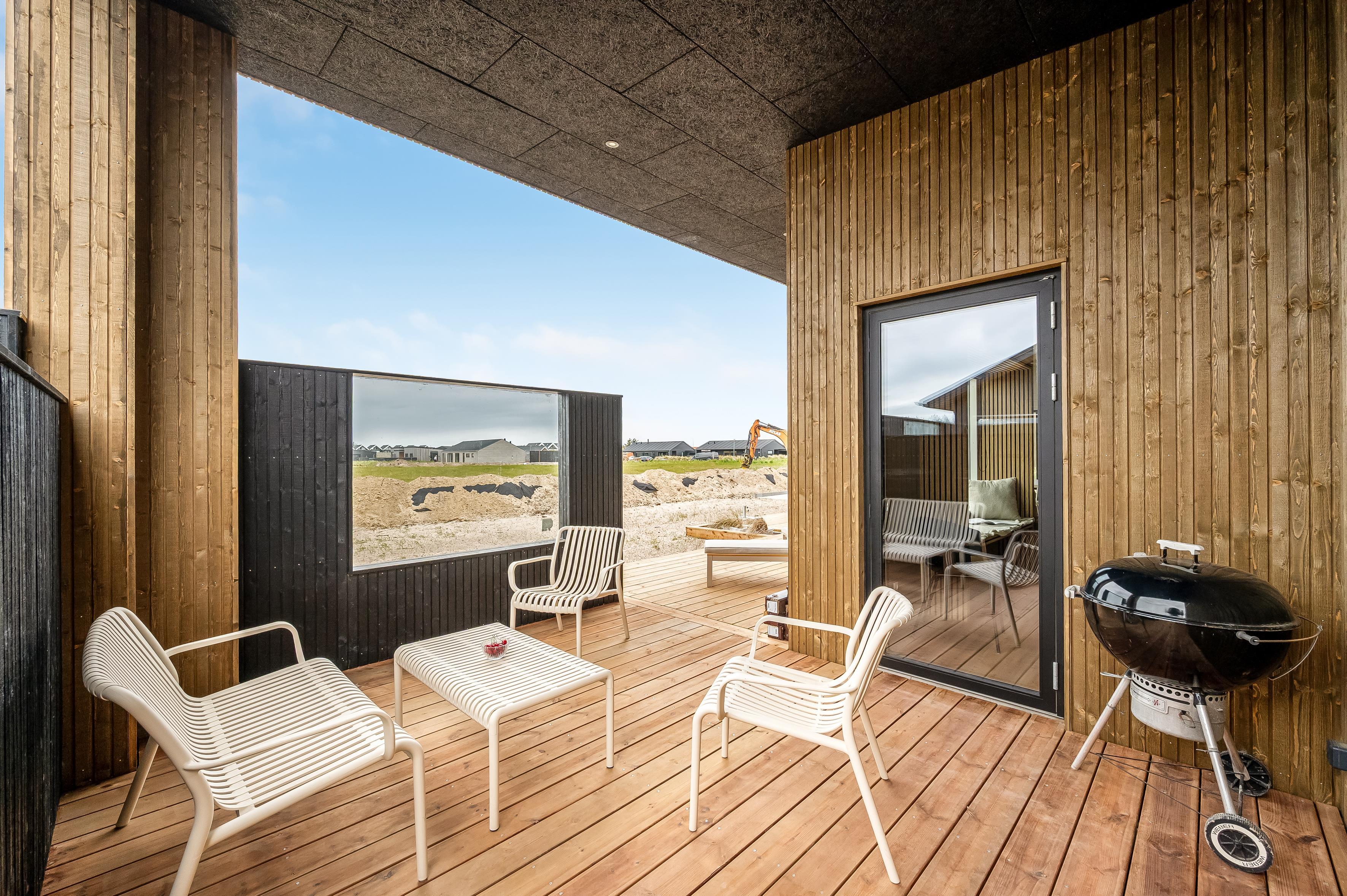 Nybygget sommerhus i Løkken med plads til 8, spa, flere terrasser og kort afstand til strand og by.