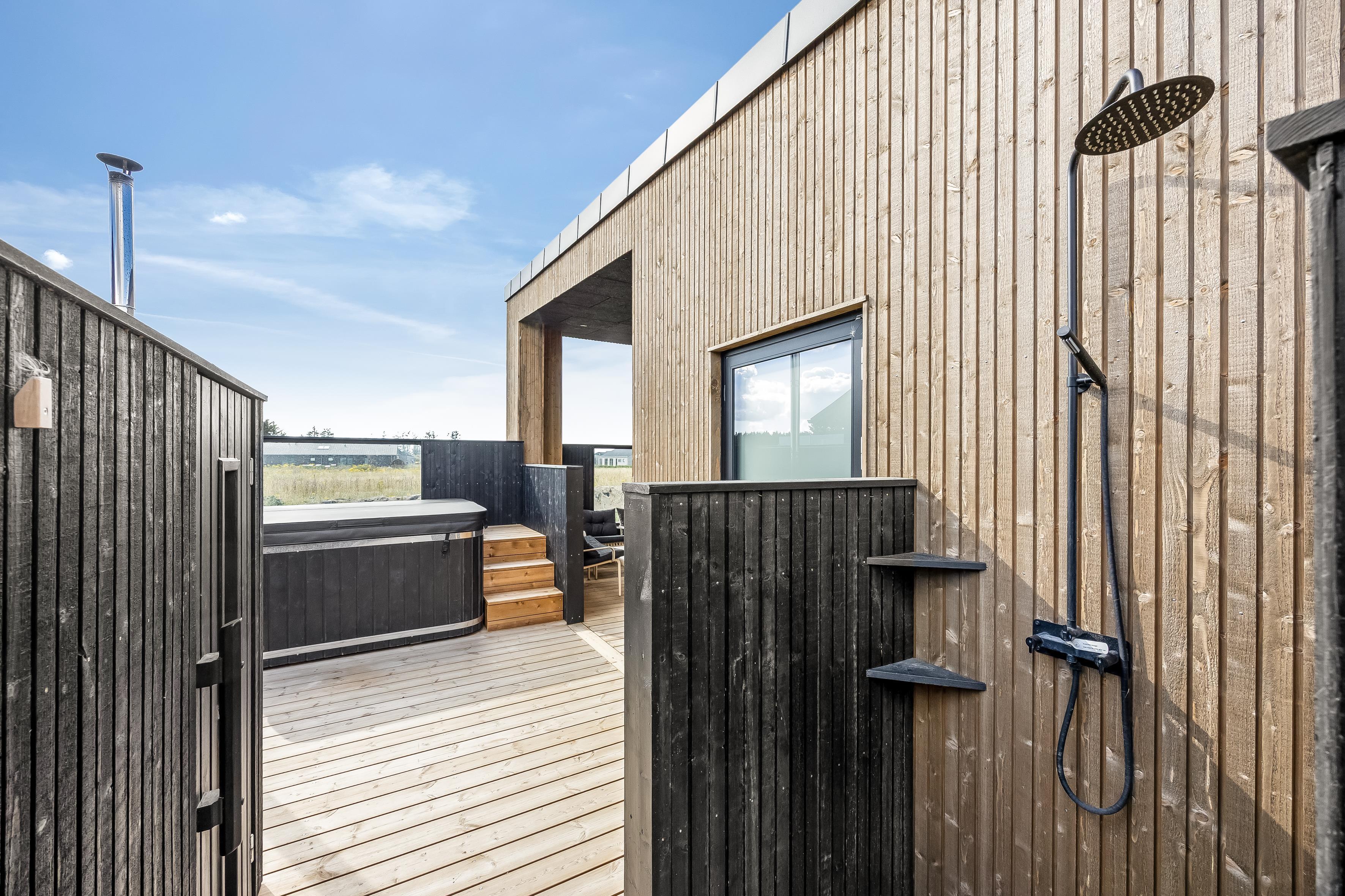 Når vejret er godt, er der rig mulighed for at nyde udendørslivet. Sommerhuset har flere terrasser placeret, så du altid kan finde sol eller læ. Den afskærmede udendørs spa giver mulighed for afslapning i private omgivelser. Stranden ligger mindre end en kilometer væk og har livreddere i højsæsonen. Derudover finder du både indkøb, transportmuligheder og spisesteder inden for kort afstand. Byens centrum er kun en kort gåtur væk.